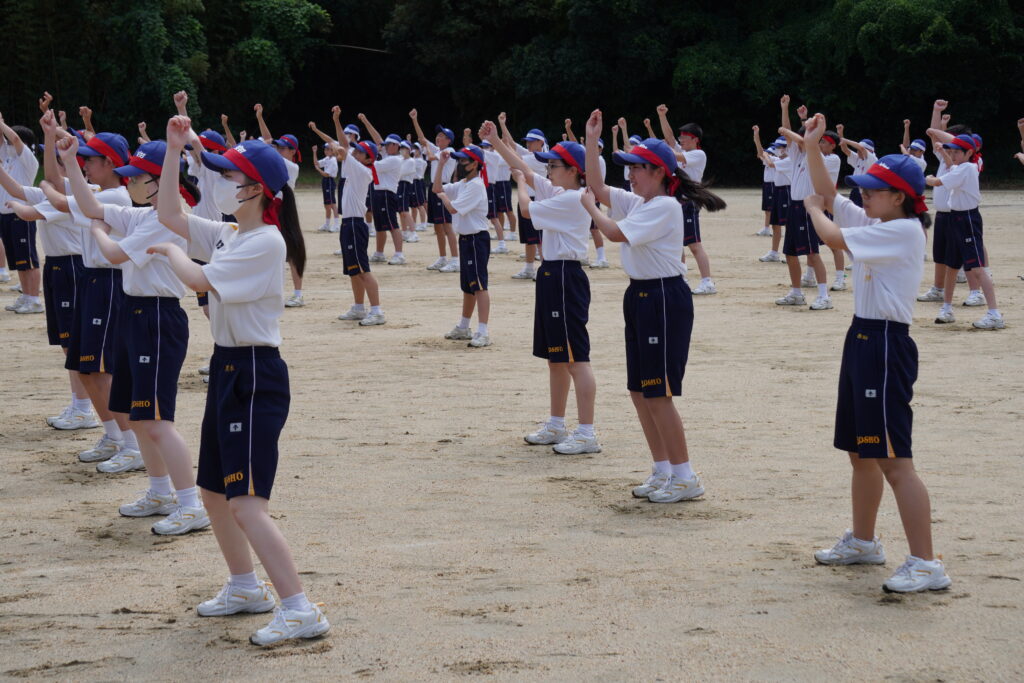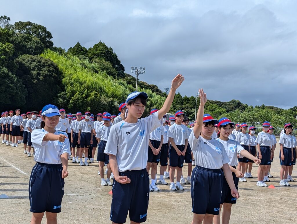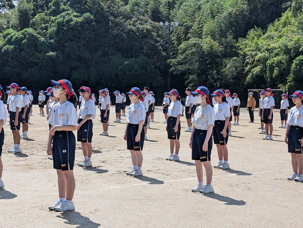 今日は,今度の日曜日に行われる体育大会の予行練習が行われました。雨が降る時間帯もあり,限られた練習にはなりましたが,当日に向けた動きの確認などを行いました。