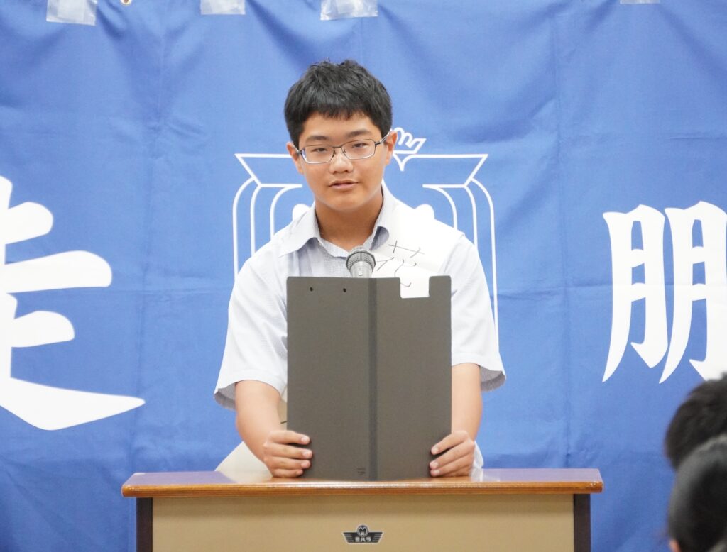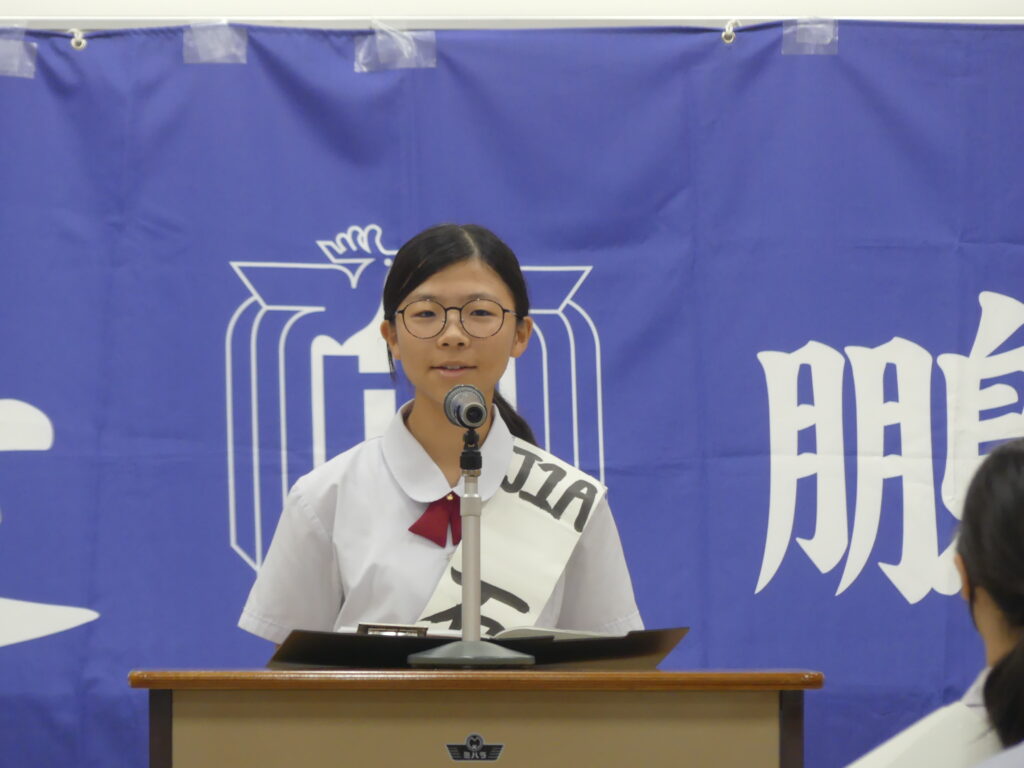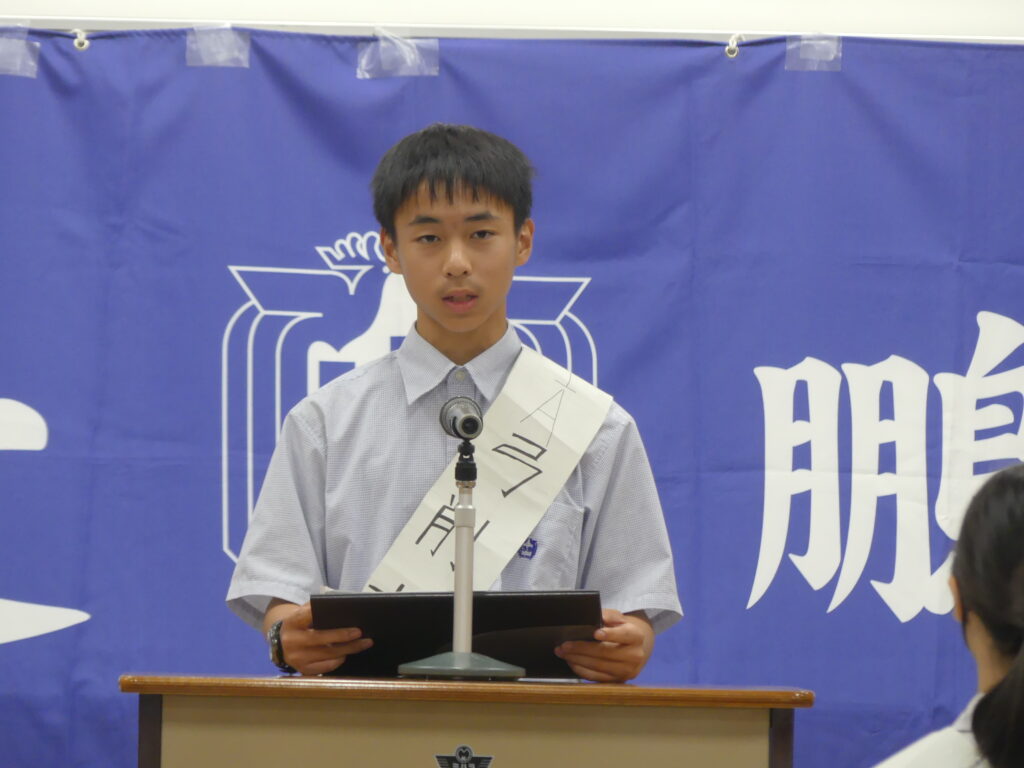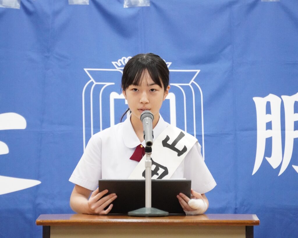 立候補してくれた生徒の皆さんは、緊張する中、自分たちの思いを一生懸命伝えてくれました。当選発表は後日となっていますが、誰が次の役員になっても、きっと全校生徒が楽しい学校生活を送れるように頑張ってくれるのではないかと期待でいっぱいになりました。