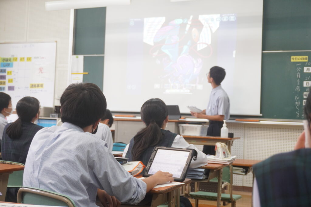 その曲が好きな理由や歌詞に込められた思いなど、それぞれが考えるおすすめポイントをスライドを作成し、自分の意見を発表しました。
