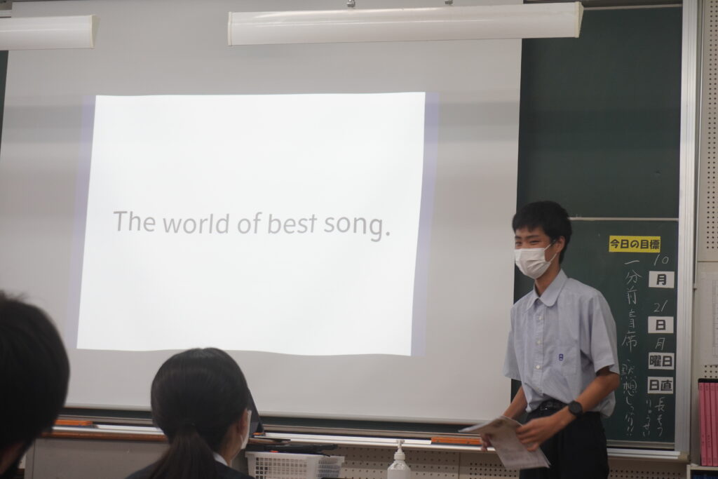 「世界中の中学生に聞いてほしい曲」というテーマで自分の好きな音楽を紹介しました。