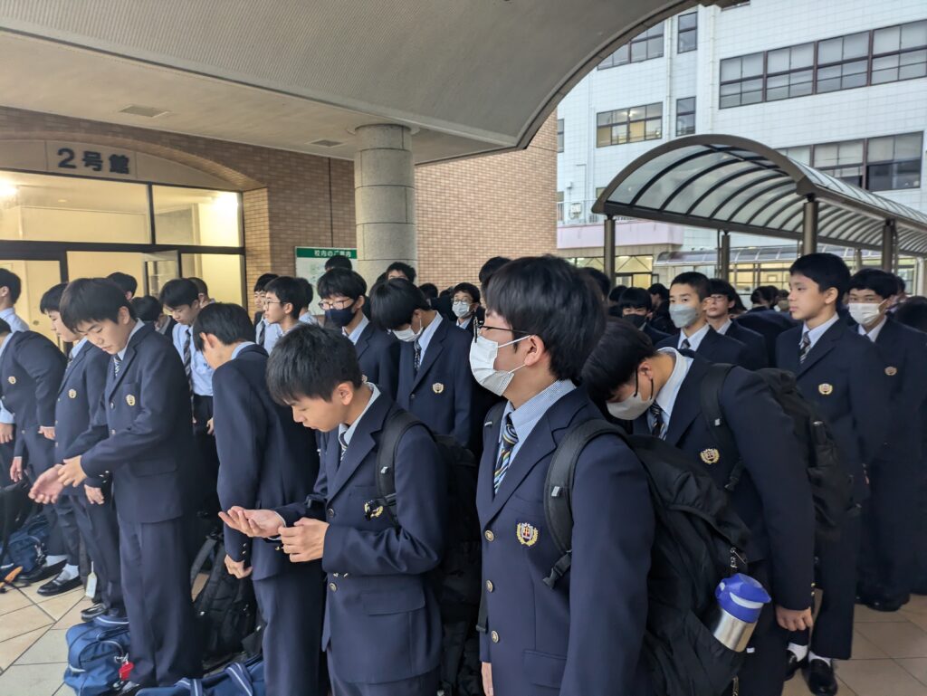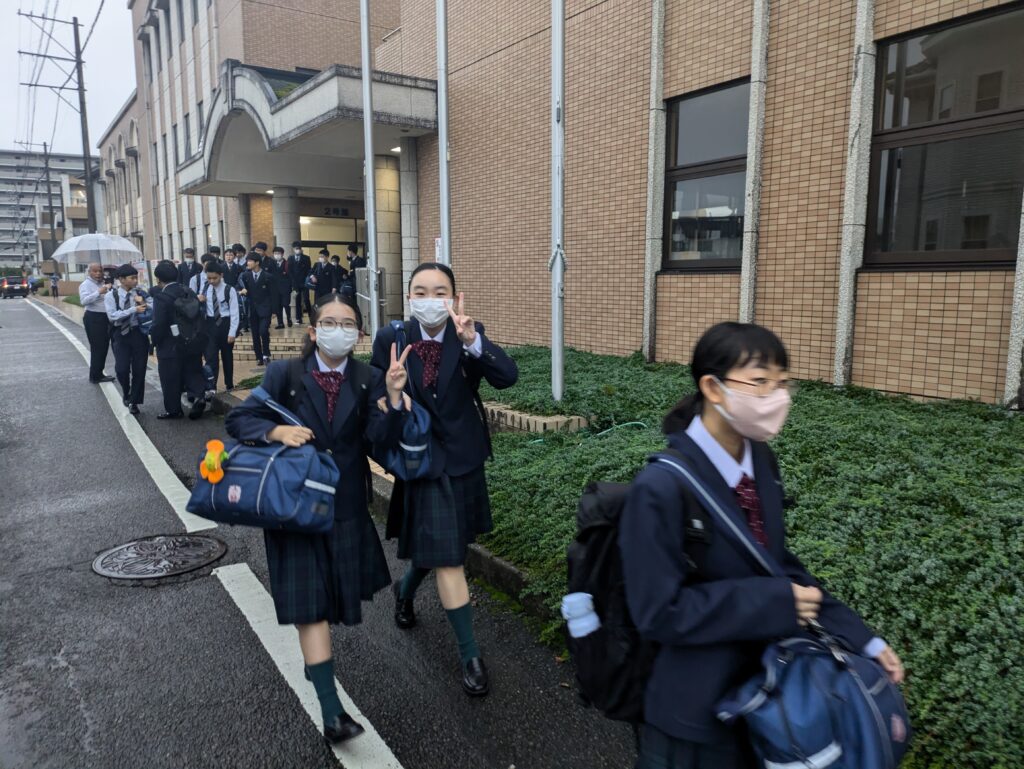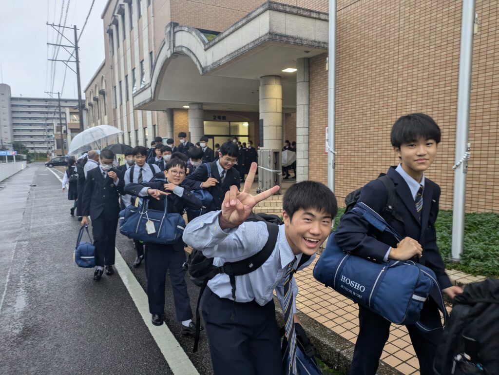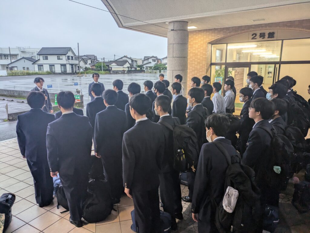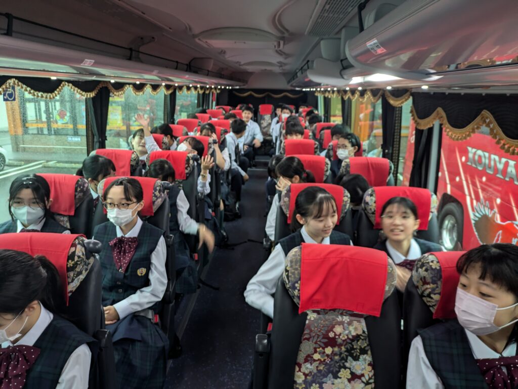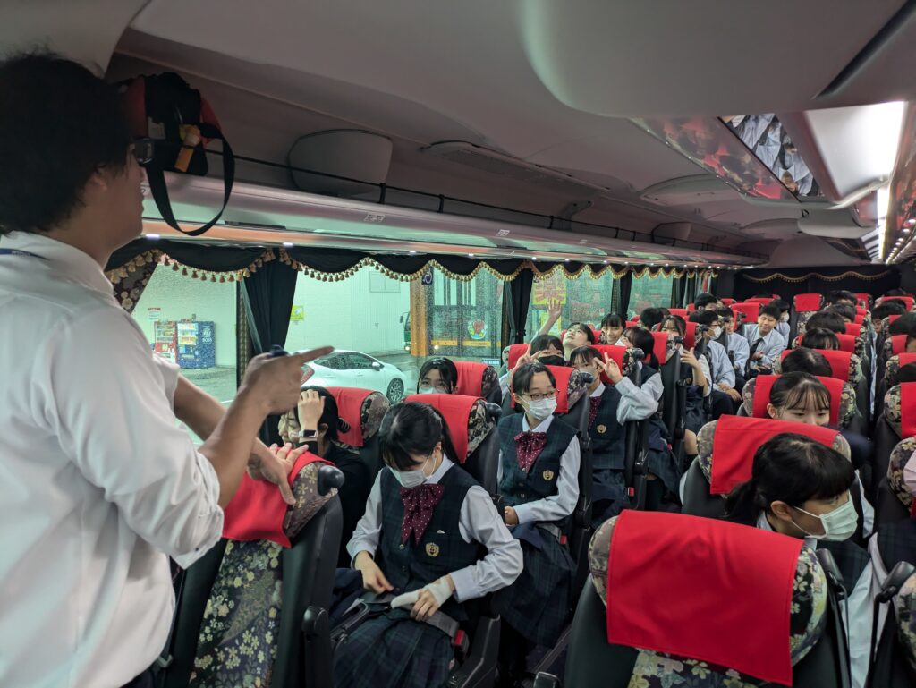 本日、10月28日(月)から明日、10月29日(火)の2日間、福岡県宗像市にて、J2生が英語研修を行います。期間中随時活動の様子を紹介させていただきます。まずは、出発式〜出発までの様子になります。 バスは7時45分現在田野町付近を高速道路で走行中です。
