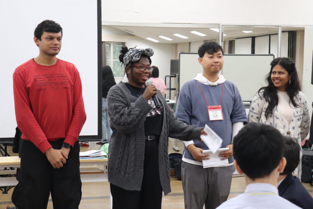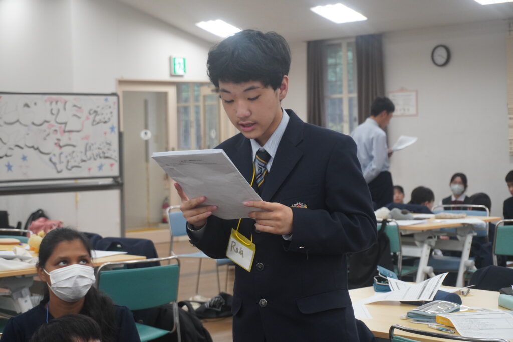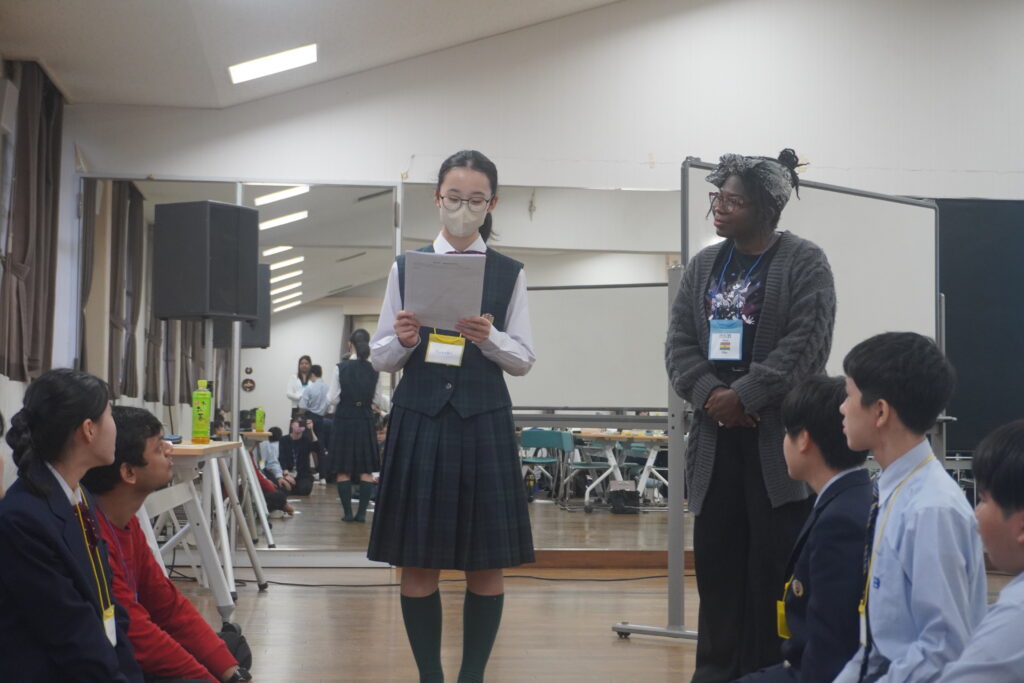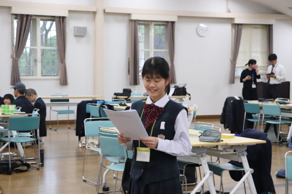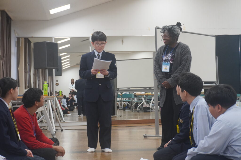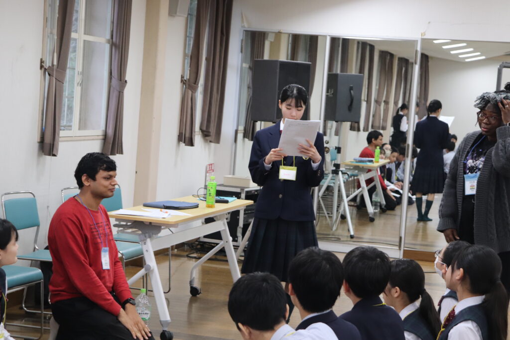 この2日間で感じたことをぜひ今後の学校生活に生かしてほしいと思います。発表後は今回のプログラムの振り返りをして、リーダーから一人一人終了証書をもらいました!J2生を代表して窪田悠人さん(宮崎南小出身)がお礼の言葉を述べました。グローバルリーダーからは今回のプログラムログで学んだことを忘れないでほしい。とメッセージをもらいました!