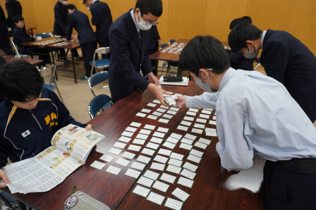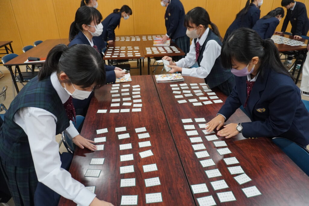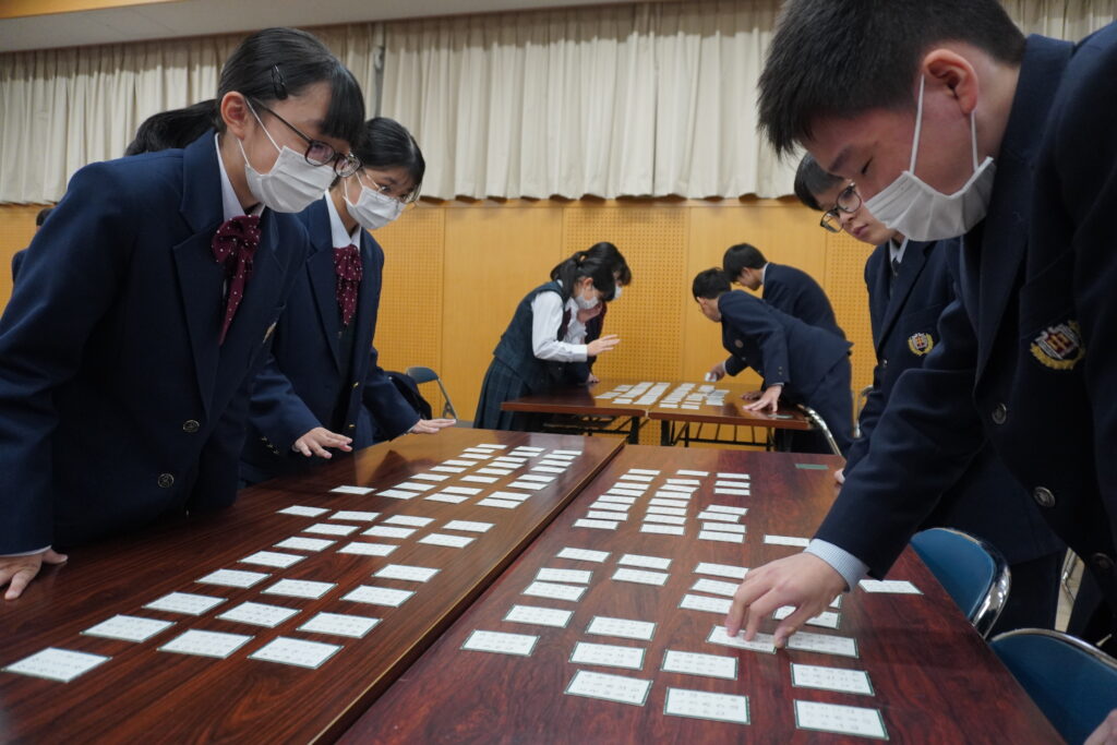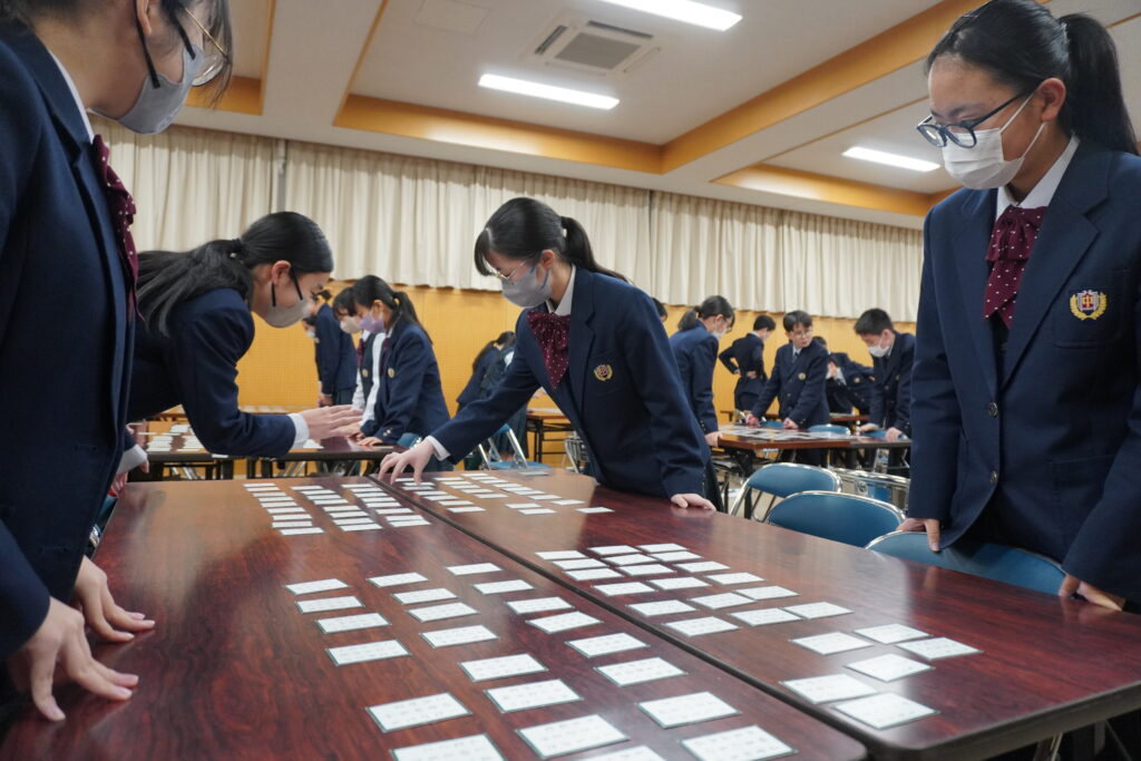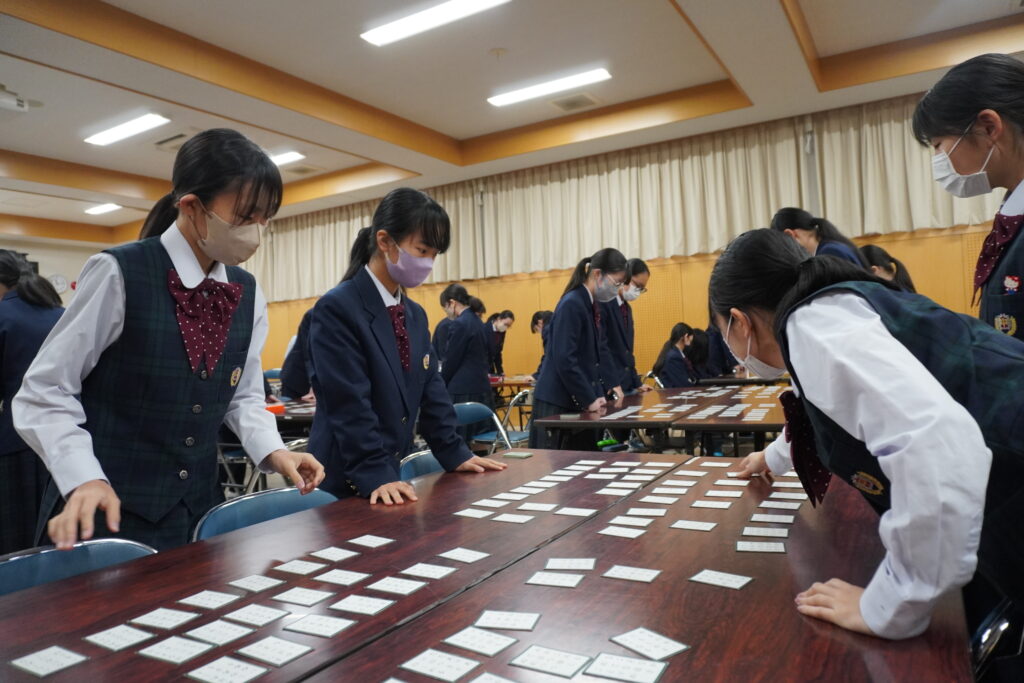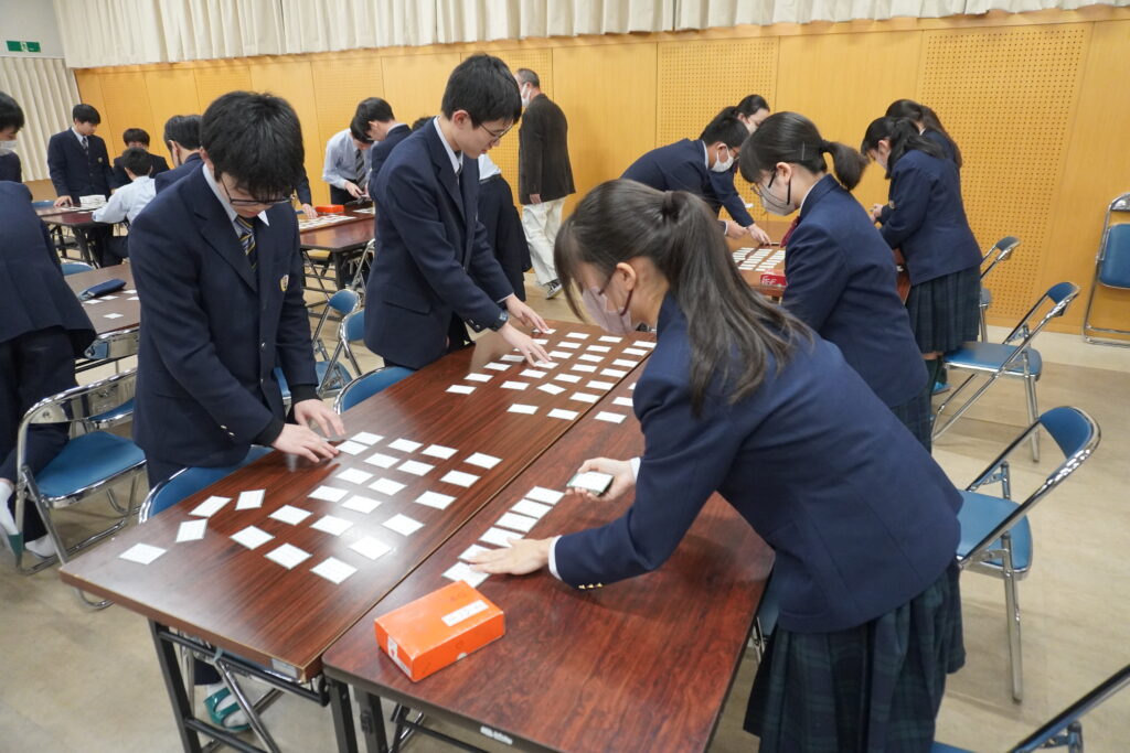 本校では百人一首大会が毎年開催されます。今日はその練習の様子をお送りいたします。