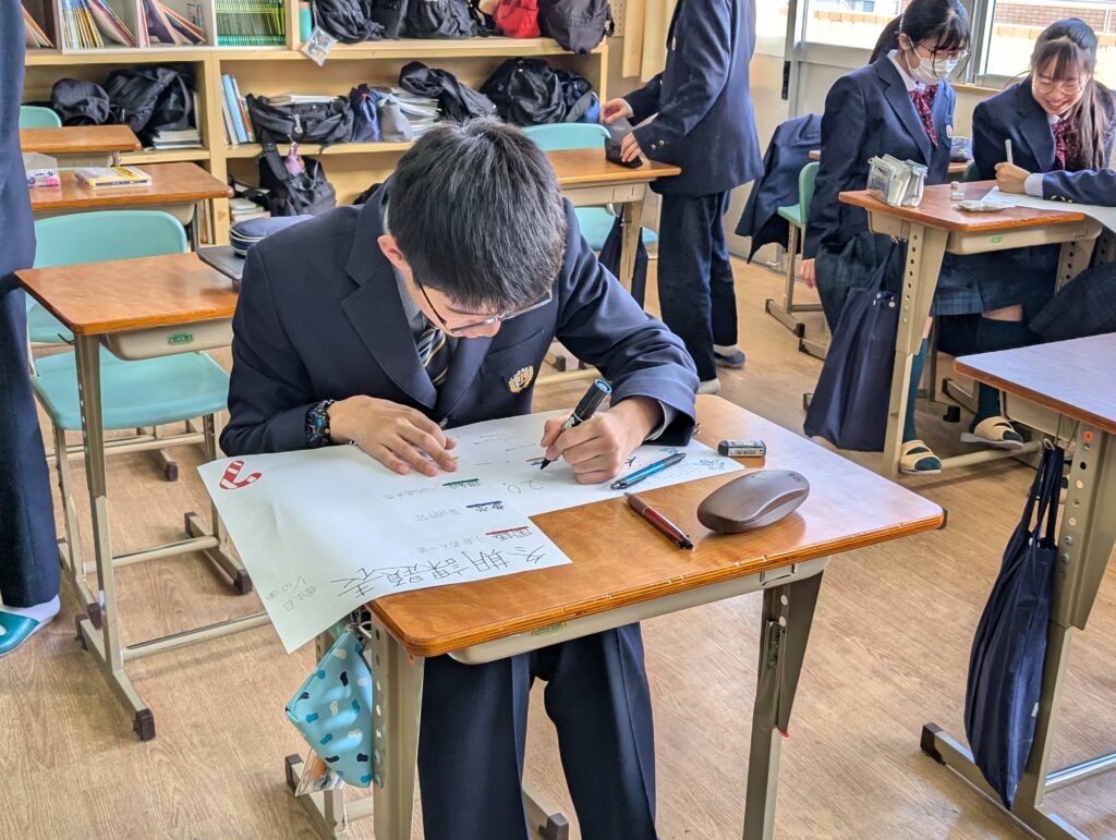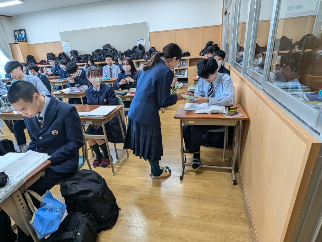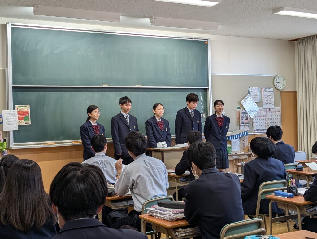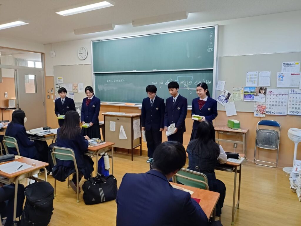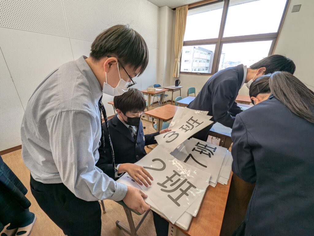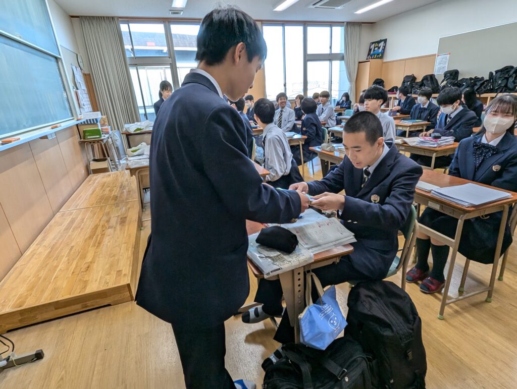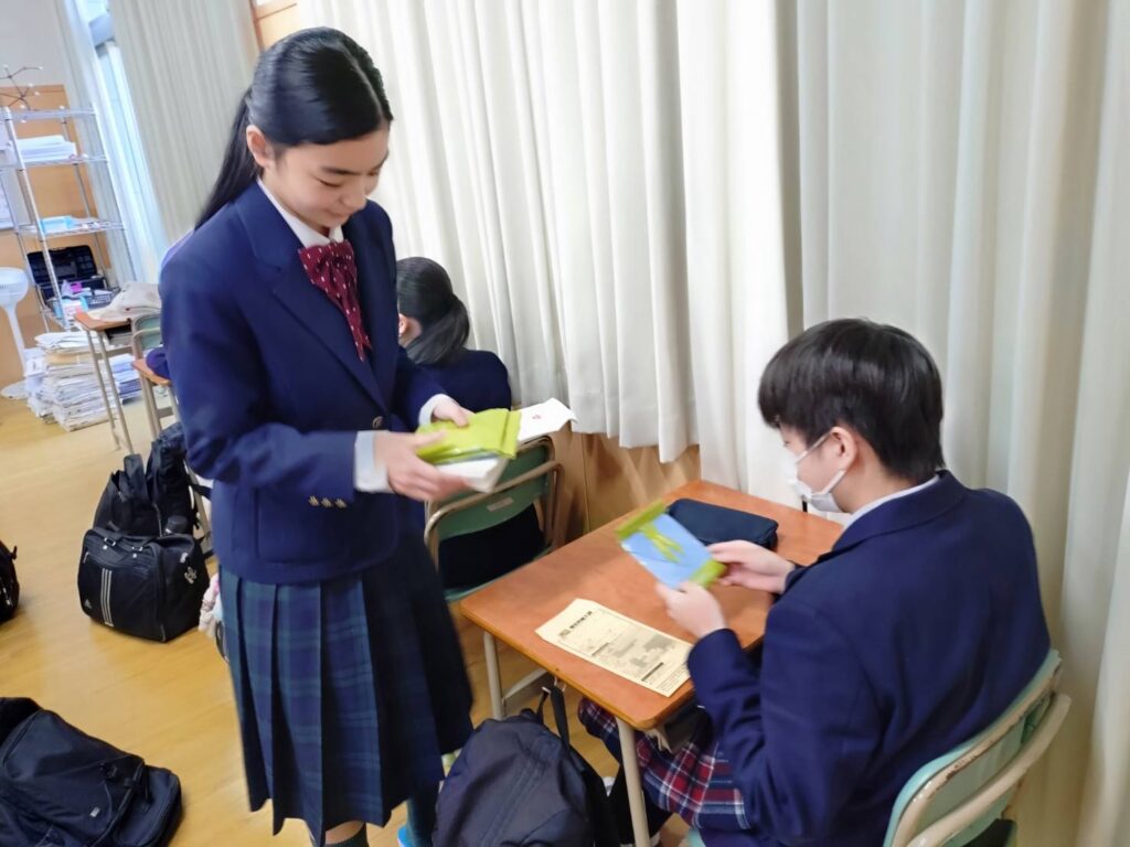 また、先週、中学を代表して生徒会役員が中高一貫の高校3年生の先輩方に合格タオルを渡しに行ってきました!
