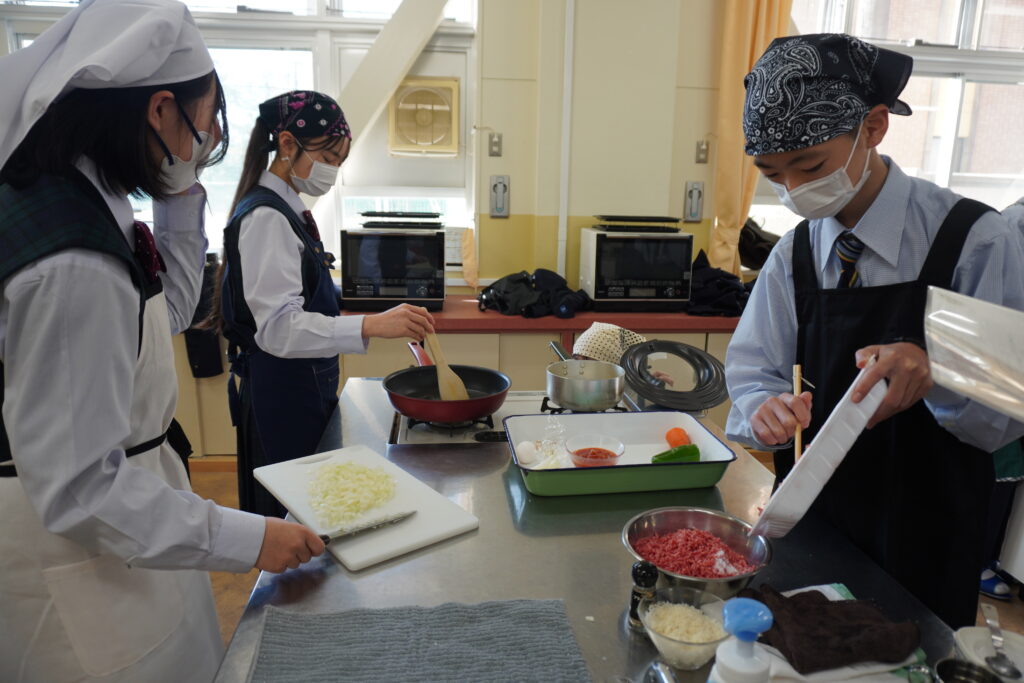 本日は先週に引き続き、調理実習のようすをお届けします。今回は、J1-Bとなります。