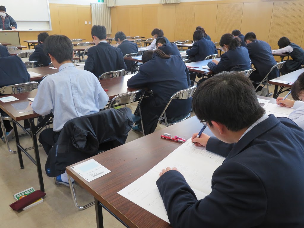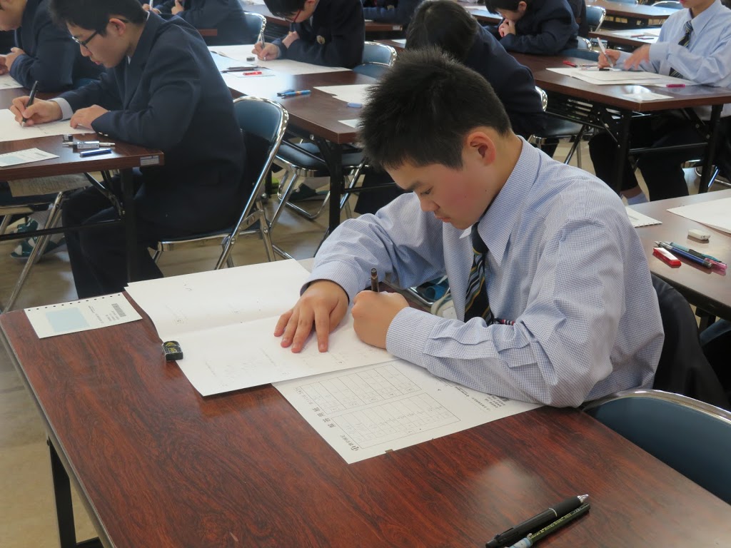 希望者受検による数学検定がおこなわれ、今回24名が受検(2級~5級)しました。 受検級によって、目安となる学年や出題内容は様々ですが、各自それを踏まえた上で挑戦する級を選択しました。 放課後を利用して、先生たちに質問に行ったりし、準2級、2級(高校1年生、2年生の内容が出題)に挑戦した生徒もいます。 みんな一生懸命頑張っていました。結果が楽しみですね。