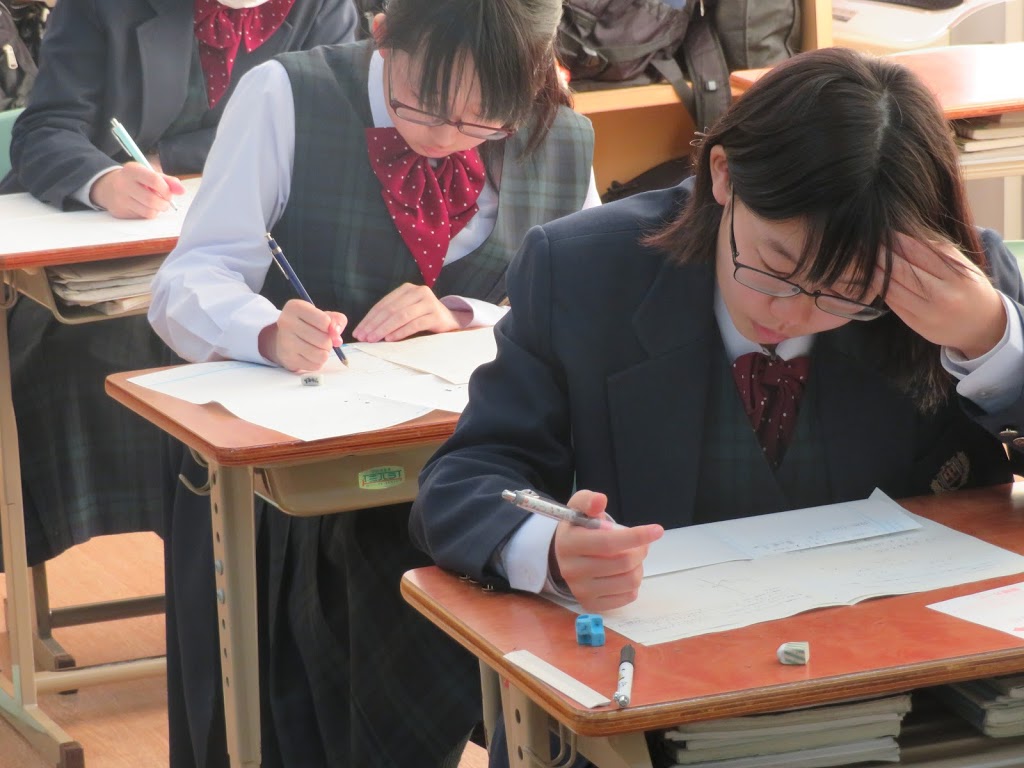 本日、J3はベネッセの総合学力テスト(高1生)を受験しました。 1科目あたりの時間は、国語、英語が80分、数学では100分間設定されています。 今回は、定期考査よりも長時間、集中力を持続しなければいけませんでした。 4月から高校1年生の内容を学習してきているJ3の生徒にとってよい力試しになったのではないでしょうか?