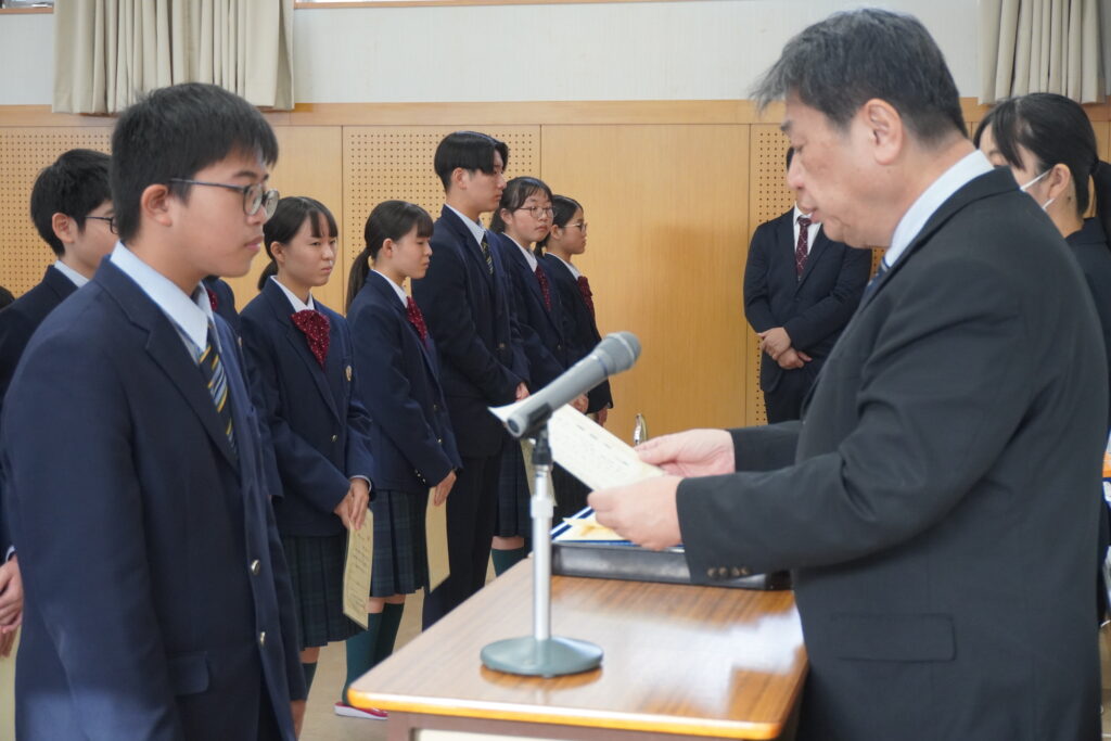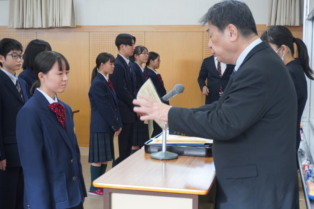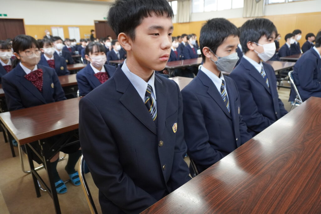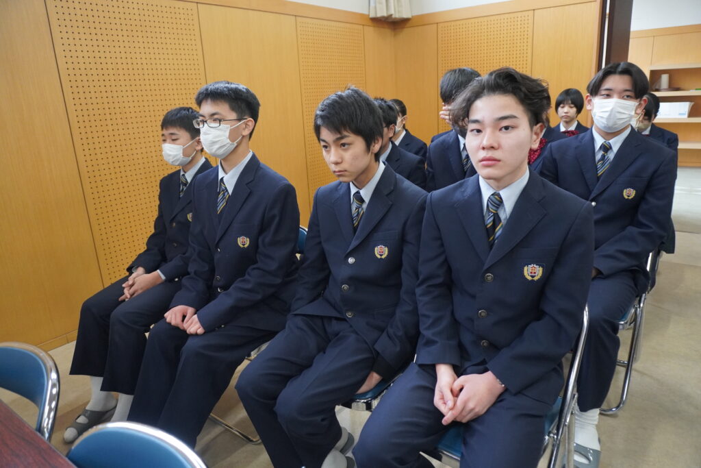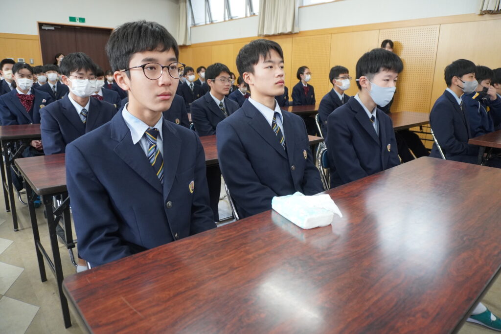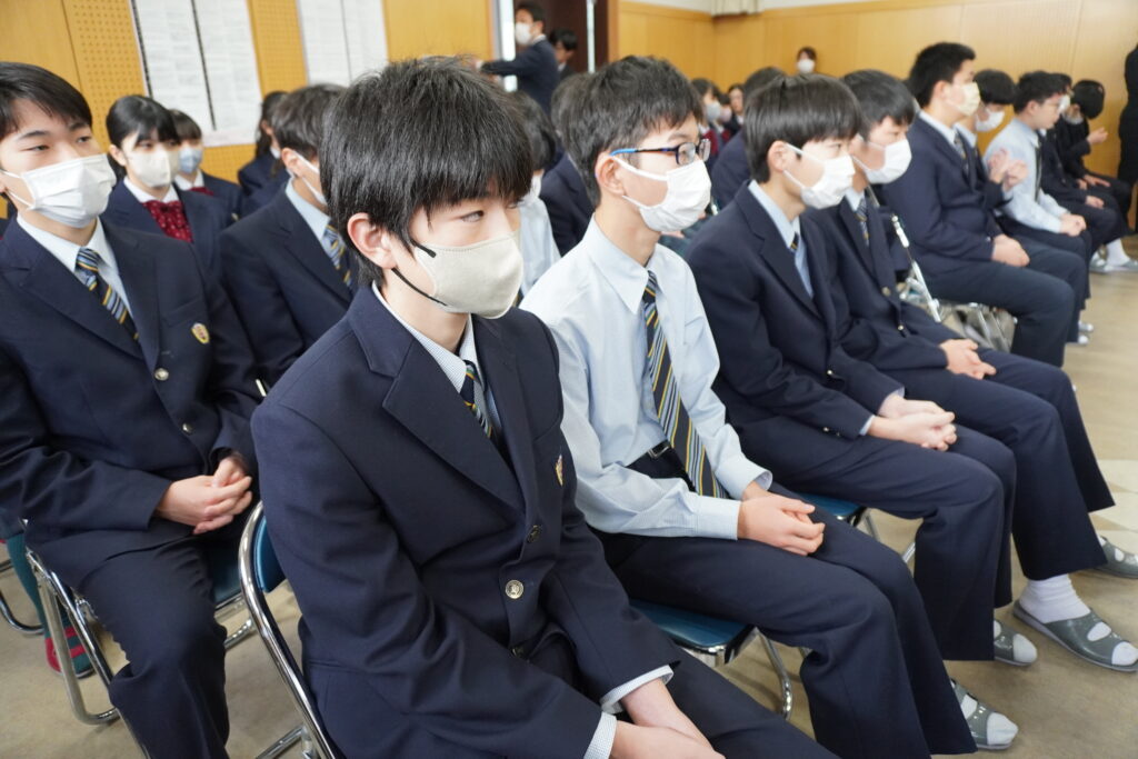吉田成哉教頭先生の講話をはじめ、教務部主任 安田英人先生、生徒指導部主任 宮﨑健史先生の話がありました。