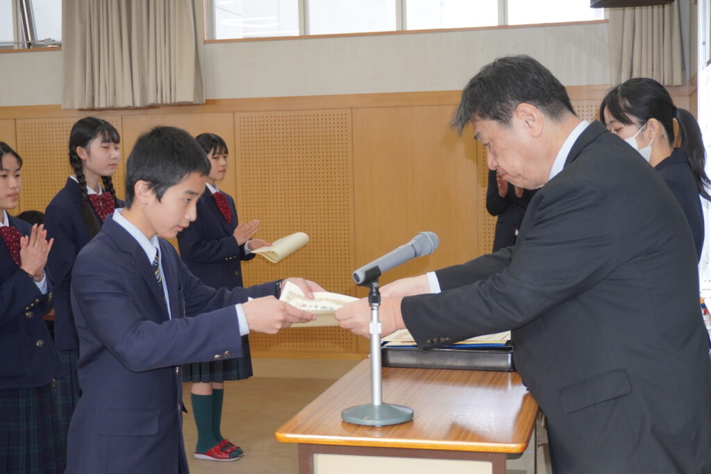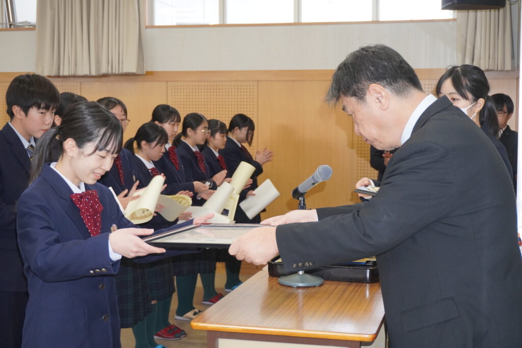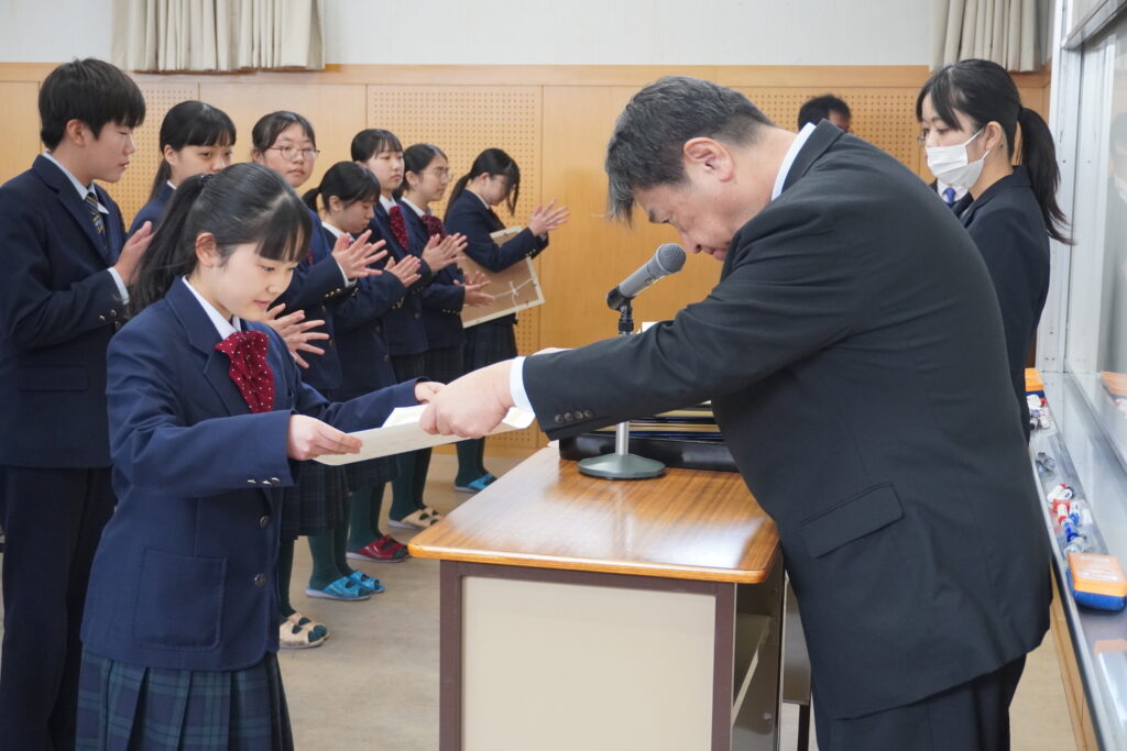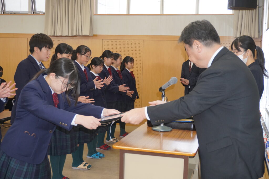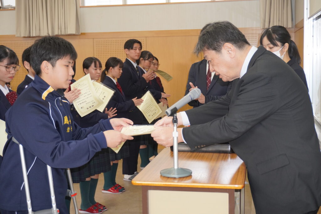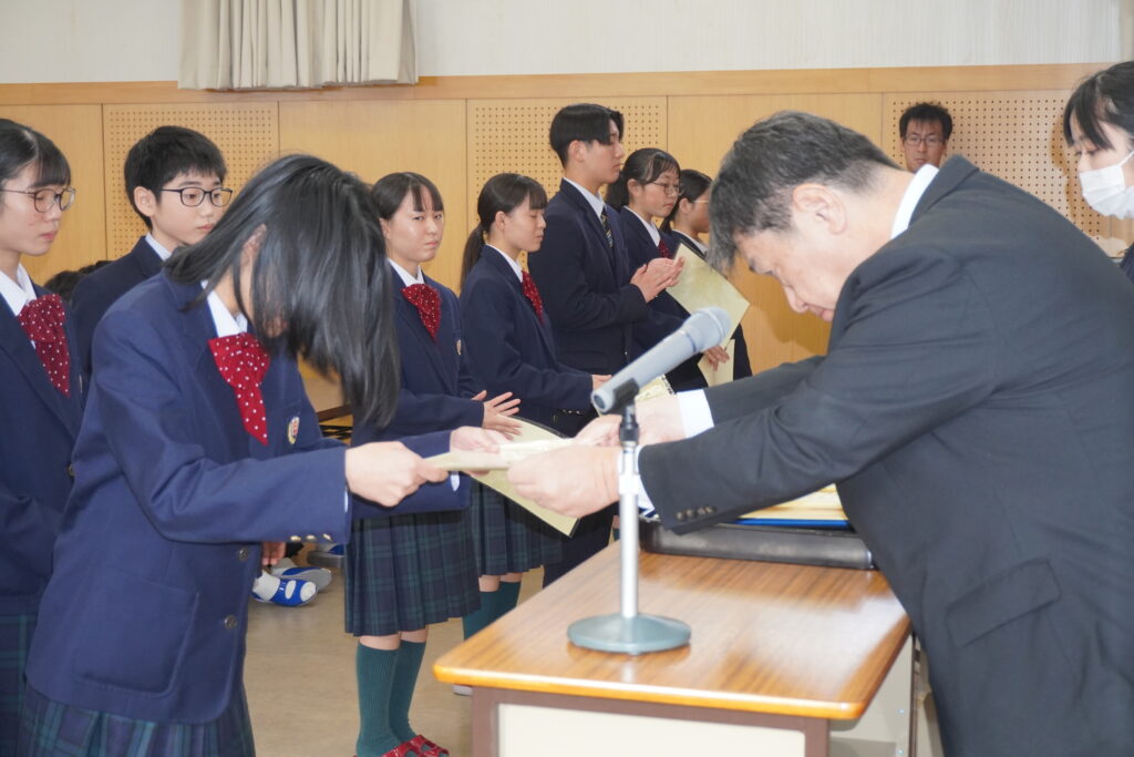 吉田成哉教頭先生の講話をはじめ、教務部主任 安田英人先生、生徒指導部主任 宮﨑健史先生の話がありました。