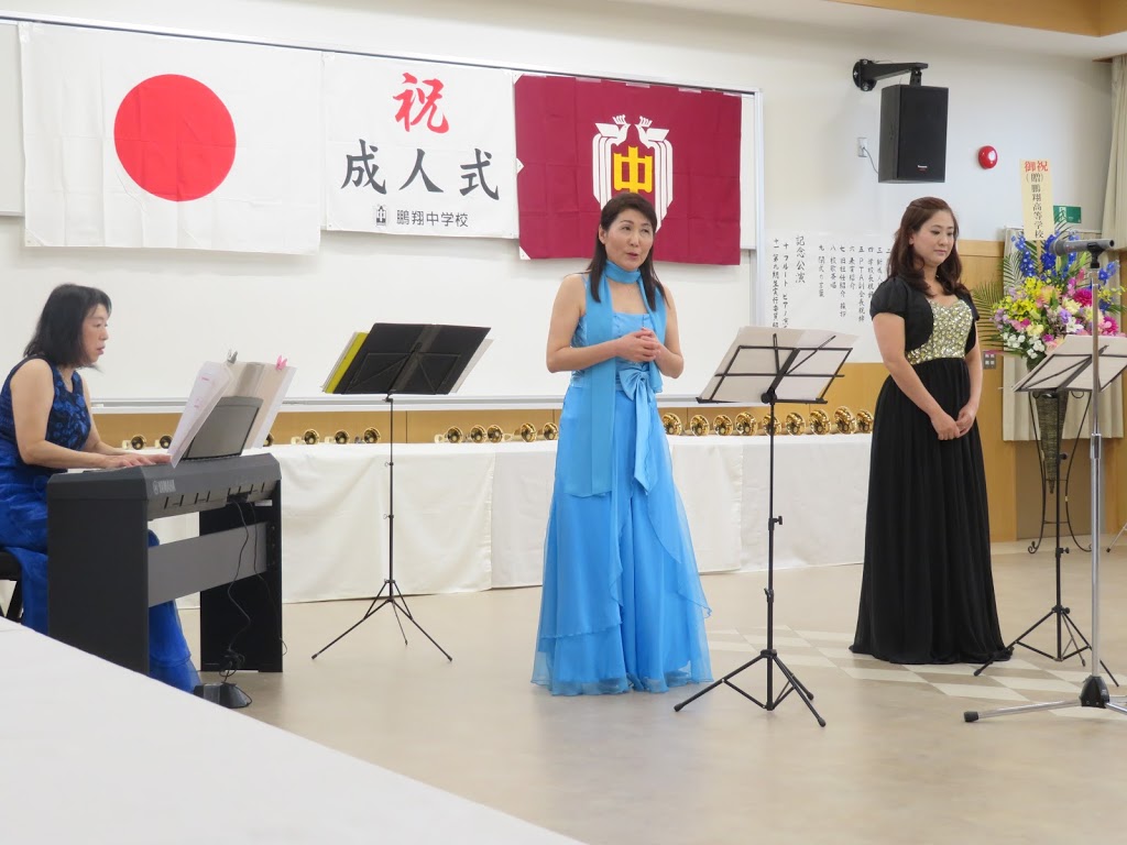 | ピアノ 土田悦子さん 歌 河野敦子先生(音楽教諭) 歌 友納真美先生(音楽教諭) |