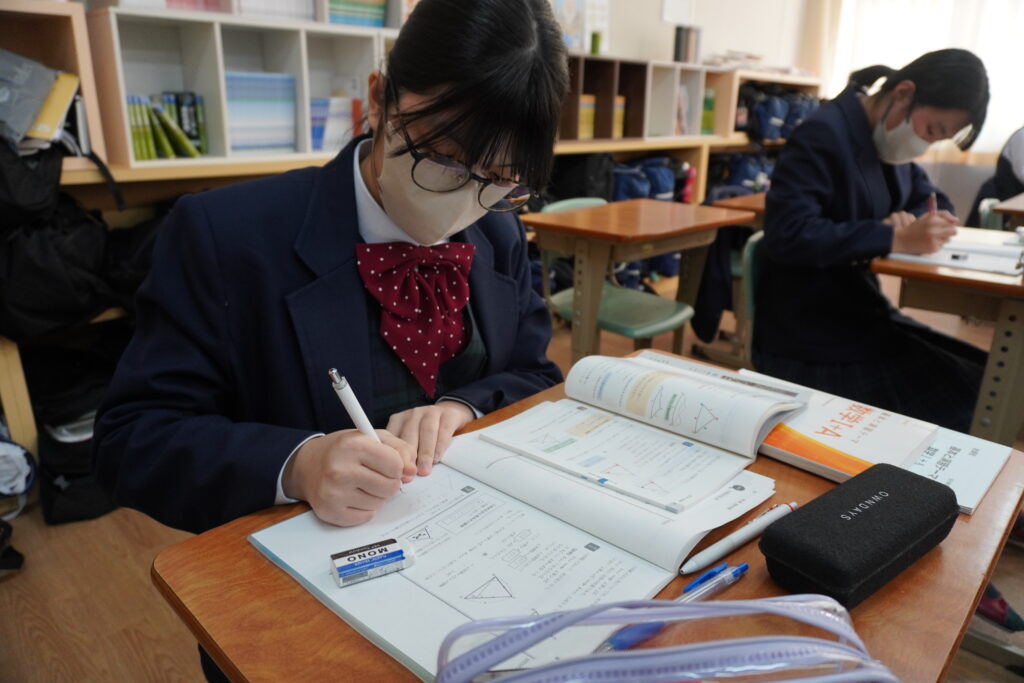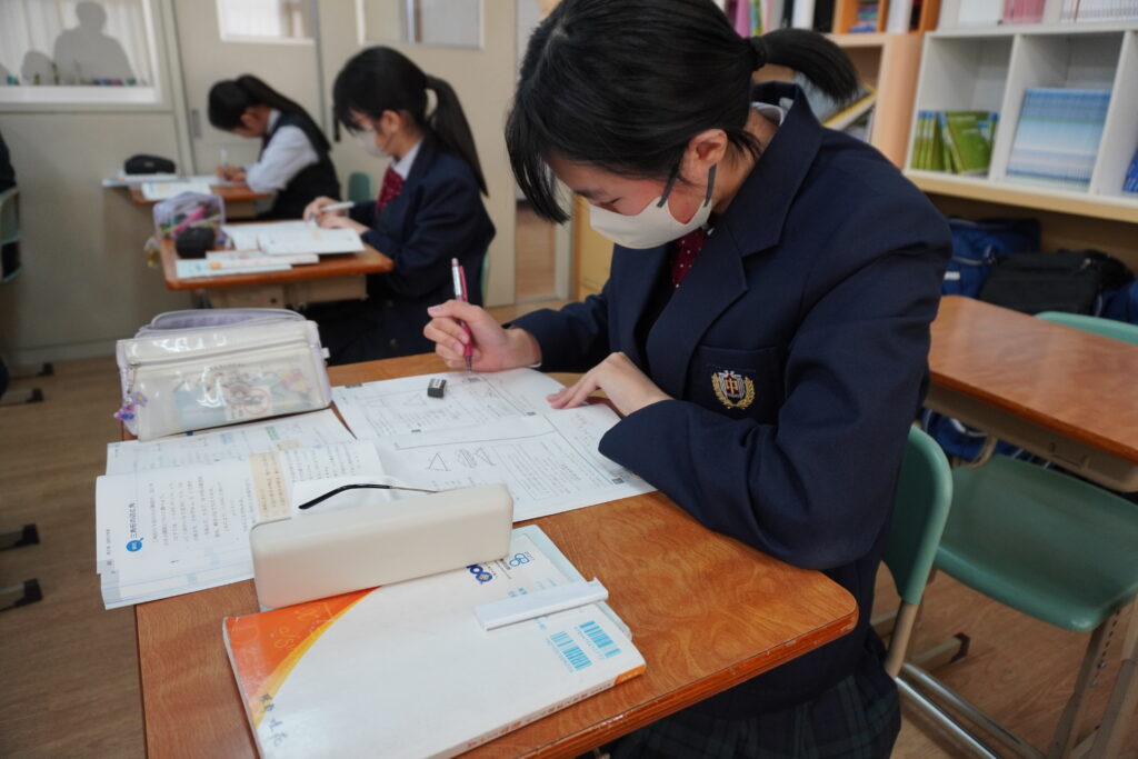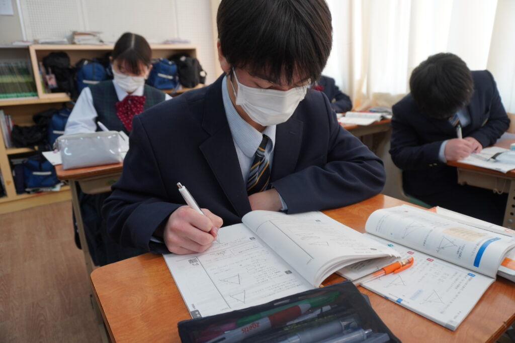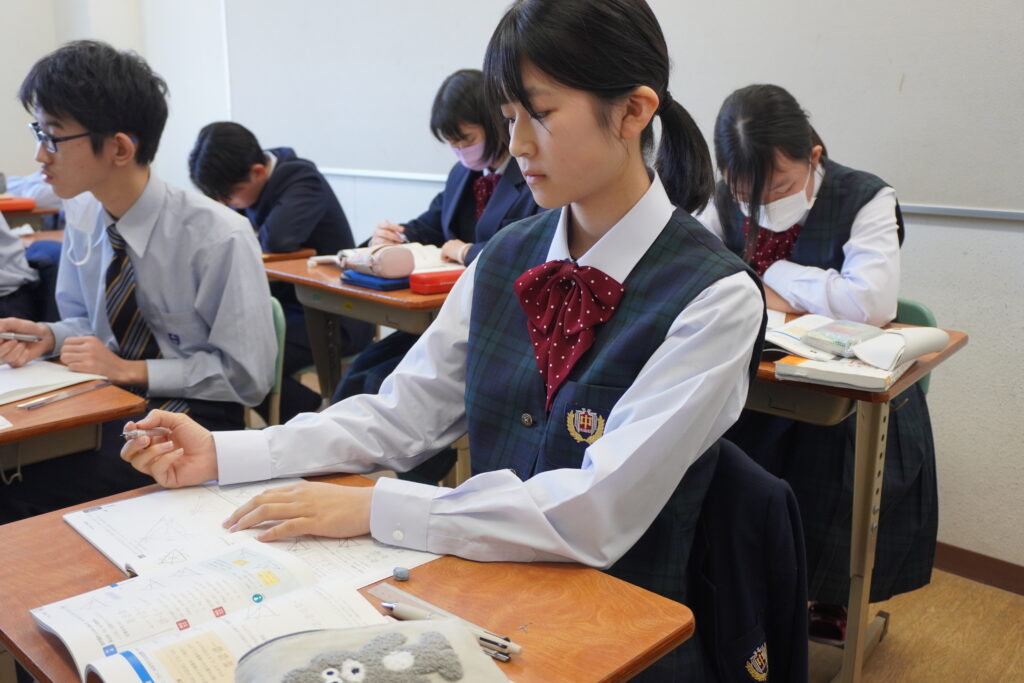 数学は図形問題の解き方を学習していました。