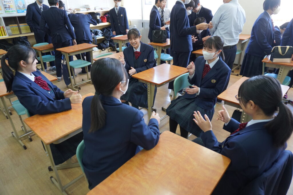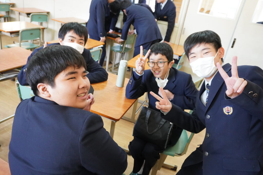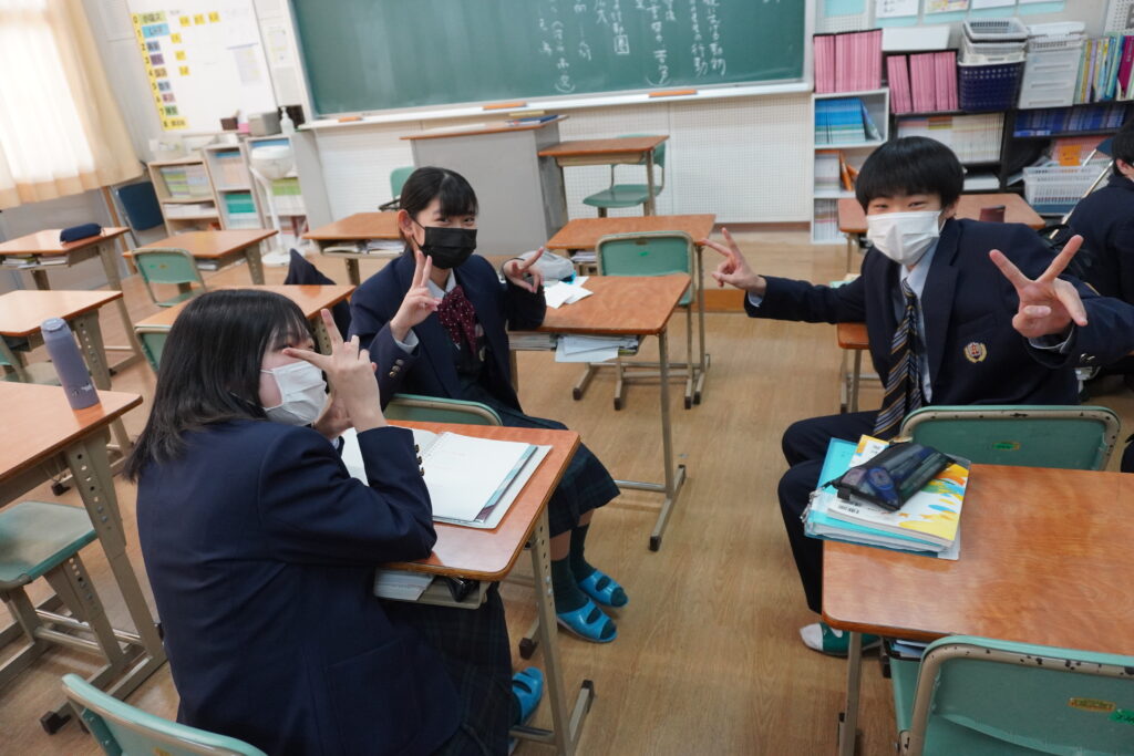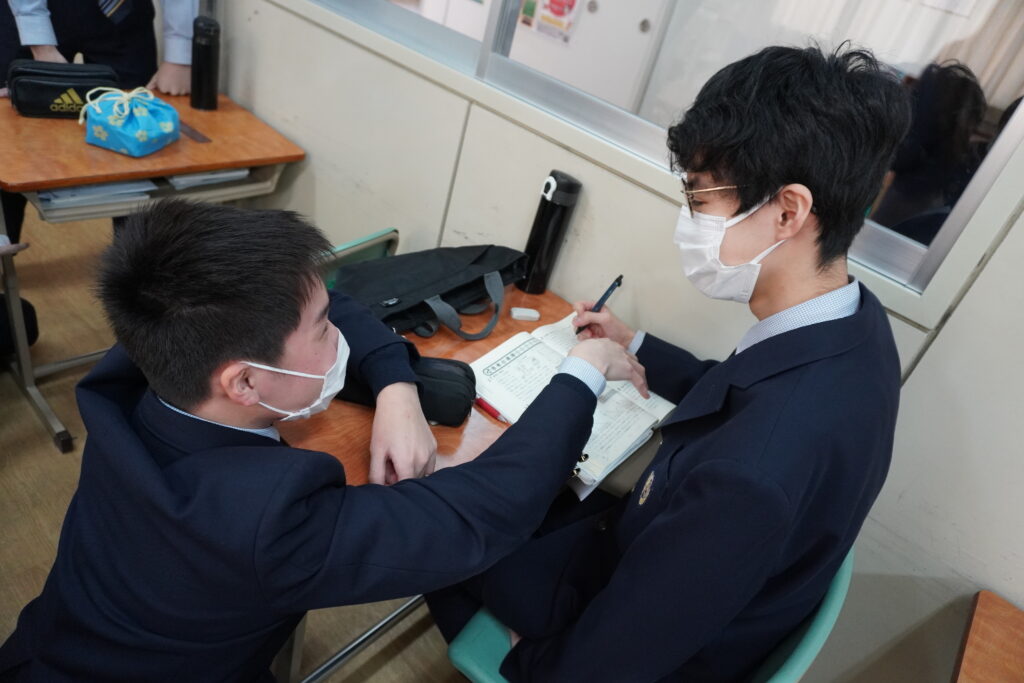 先週までの寒さが和らぎ、比較的過ごしやすい1日となりました。お昼休みの生徒たちは友人と教え合い学習をしたり、会話を楽しんだりと様々な姿があります。それぞれが午後の授業を頑張るために、お昼休みはリラックスしています。