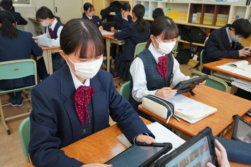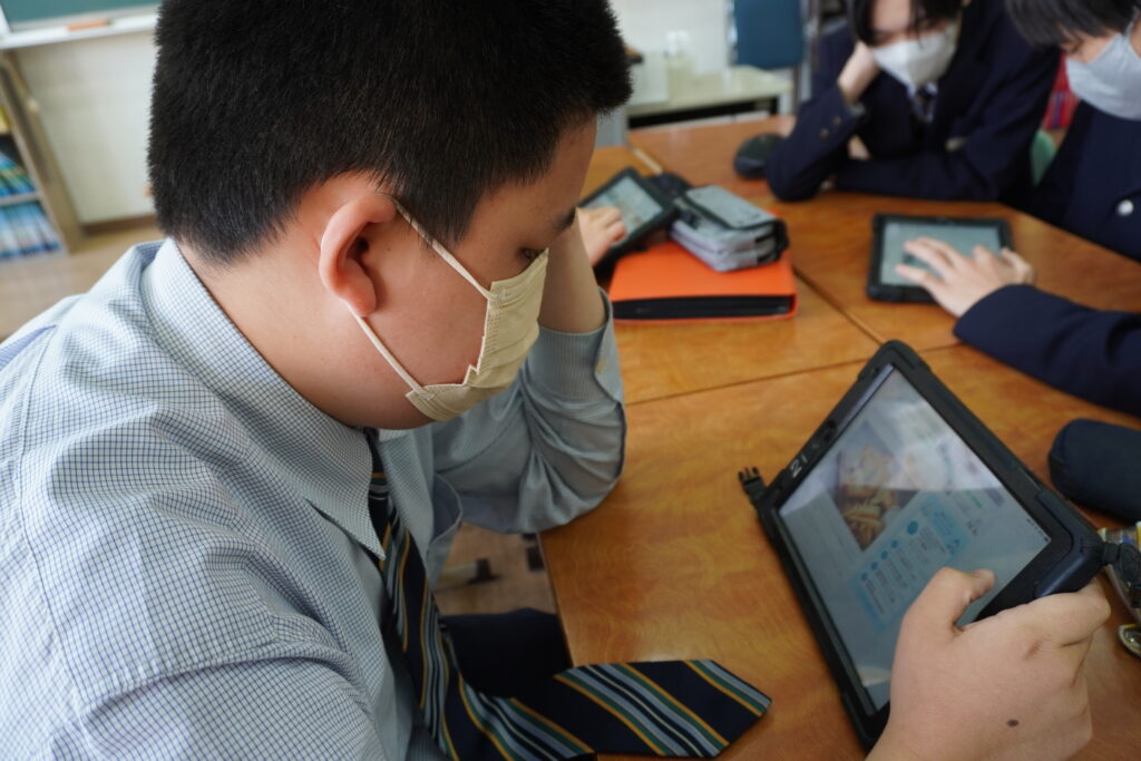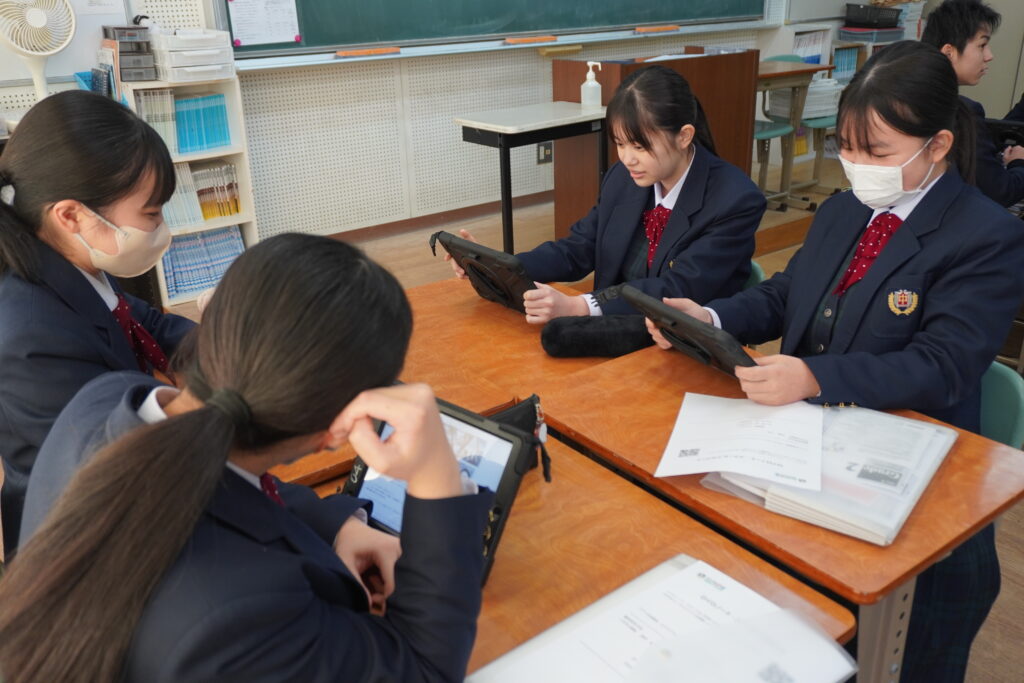 J3生は来月、カナダへ修学旅行へ行きます。今日はそのための事前学習を行いました。カナダでは、英語でコミュニケーションを取らなければなりません。自分の行ってみたいところや食べてみたいものなどを調べ、どうやって伝えるかを考えました!