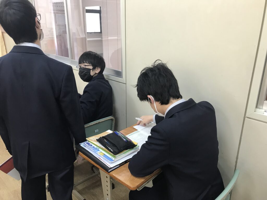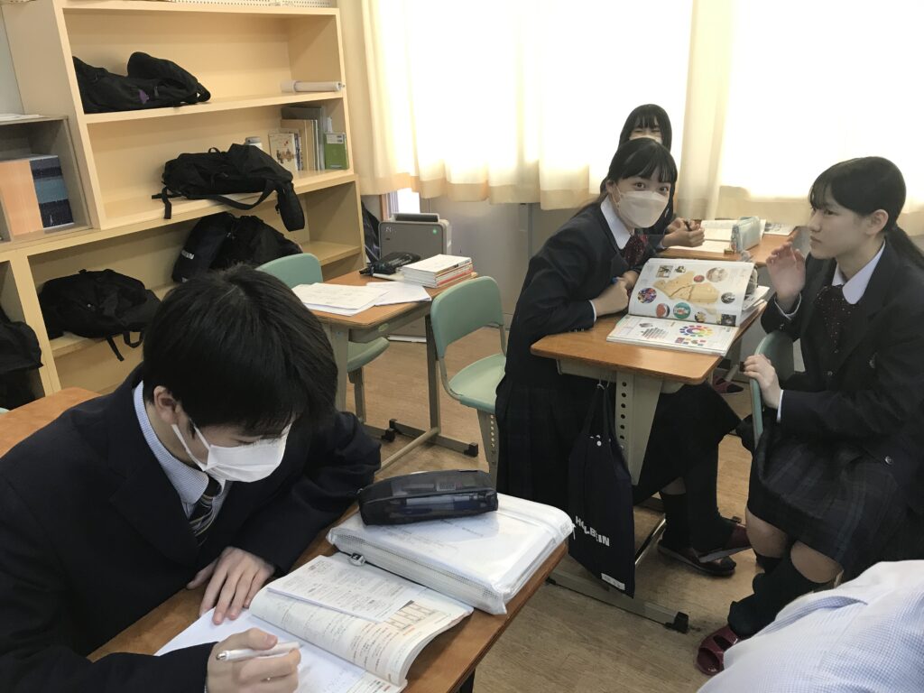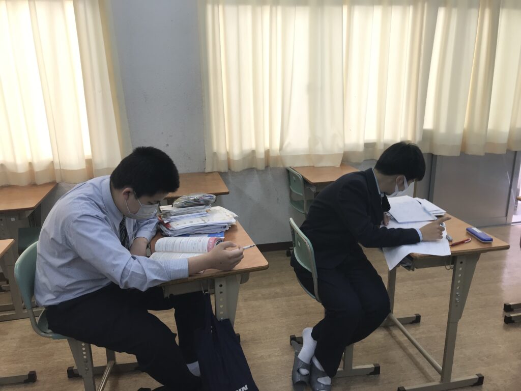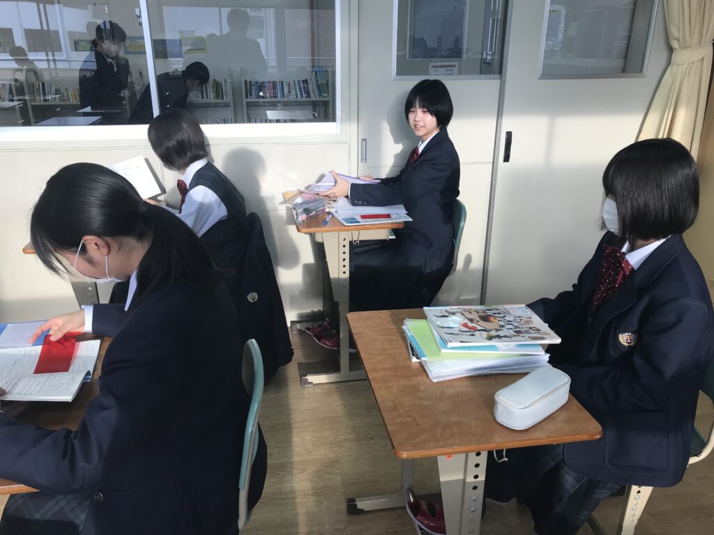 本日は、SHR(朝の会)が始まる前までの様子を紹介します。J3生は、定期考査に向けた最終確認を、他学年は教室の目の前に置かれる本棚から好きな本を探している様子が見受けられました。