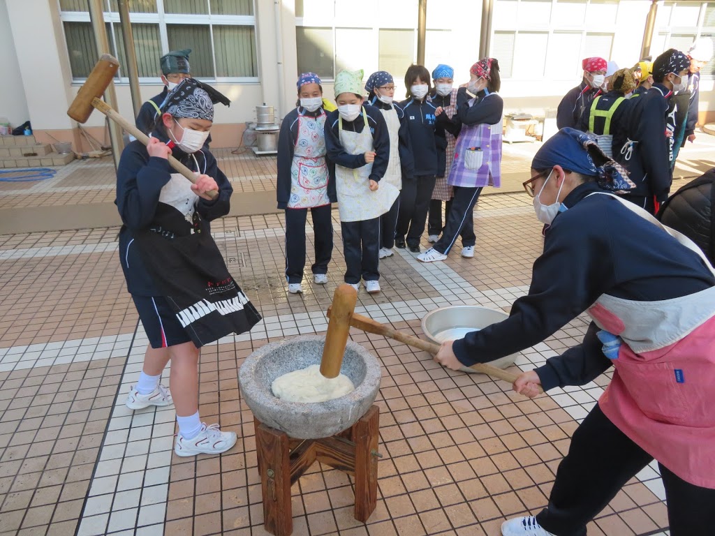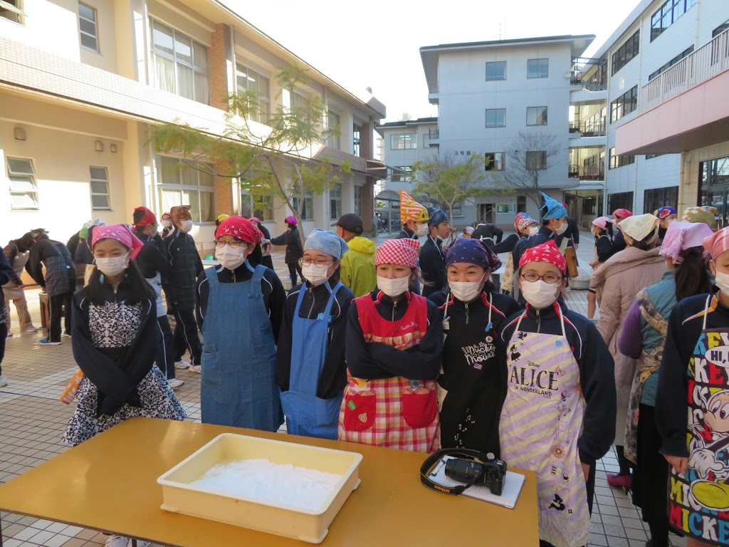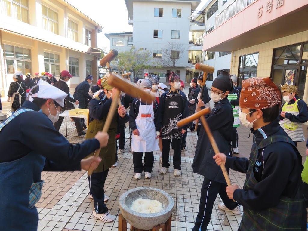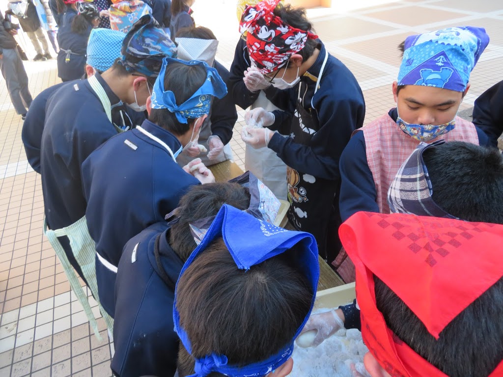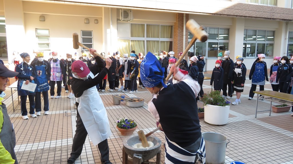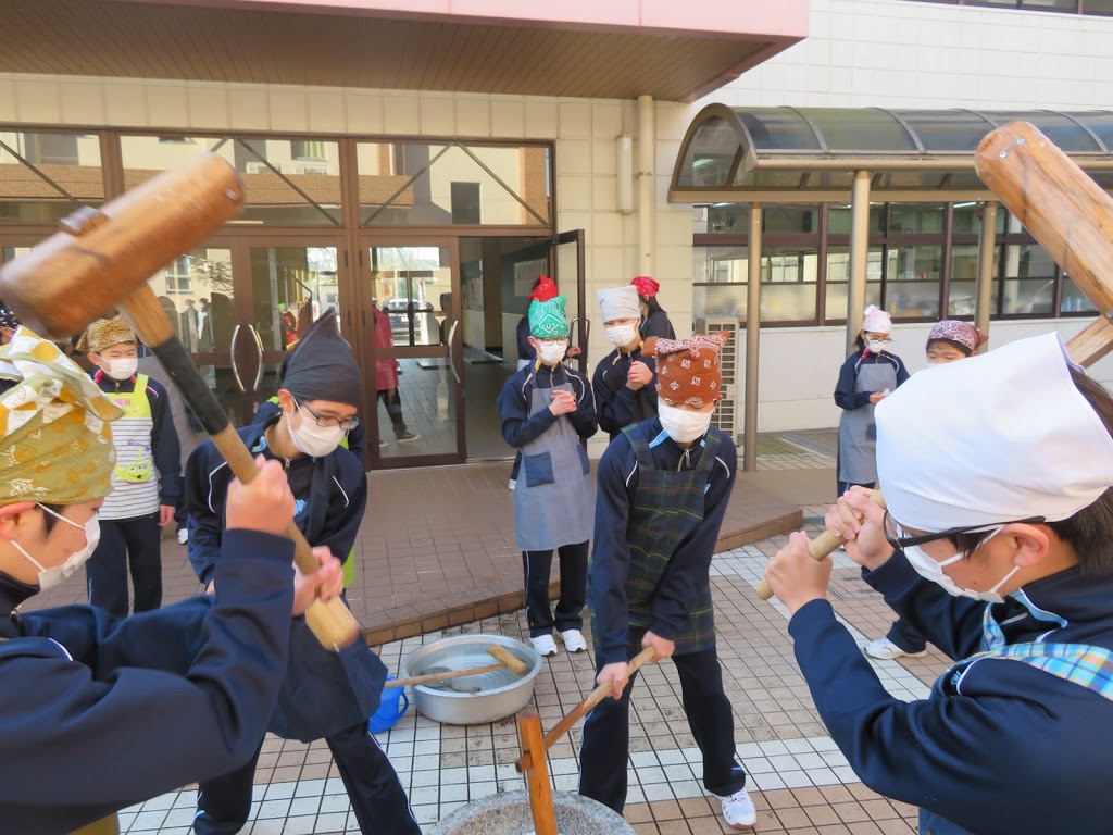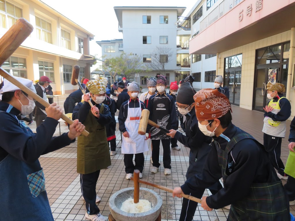 今年も鵬翔中学校の冬期課外最終日に、餅つき会が行われました。