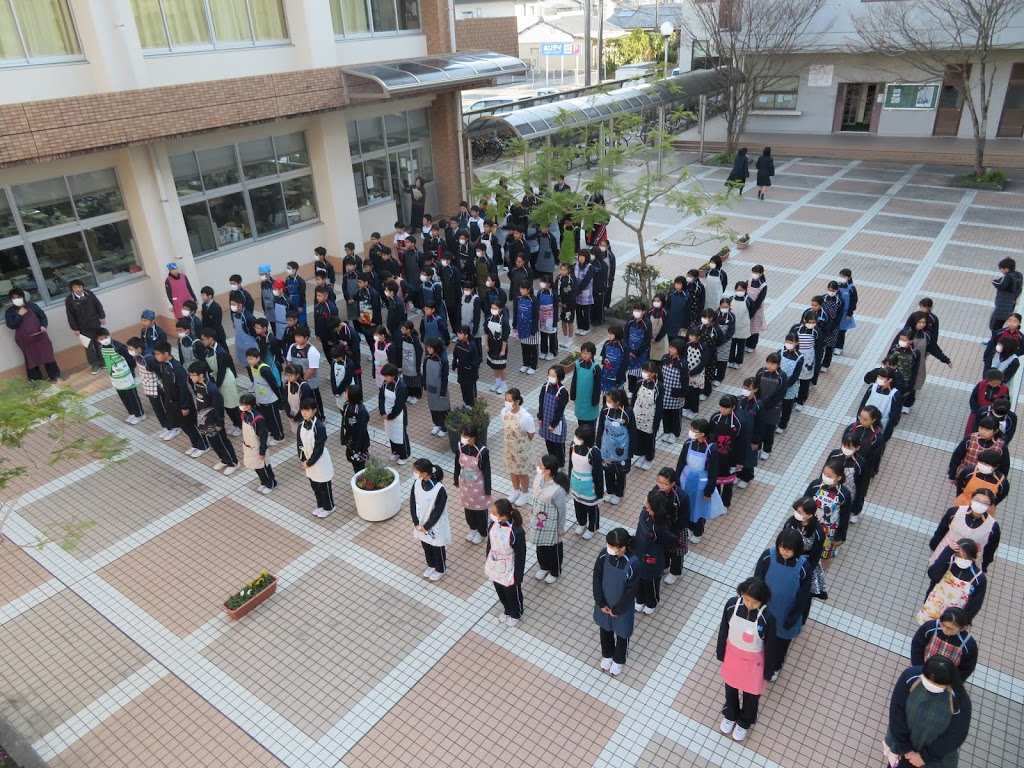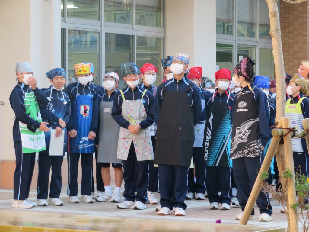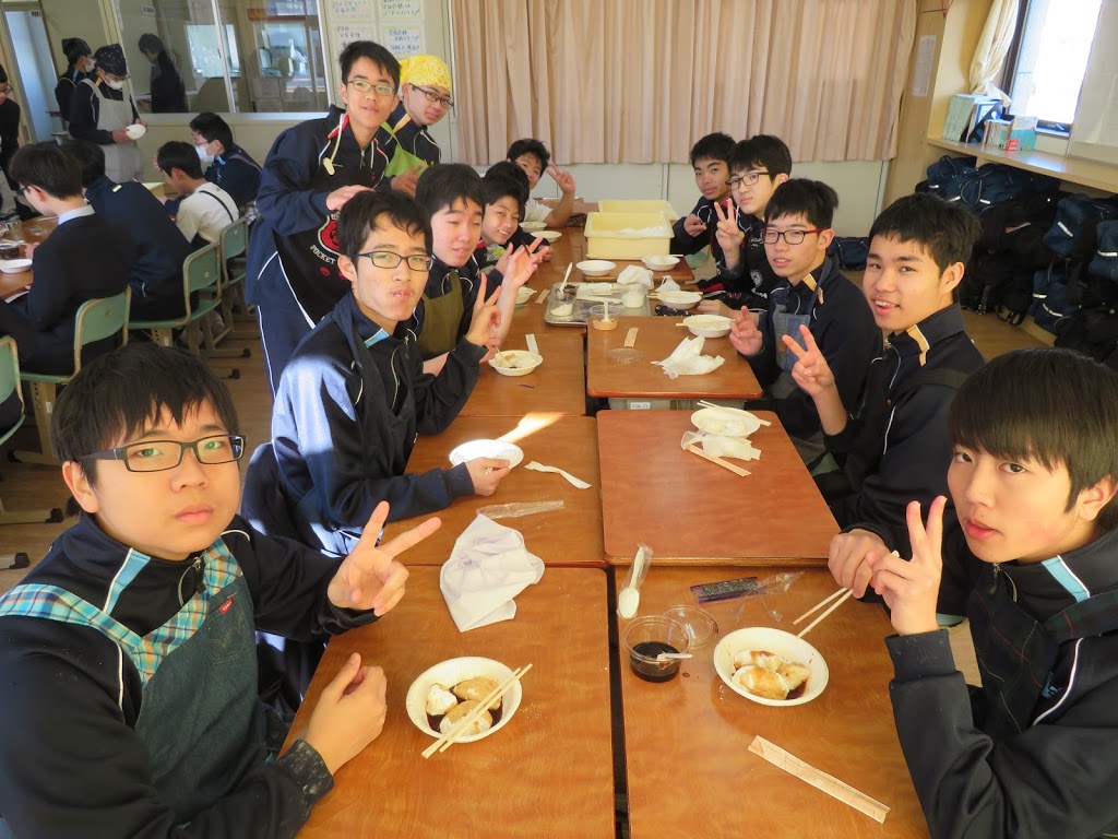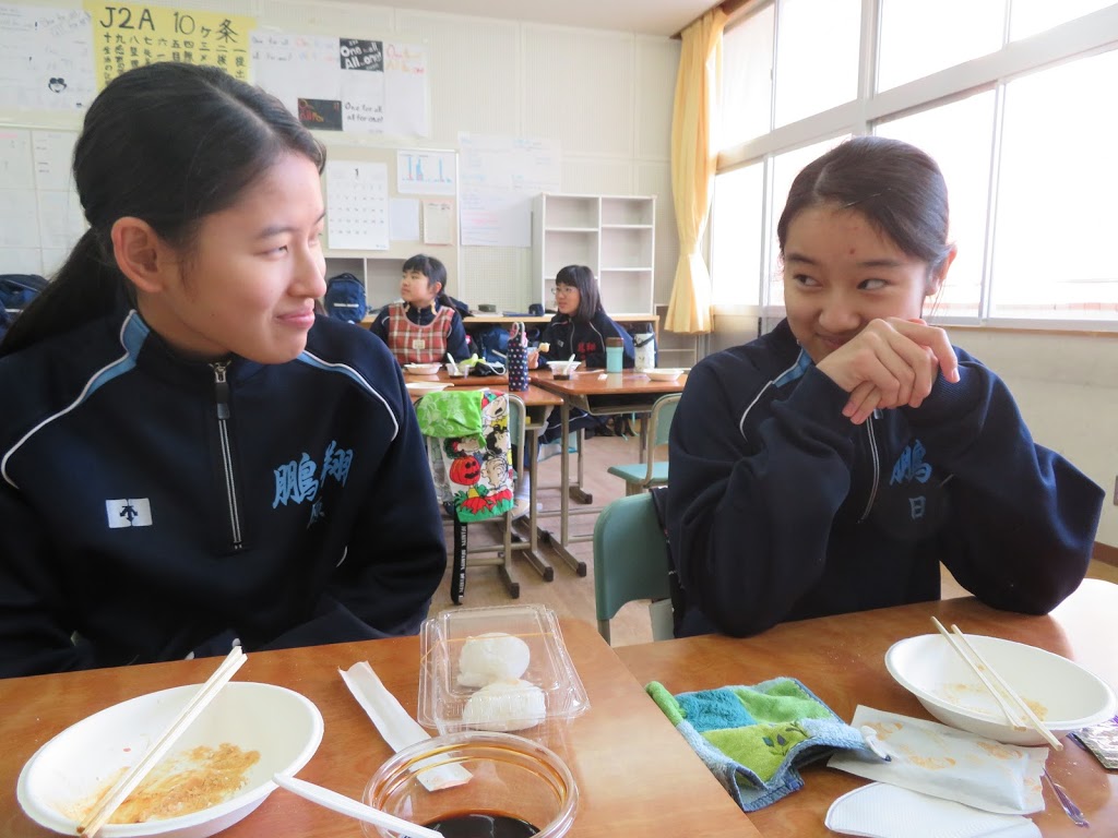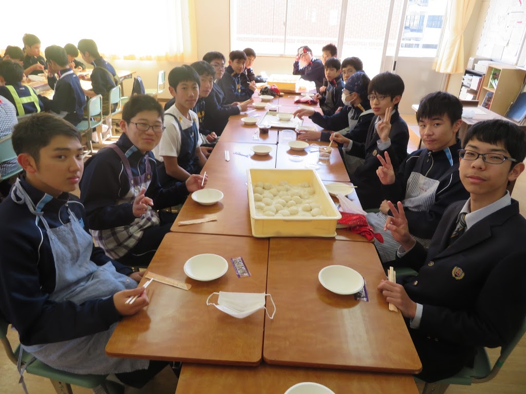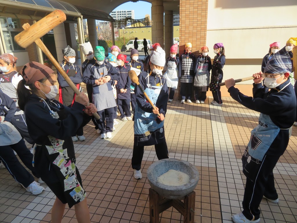今年も鵬翔中学校の冬期課外最終日に、餅つき会が行われました。