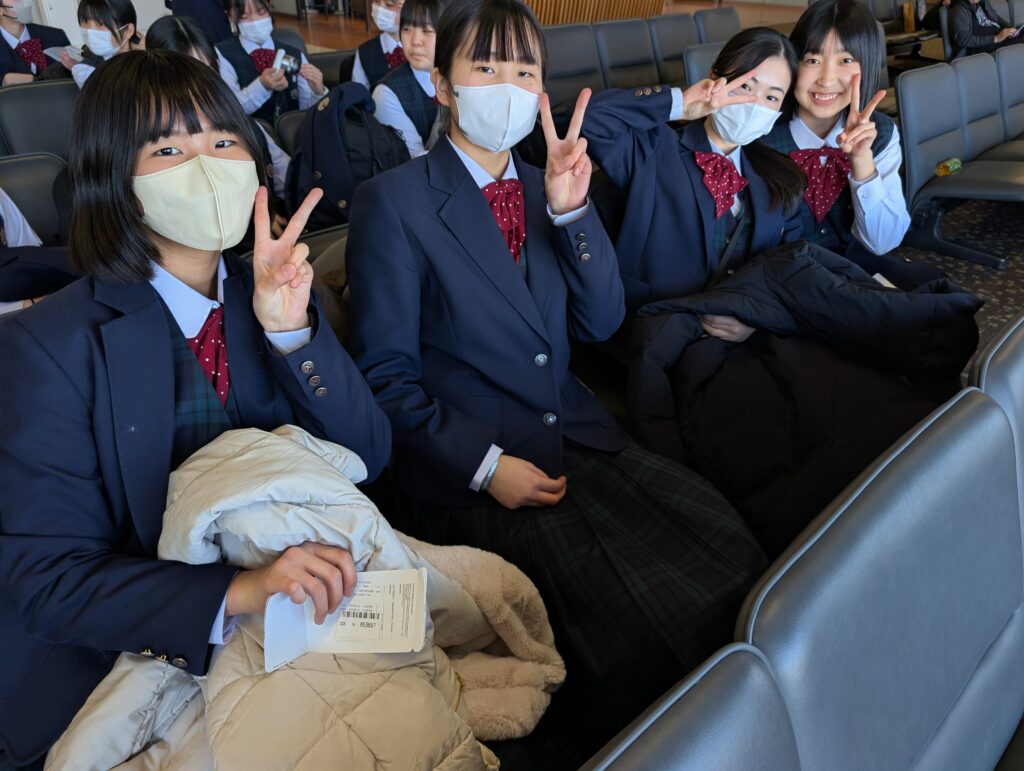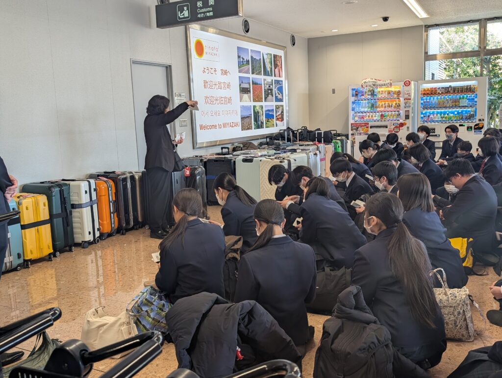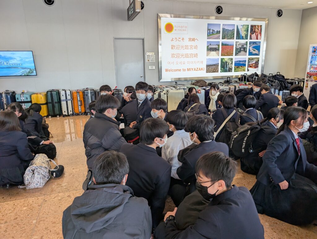 いよいよ、今日から3年生は修学旅行へ出発します。現在、宮﨑空港で羽田空港へ向かう飛行機への搭乗を待っているところです。
