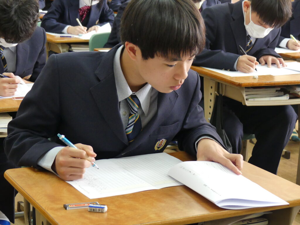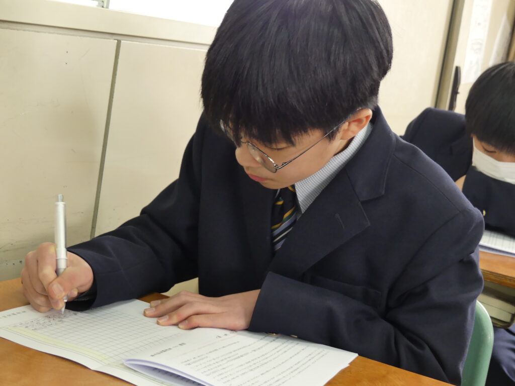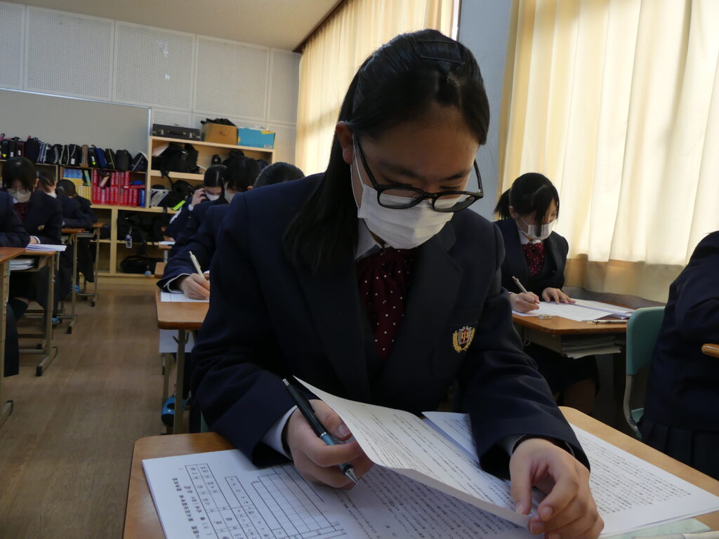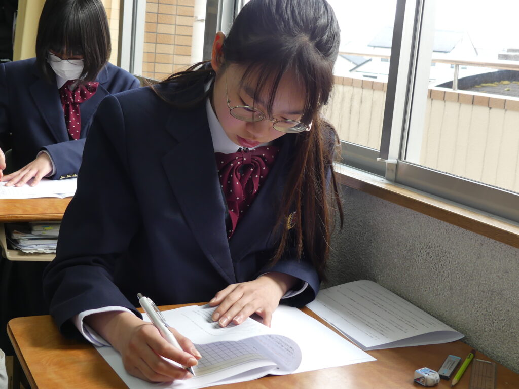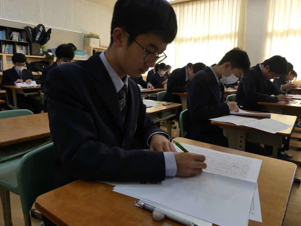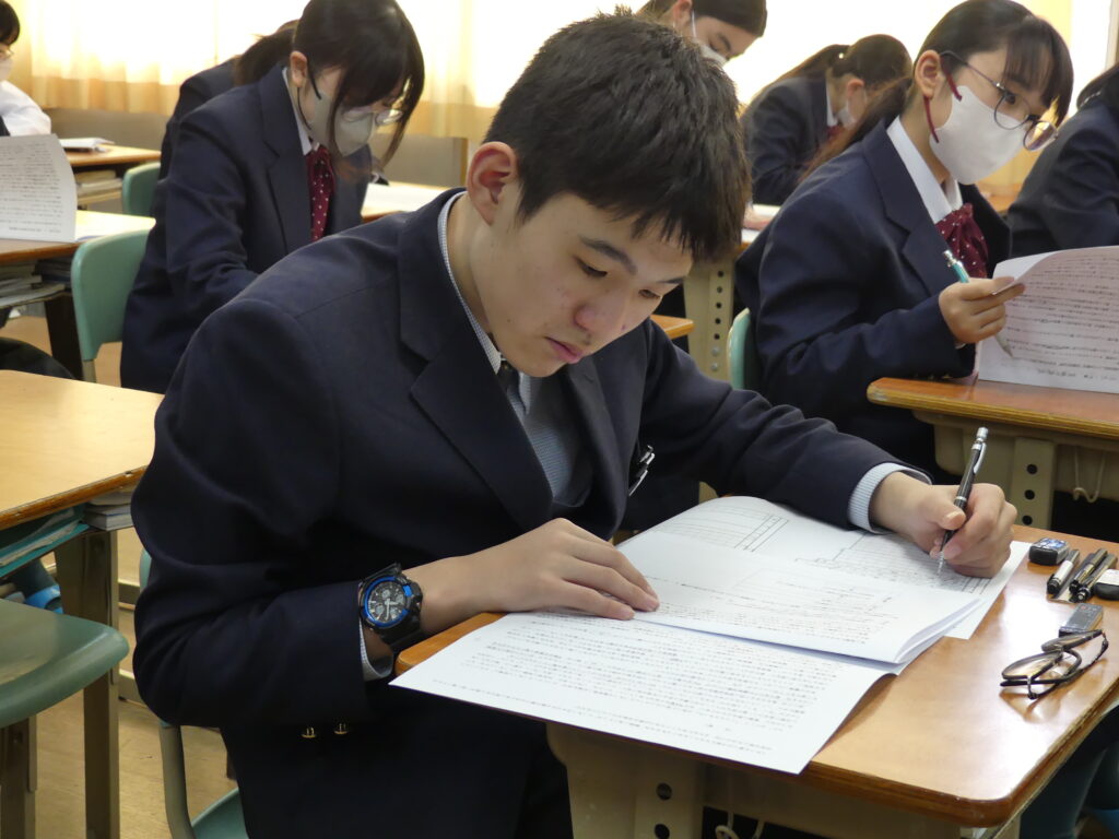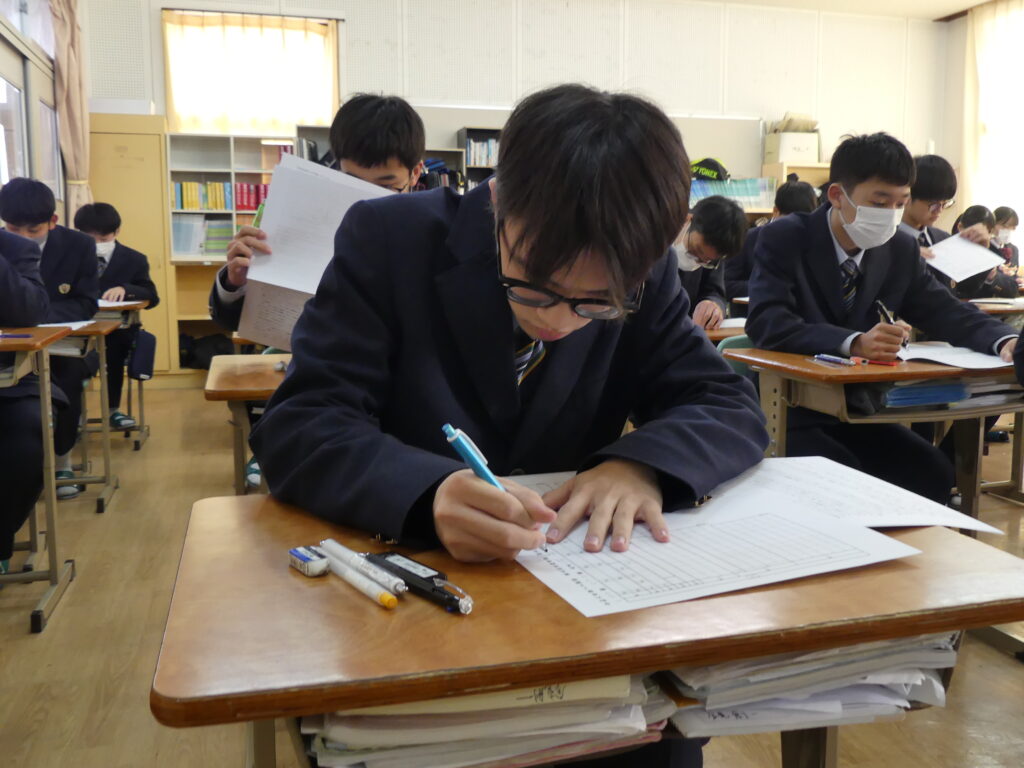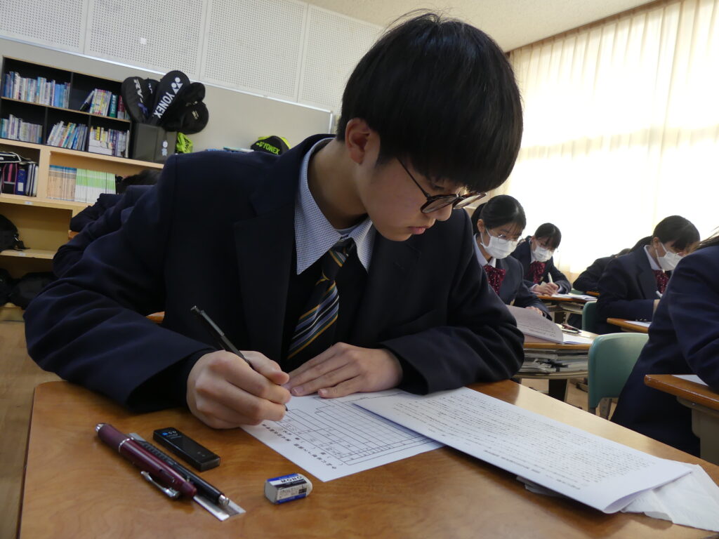 いよいよ本年度最後の定期考査も最終日になりました。J1、J2の各クラスで真剣に学習する姿が見られました。