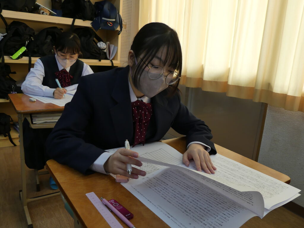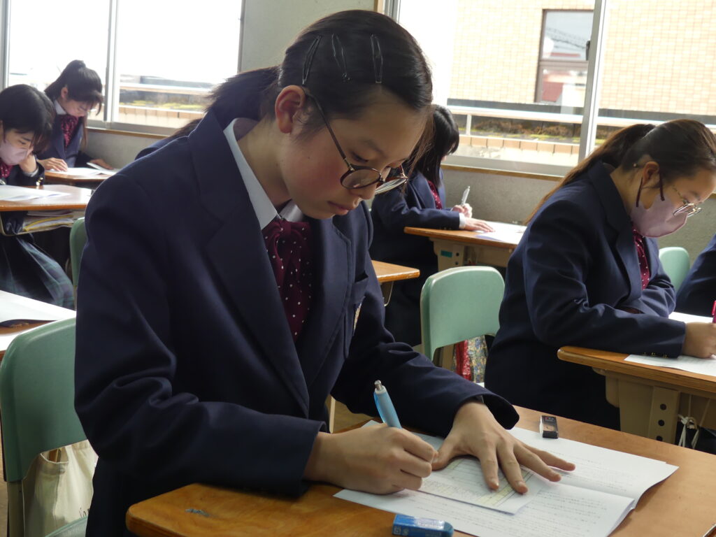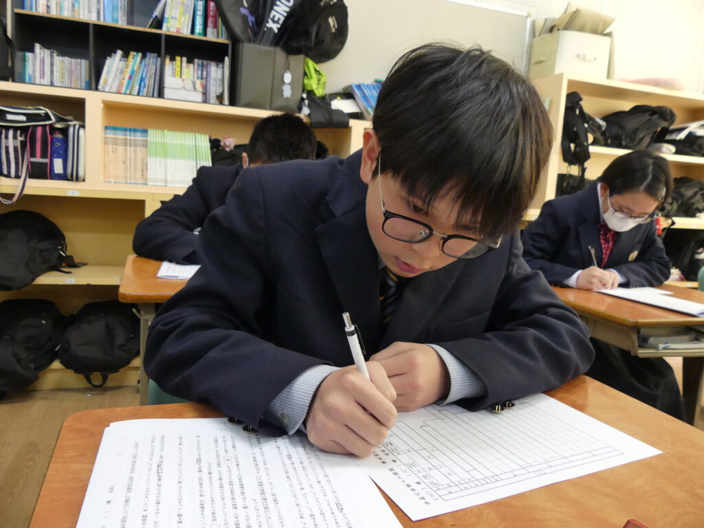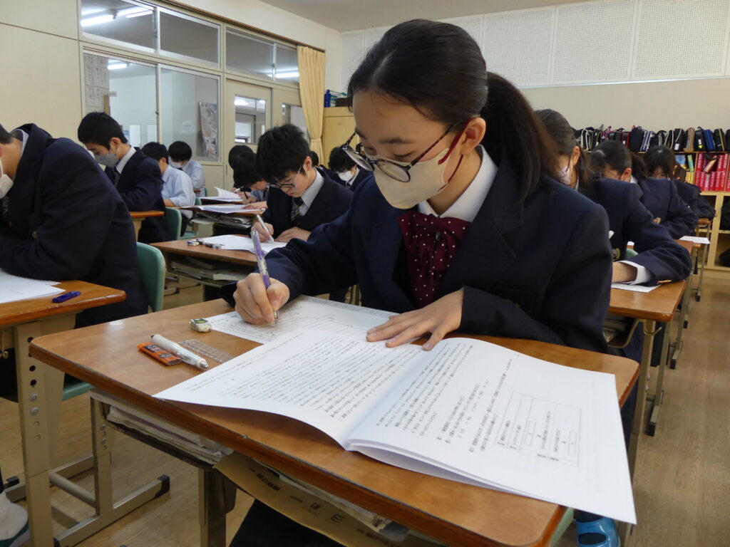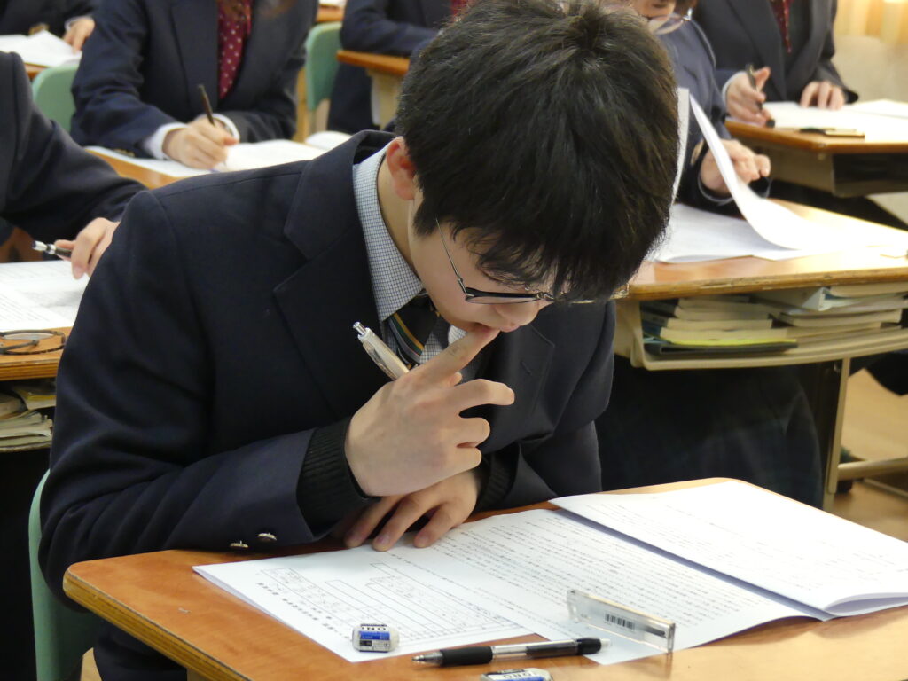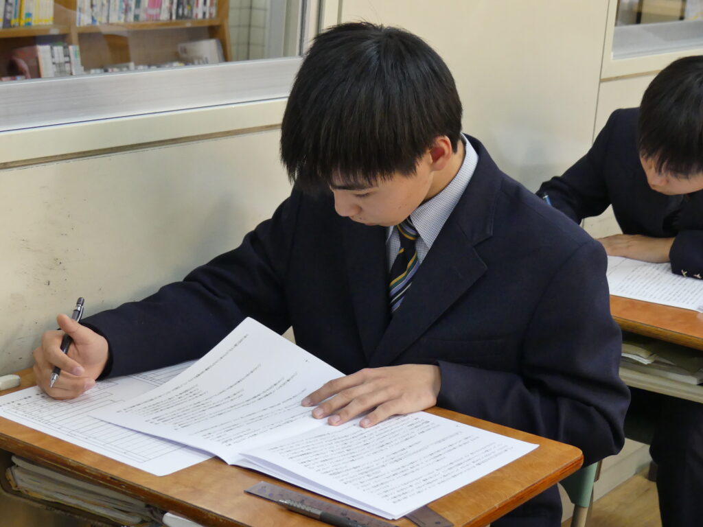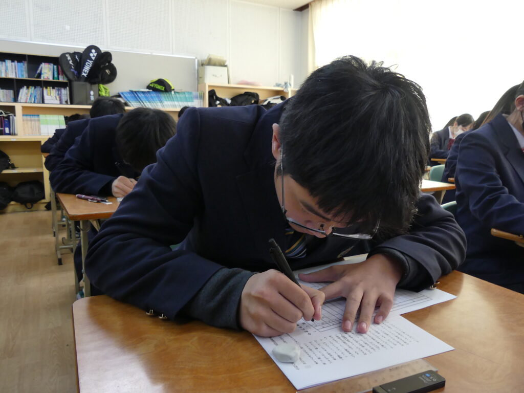 いよいよ本年度最後の定期考査も最終日になりました。J1、J2の各クラスで真剣に学習する姿が見られました。