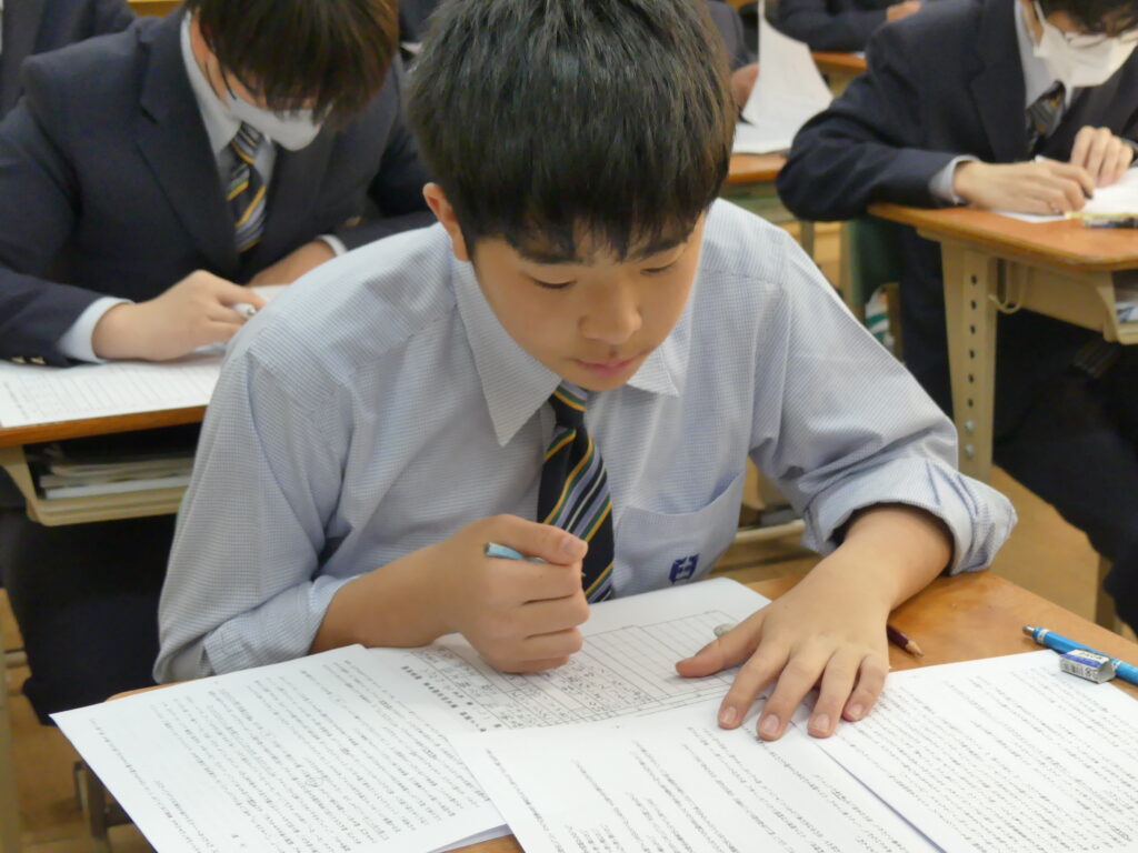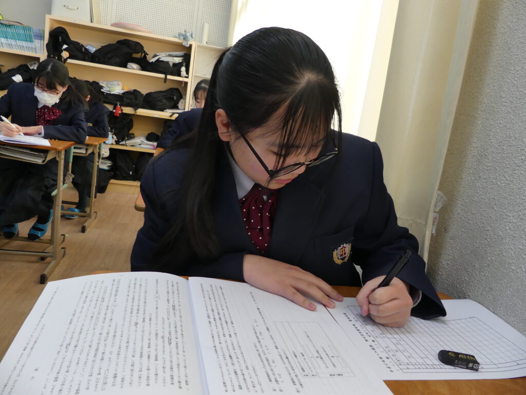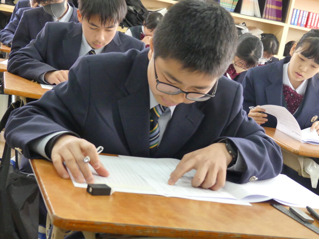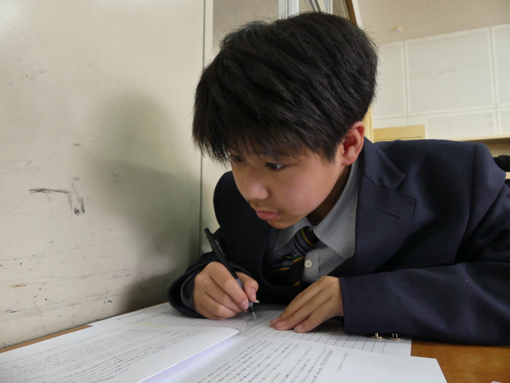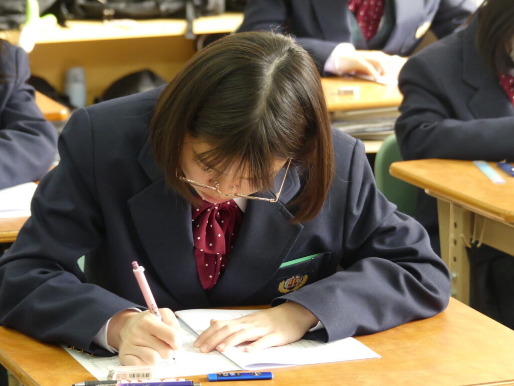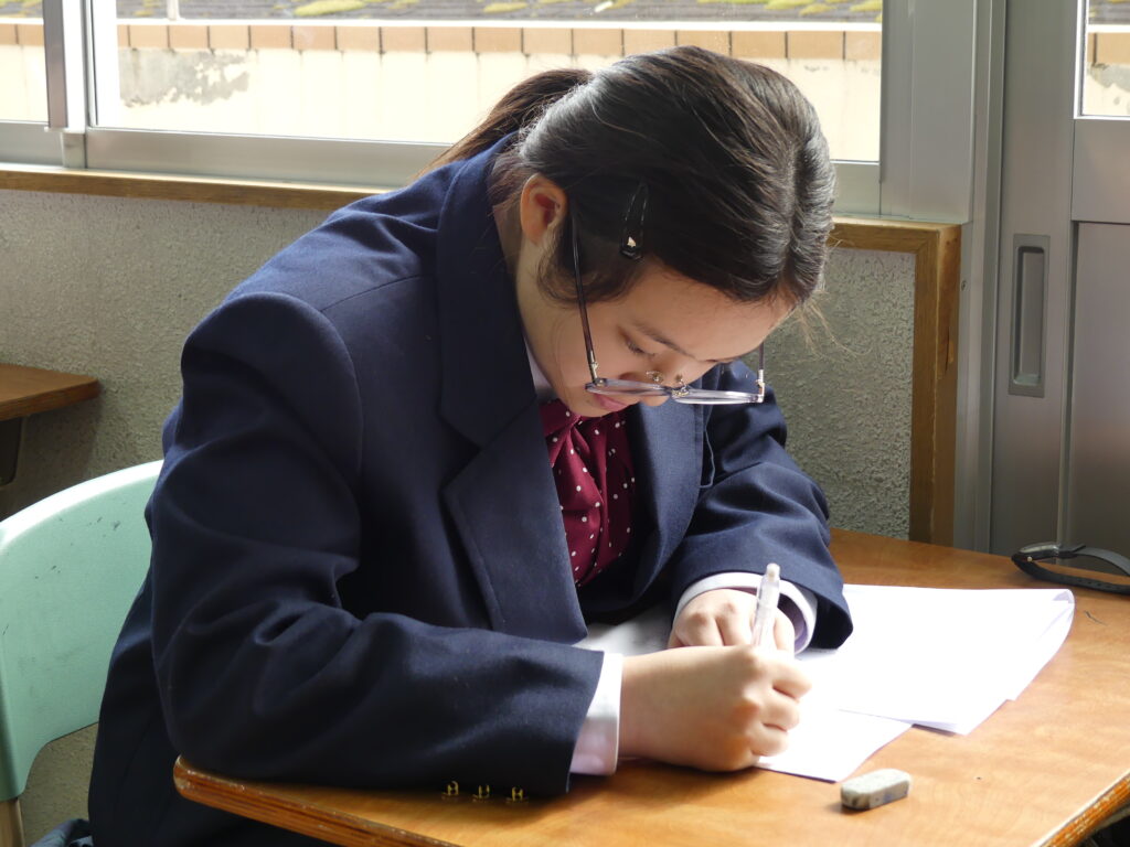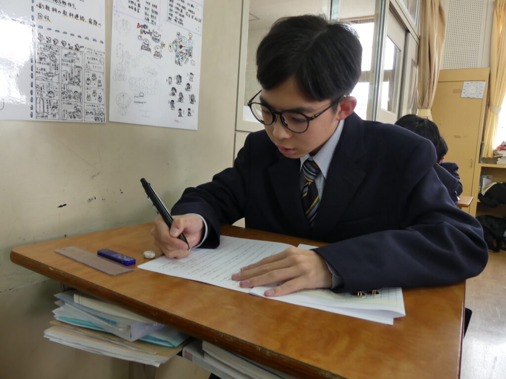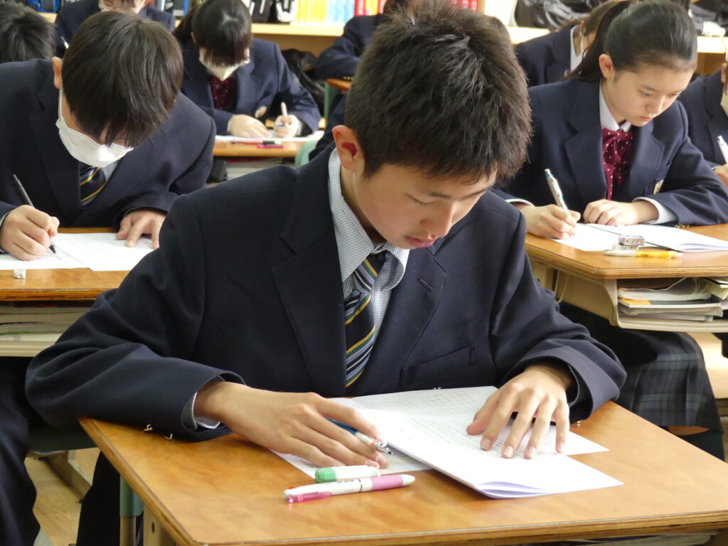 いよいよ本年度最後の定期考査も最終日になりました。J1、J2の各クラスで真剣に学習する姿が見られました。