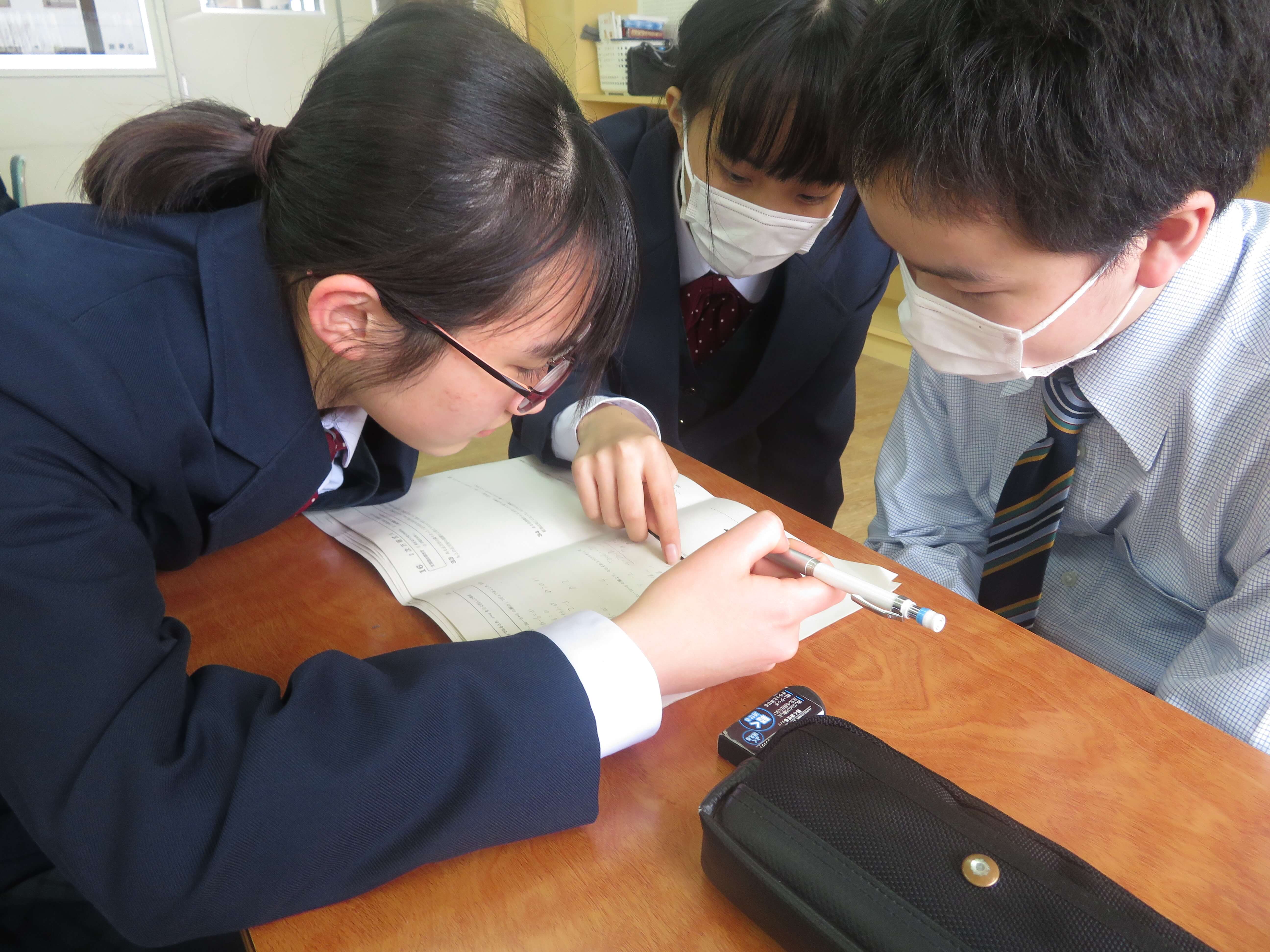 清掃の手伝い後はそれぞれ、持参した学習教材を用いて自学をし、休憩時間は友人と、数学の問題の解き方を確認していました。