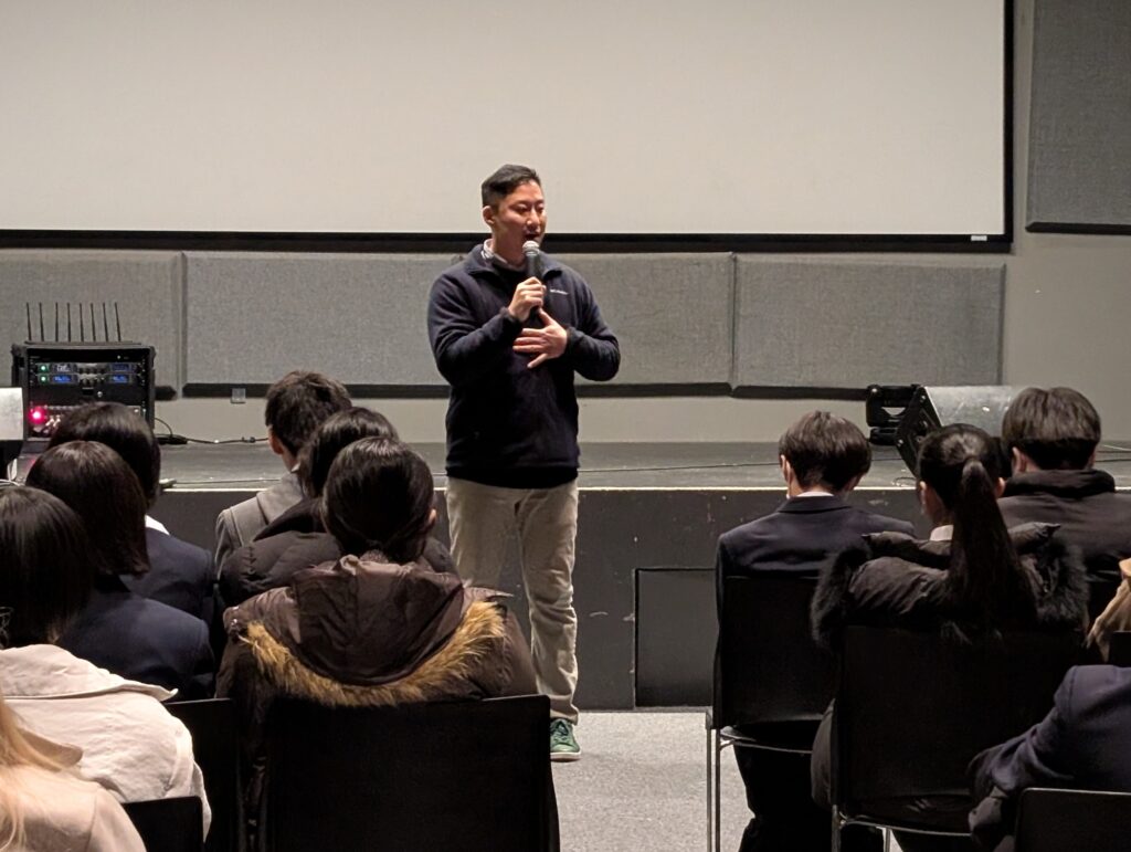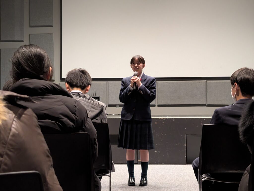 空港を出て、RCAに到着しました。初めにウェルカムセレモニーが行われました。学校を代表して、黒川芽唯さんがスピーチをしてくれました。