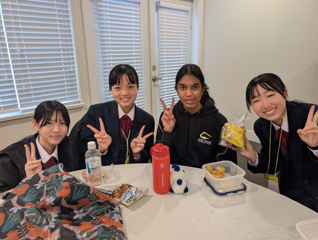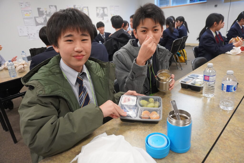 ホストファミリーに送ってもらい、美味しそうなランチボックスを携えて元気に集合してくれました。
