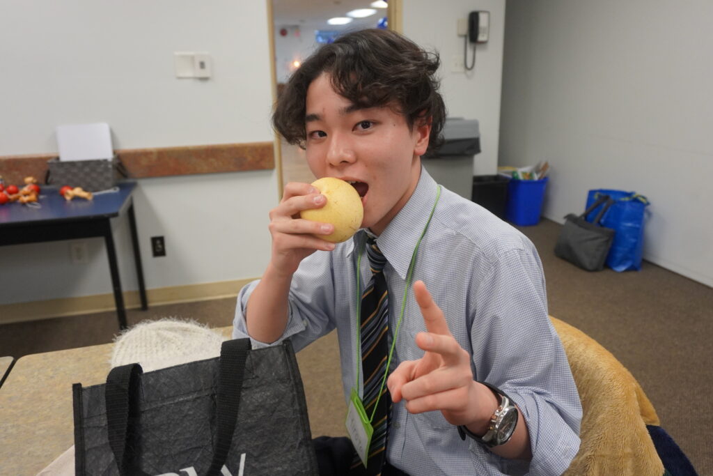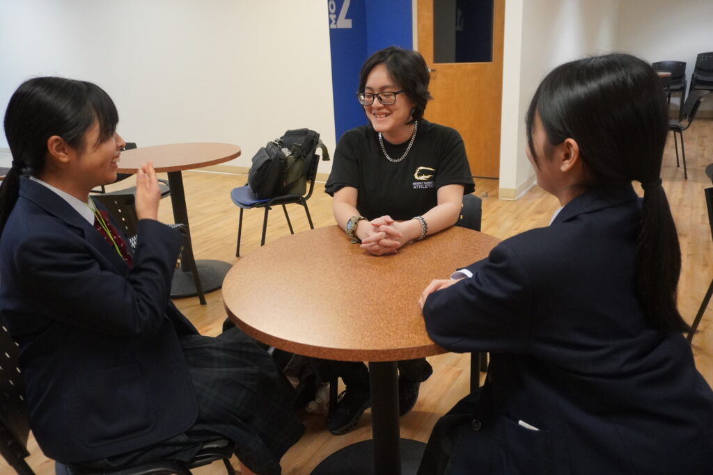 朝早く集合場所に来た生徒に話を聞くと、「話をたくさんしてくれました!」「ご飯が美味しかったです!」「子どもたちと折り紙をしました!」という元気なのは言わずもがな、楽しそうな様子を話してくれました。ランチの後のブレイクタイムの様子をお伝えします。