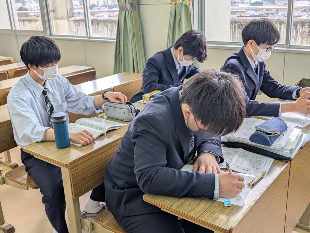最後の定期考査も終わり、多くのテストが返却されています。放課後学習では、テストのやり直しをしたり、総復習テストに向けて勉強する姿を見ることができました。また、わからないところも積極的に質問をしていました。