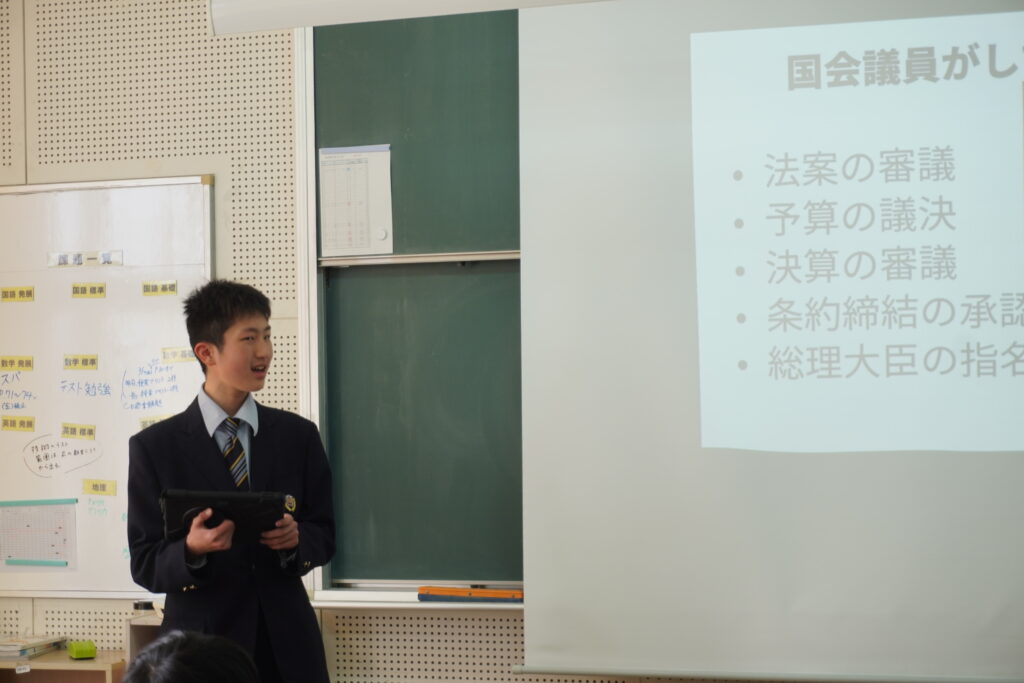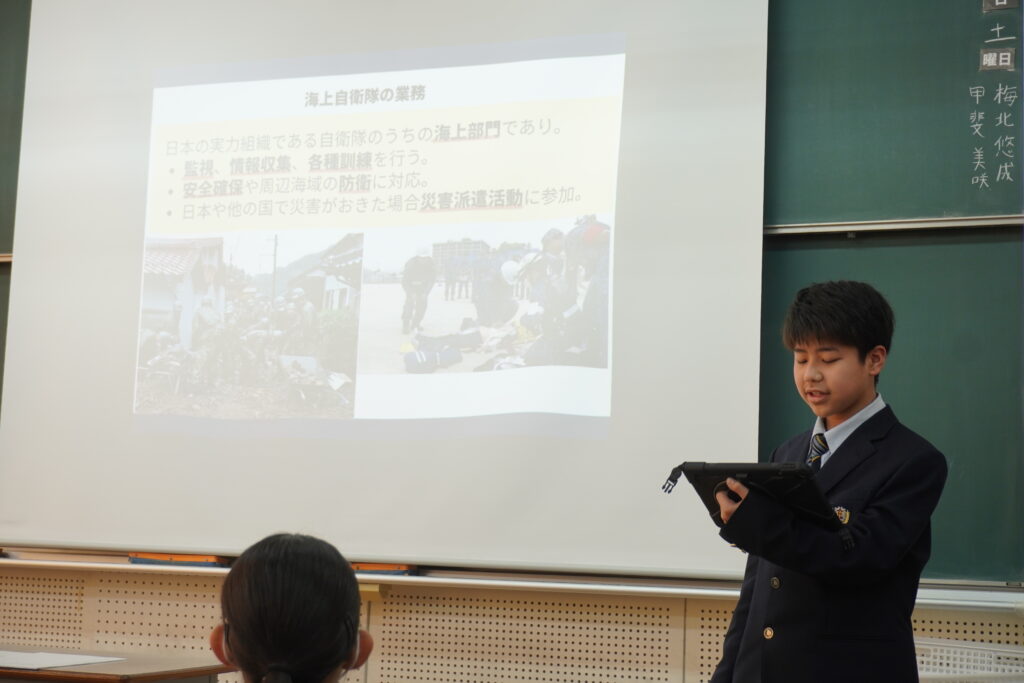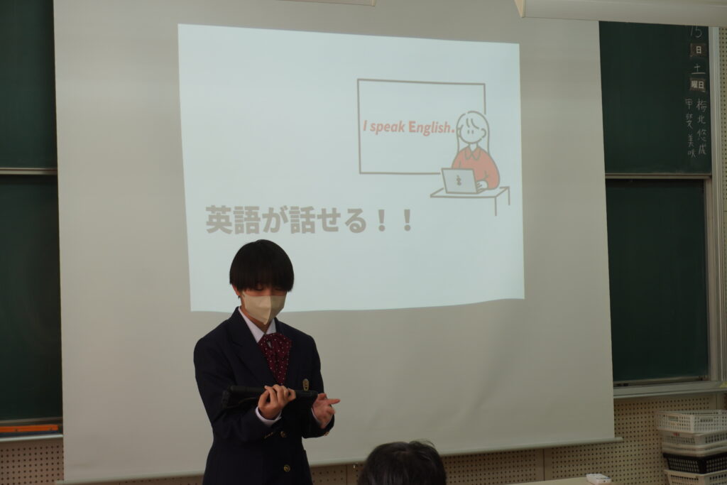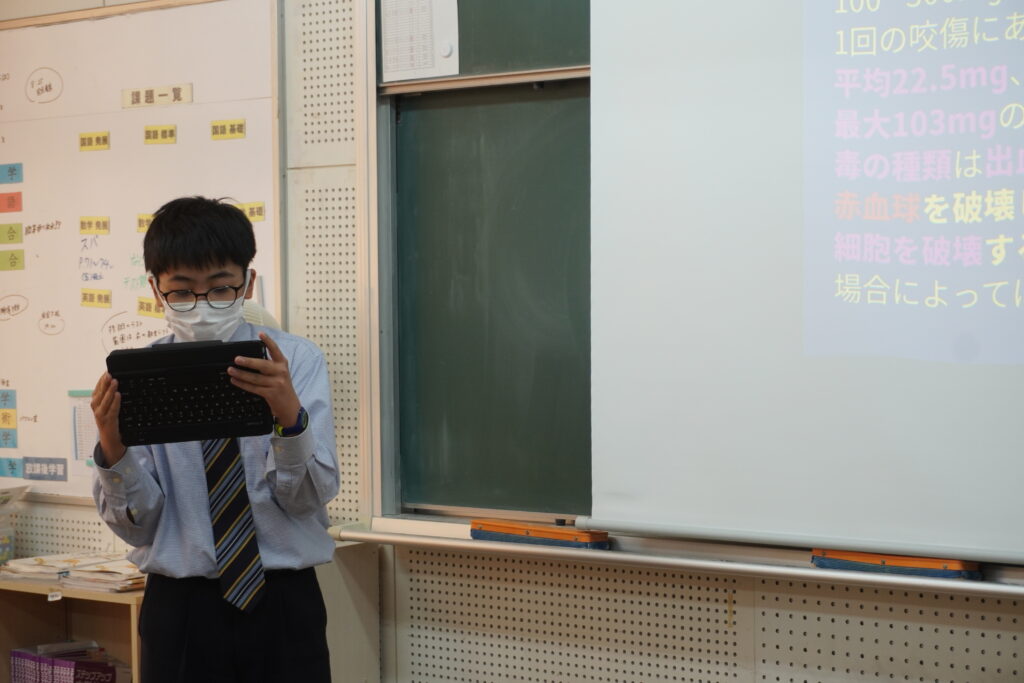 先日、クラスにて、研究発表がありました。発表のようすです。