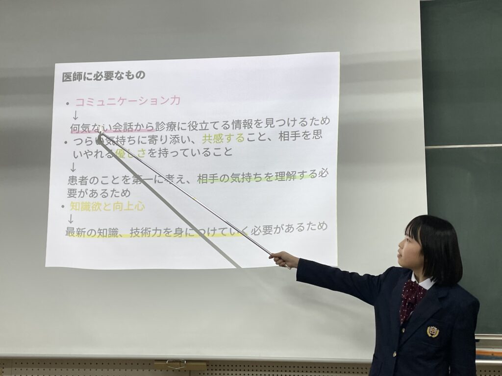 今回の職業調べや大学の学部研究を通じて、自分の将来についてイメージしていき、今後の学校生活に繋がっていければと思います。
