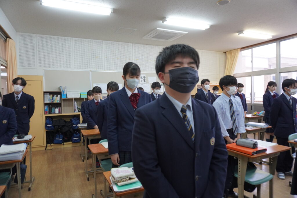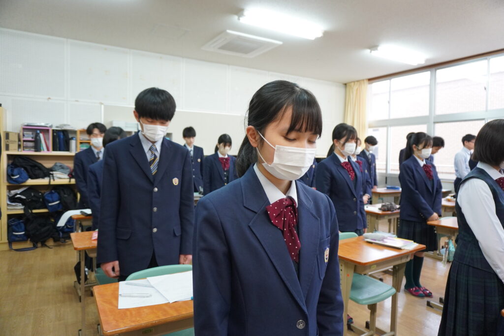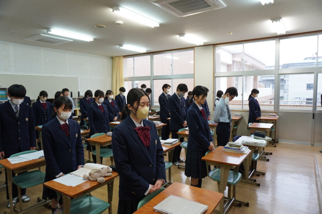 東日本大震災から14年を迎え、朝のHR前に黙とうをしました。