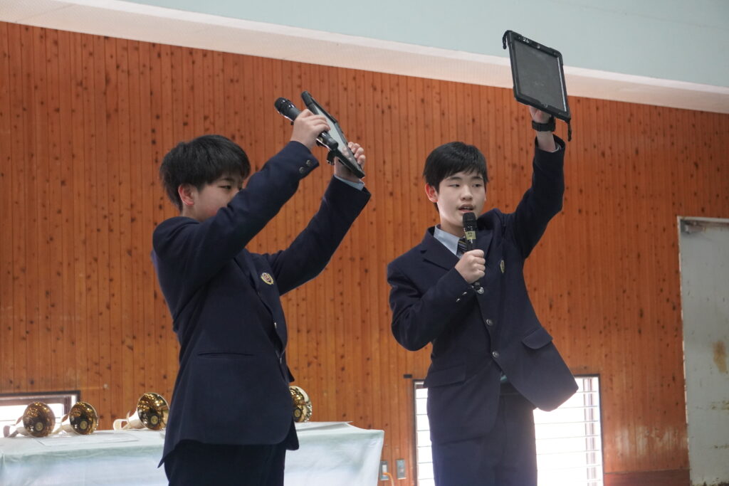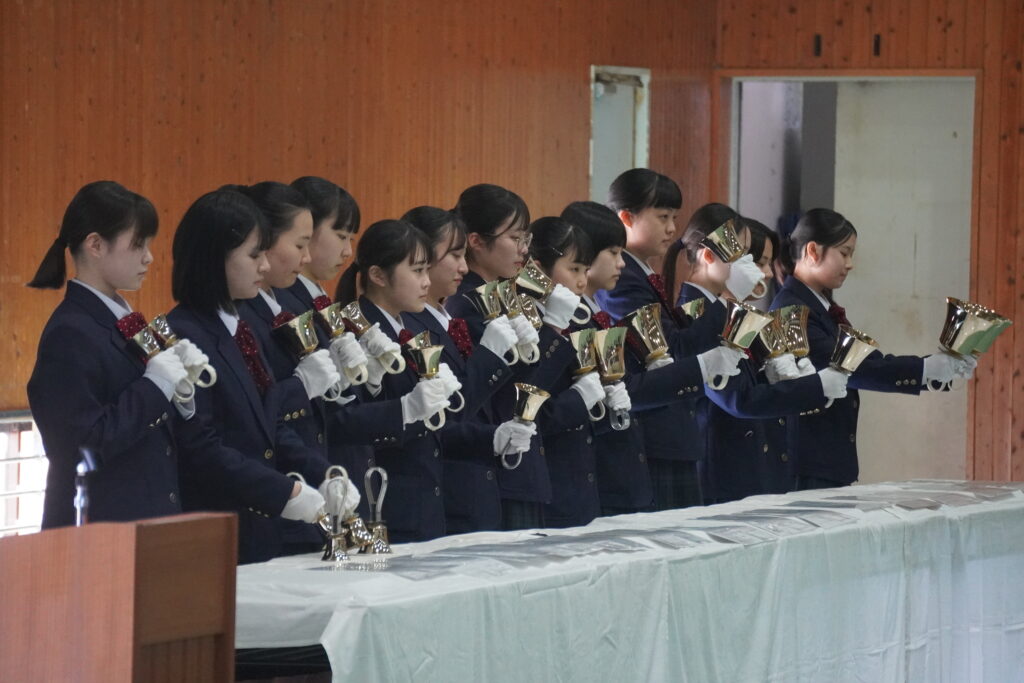 オープンスクールは、ハンドベル部の演奏からスタートしました。ハンドベルの綺麗な音色は毎回、鵬翔中学校のオープンスクール開始の合図を告げてくれます。