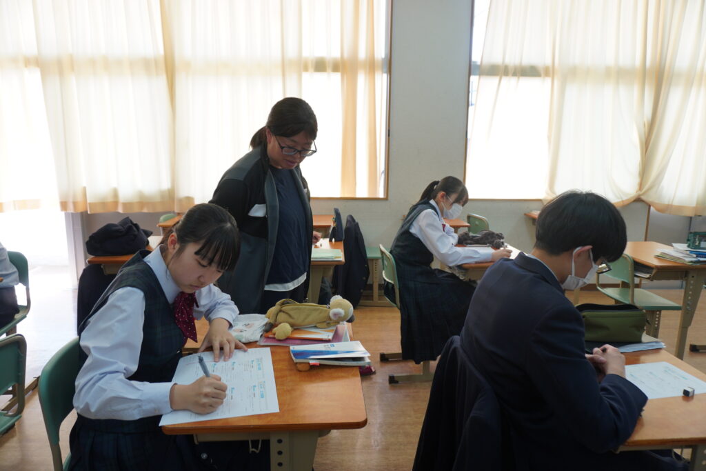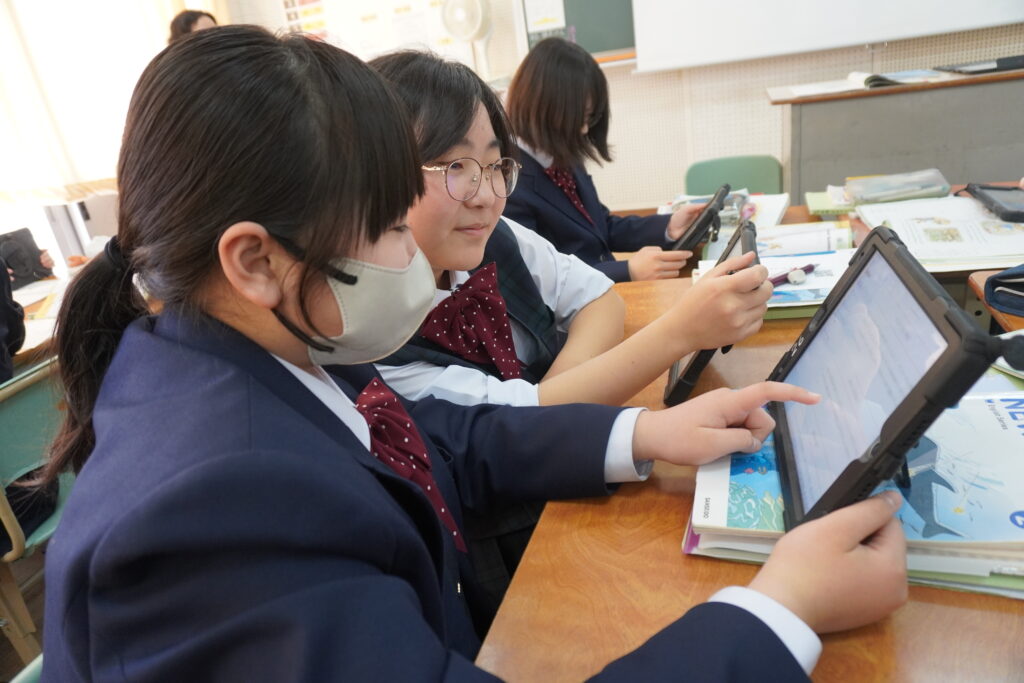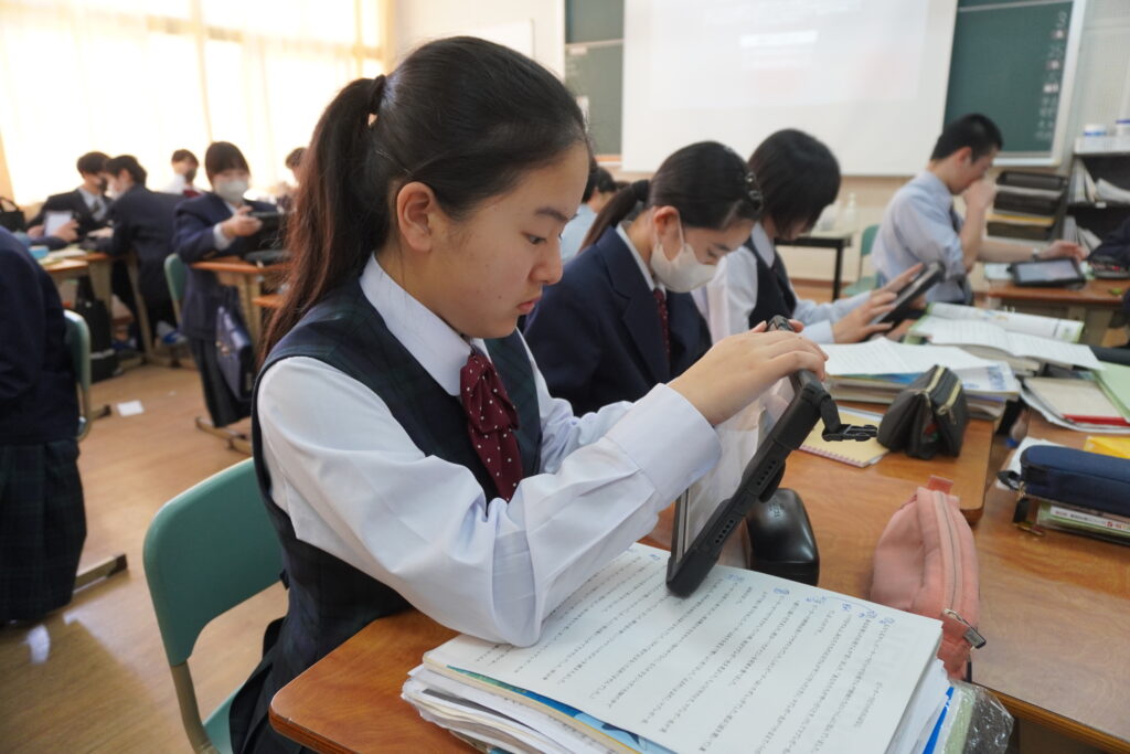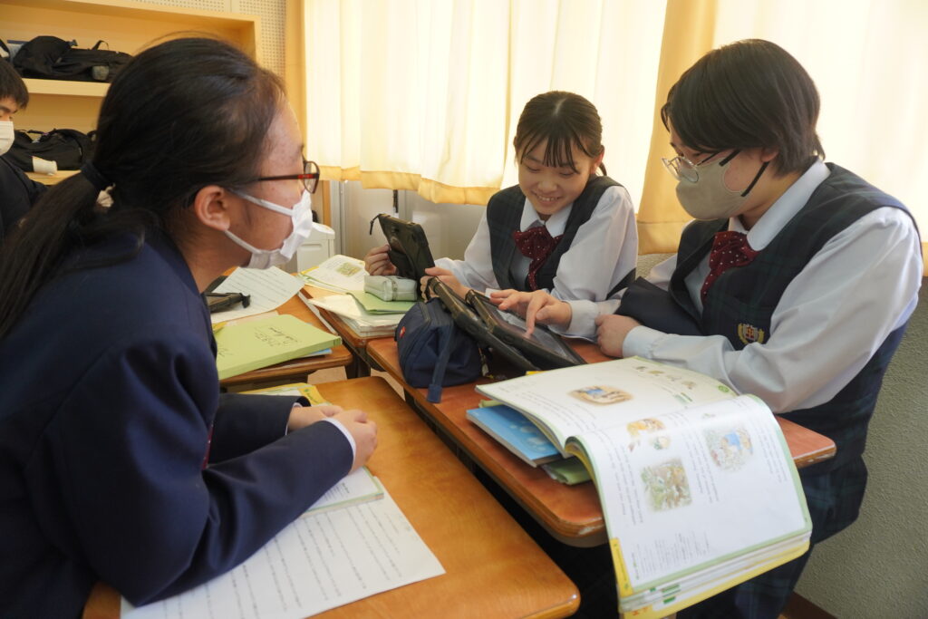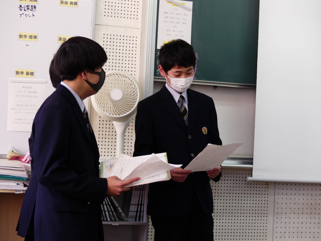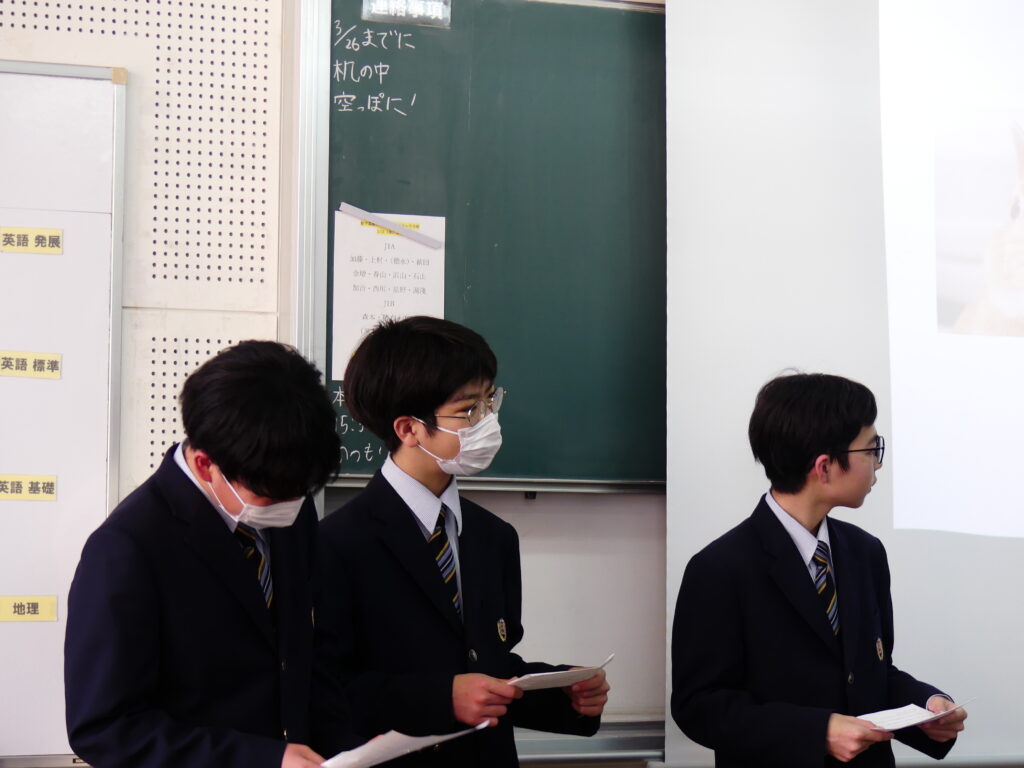 本日、春期課外2日目です。J1英語標準クラスをのぞいてみると、グループを作りスライドを作成していました。