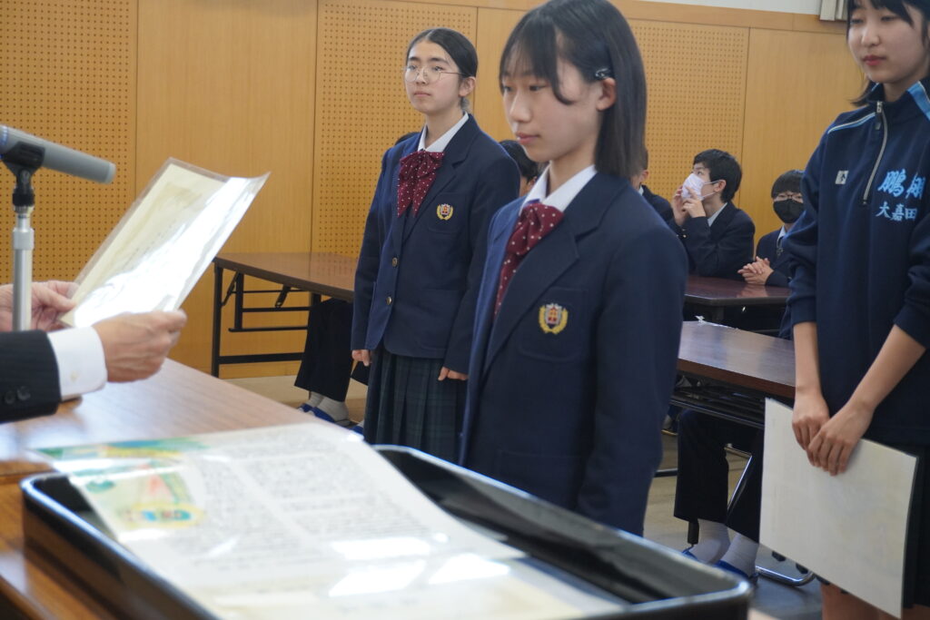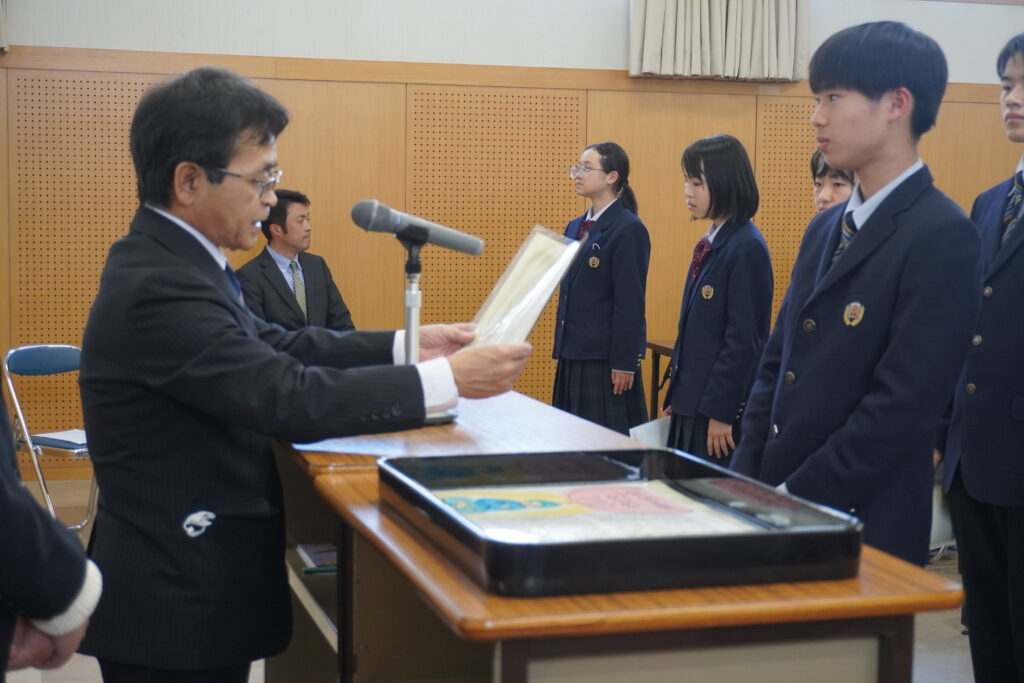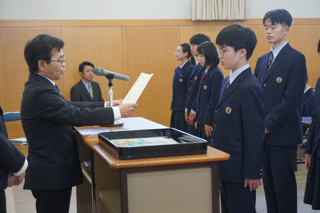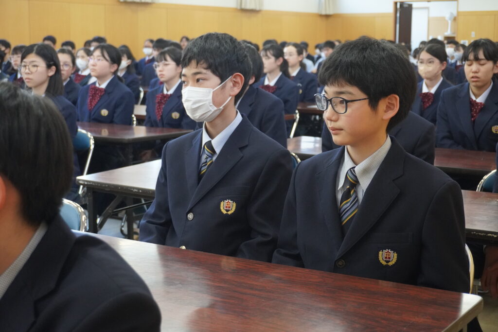今日は令和6年度の最期の登校日でした。課外終了後は、中学部集会が行われ、様々な作品の表彰や総復習テストの表彰式などがおこなわれました。