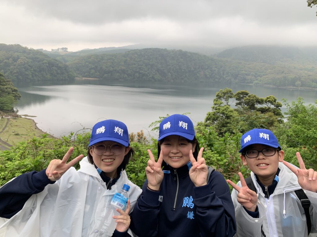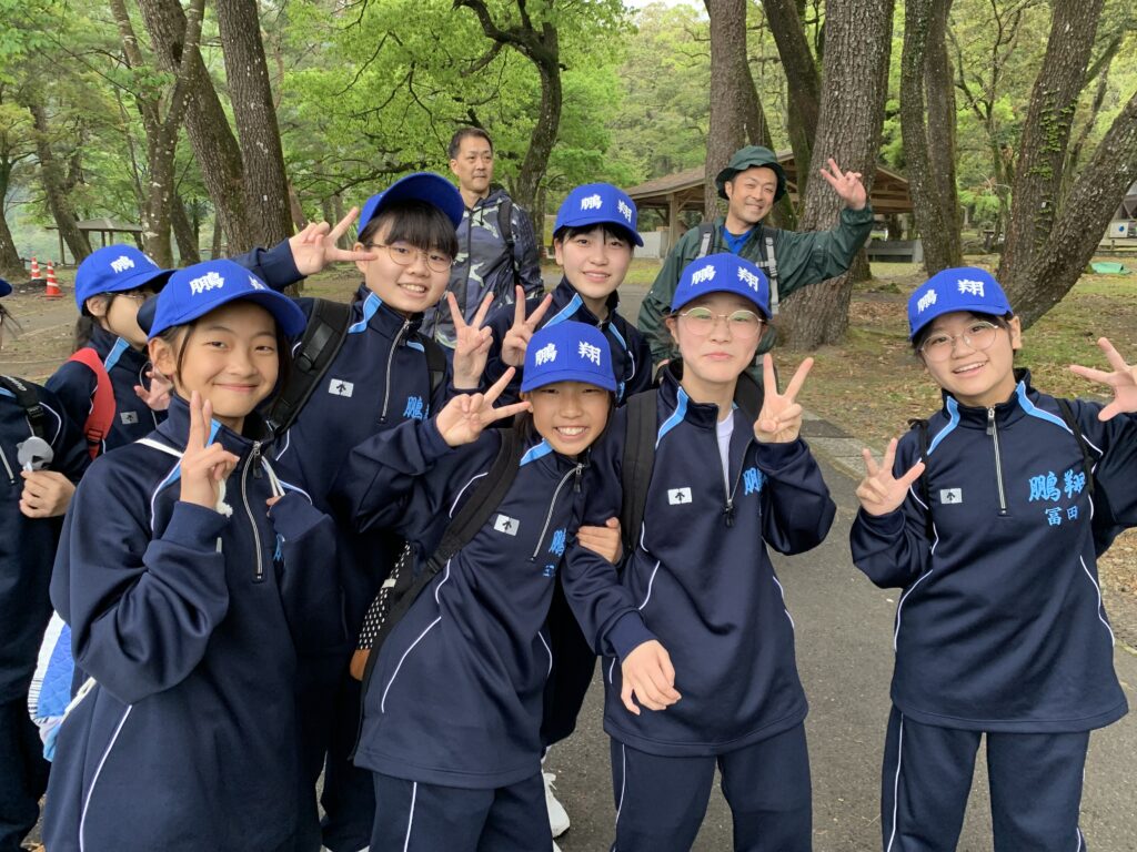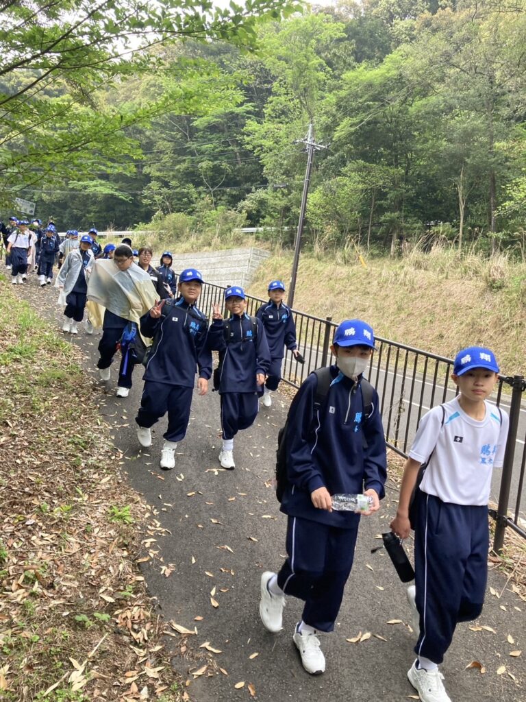 強歩会の様子です‼︎途中雨がぱらつく場面もありましたが、御池のほとりをみんなで歩き、霧島東神社へ向かいました。
