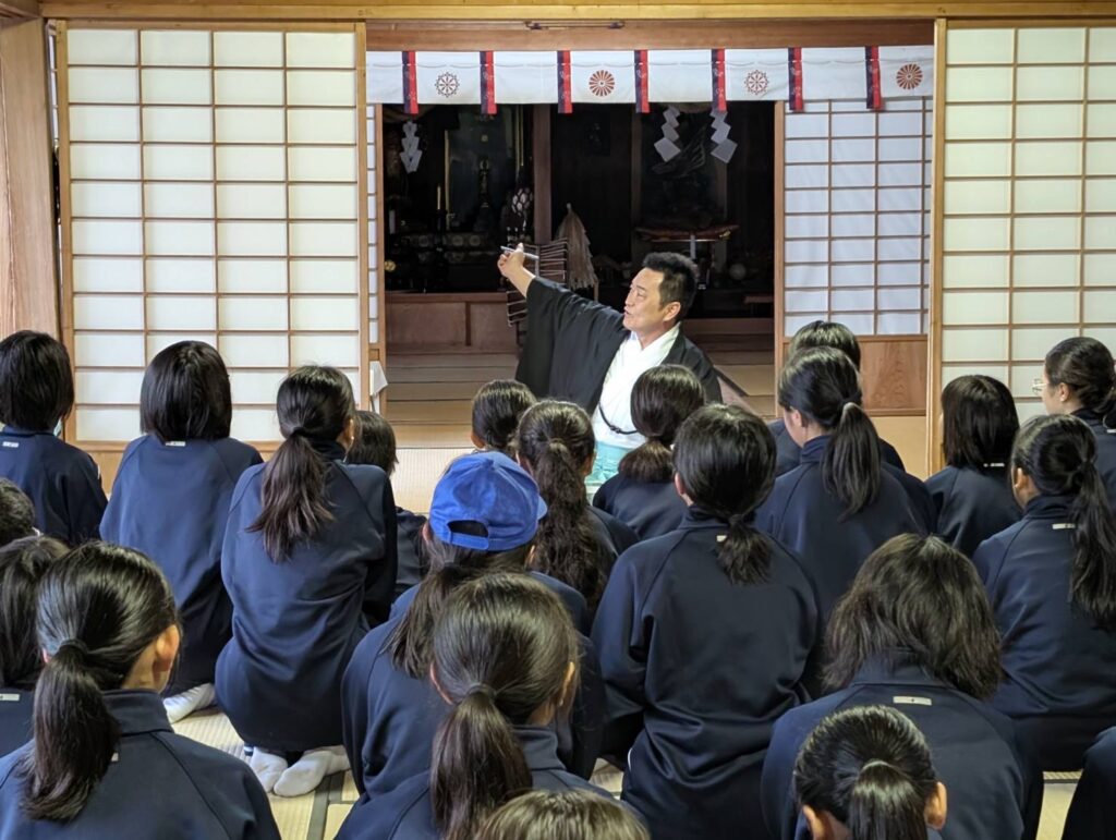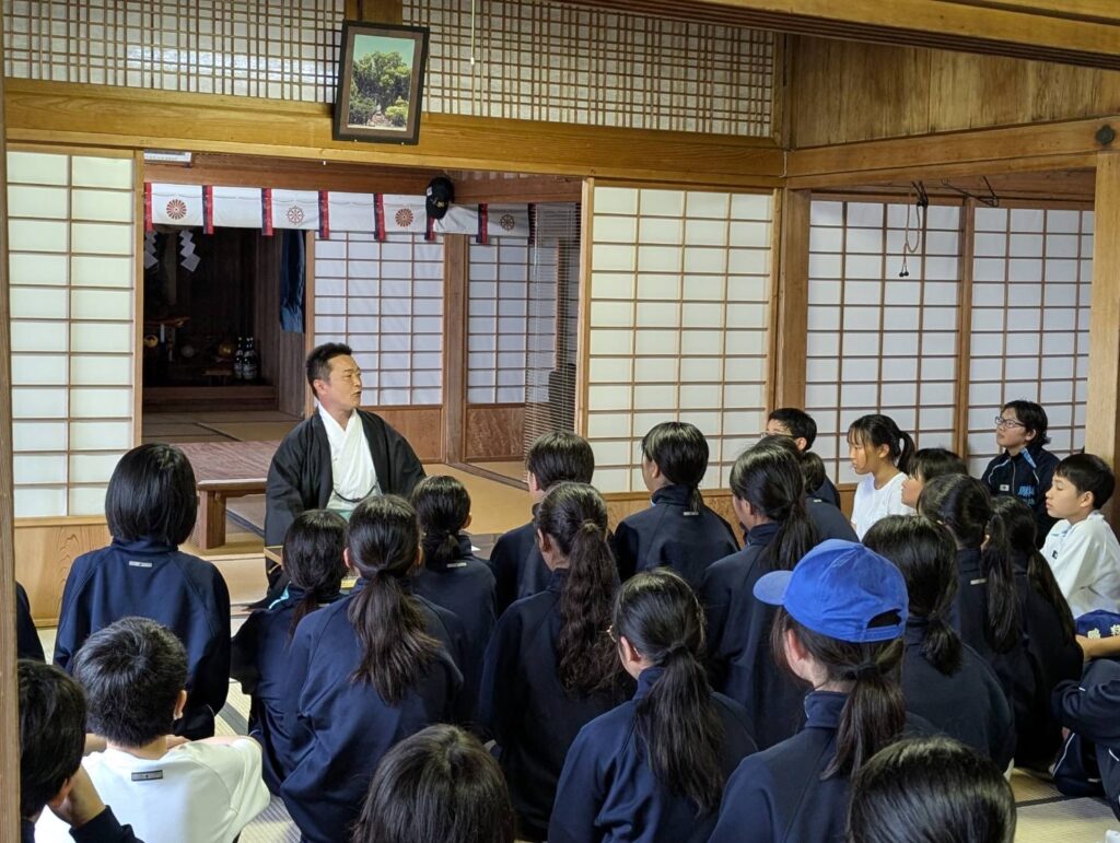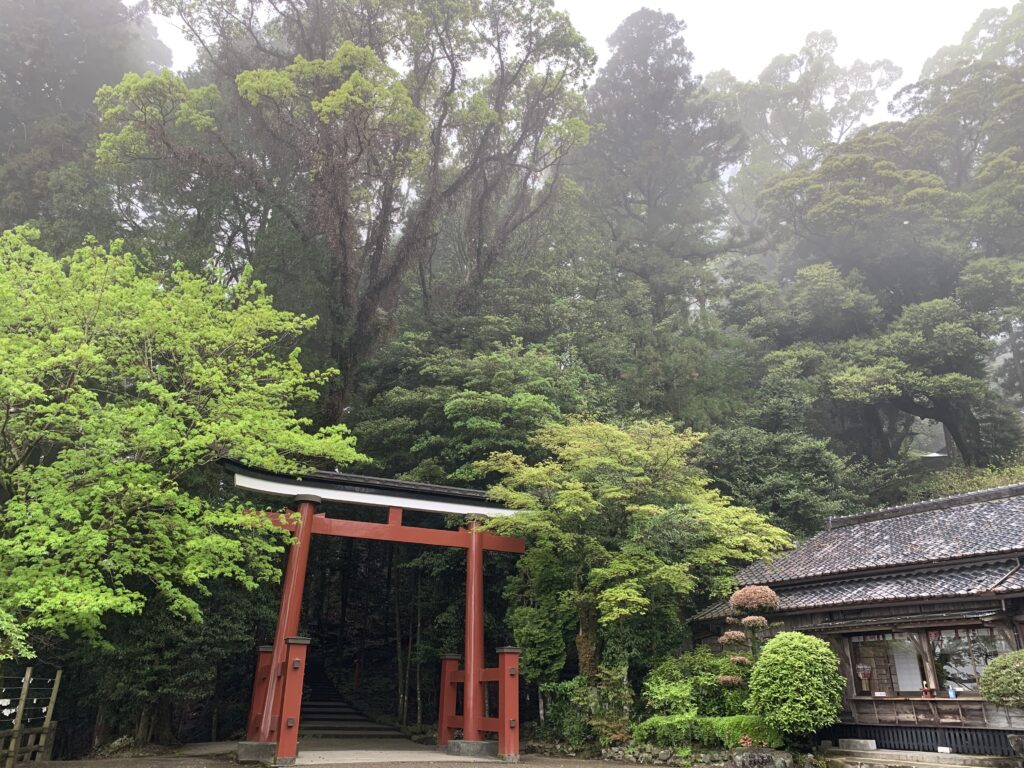 最後ものすごく急な坂をあがり、無事霧島東神社へ到着しました‼︎ここで、権禰宜さんより、東霧島の歴史などのお話を聴きました。