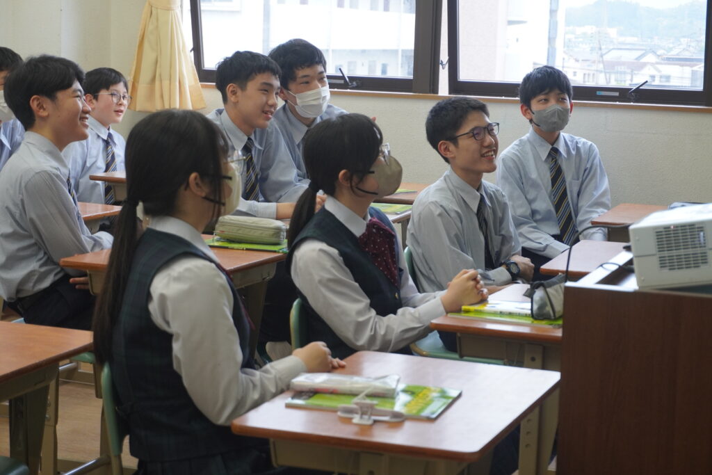 3つのクラスに分けて行われる英会話の授業では一人一人が発言をする機会が多くあります。