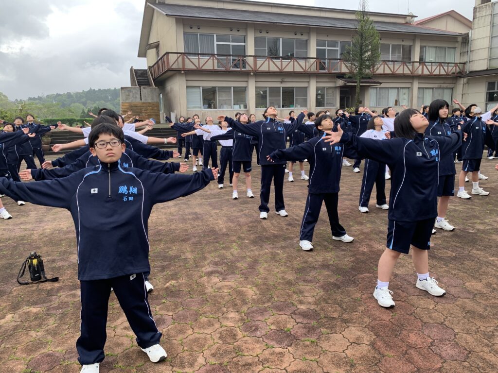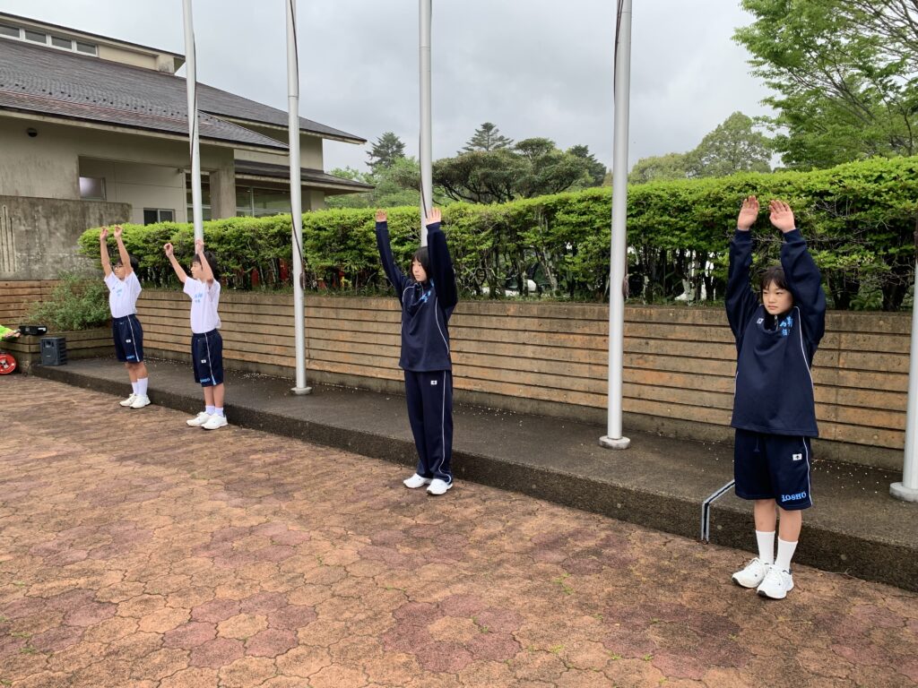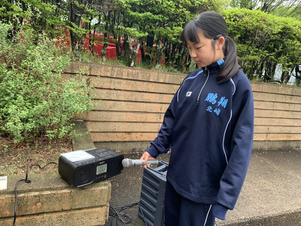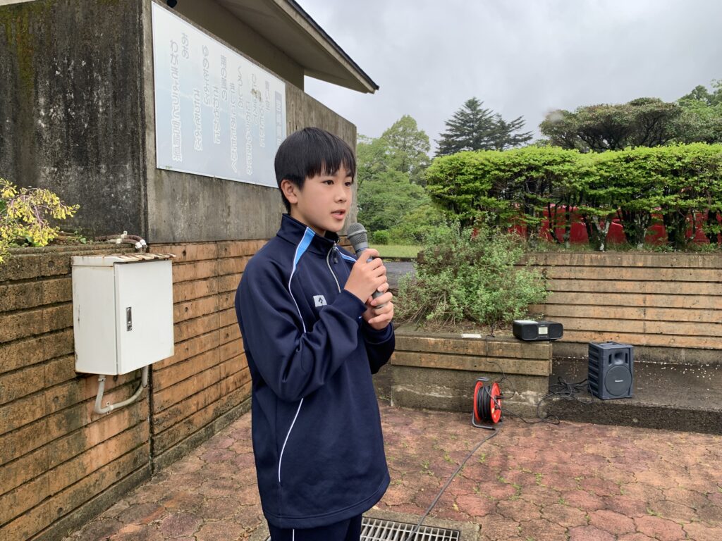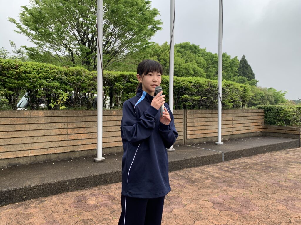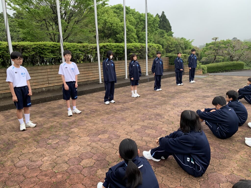 進行:上米良勇弥さん(宮崎南小出身)、朝の言葉:鬼束優菜さん(国富小出身)、音響係:北﨑ゆずかさん(恒久小出身)、体操係:田島羽流さん(恒久小出身)・田中寛人さん(江平小出身)、二宮仁菜さん(恒久小出身)、福岡咲花さん(江平小出身)