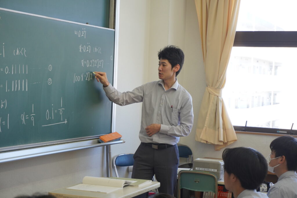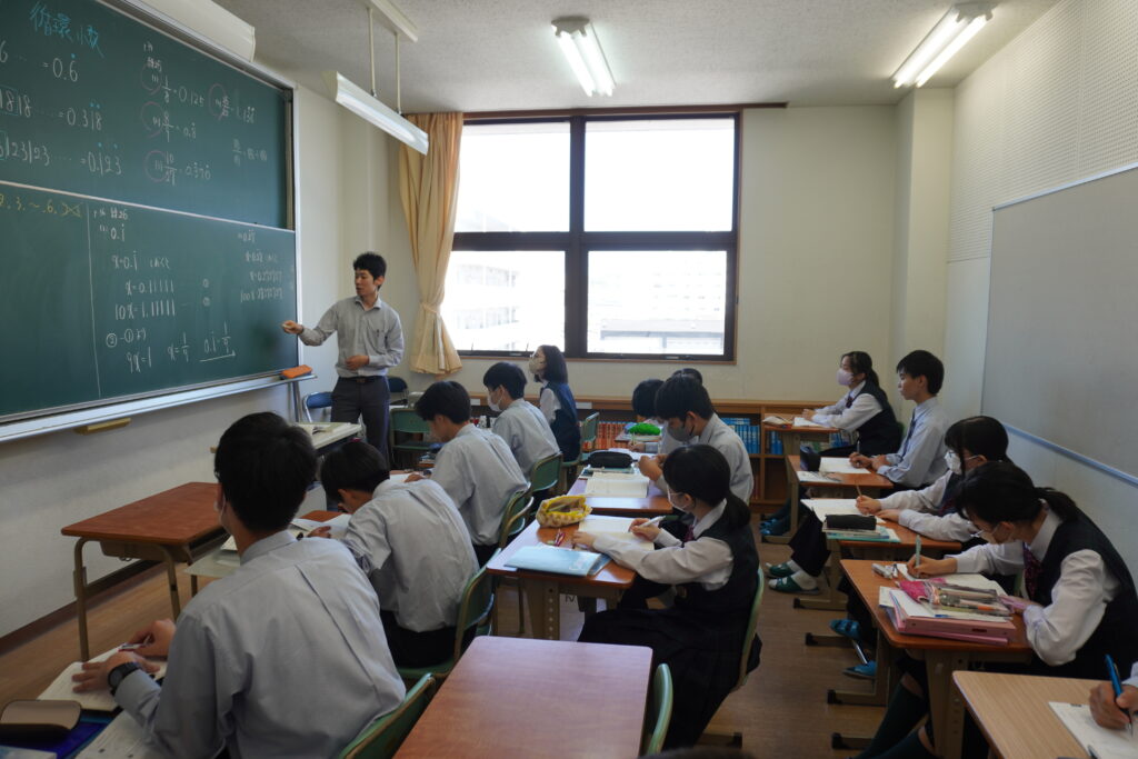 次に演習室をのぞいてみると、有理数についての授業で黙々と問題に取り組んでいました。