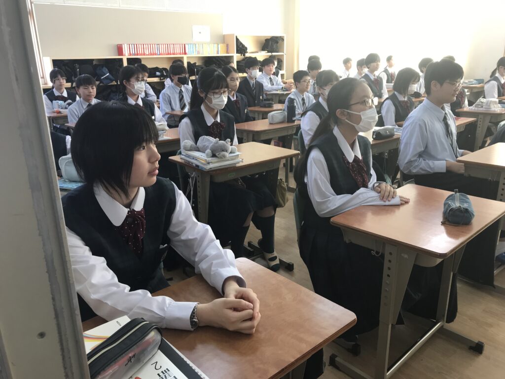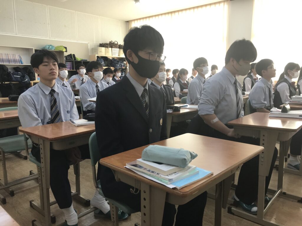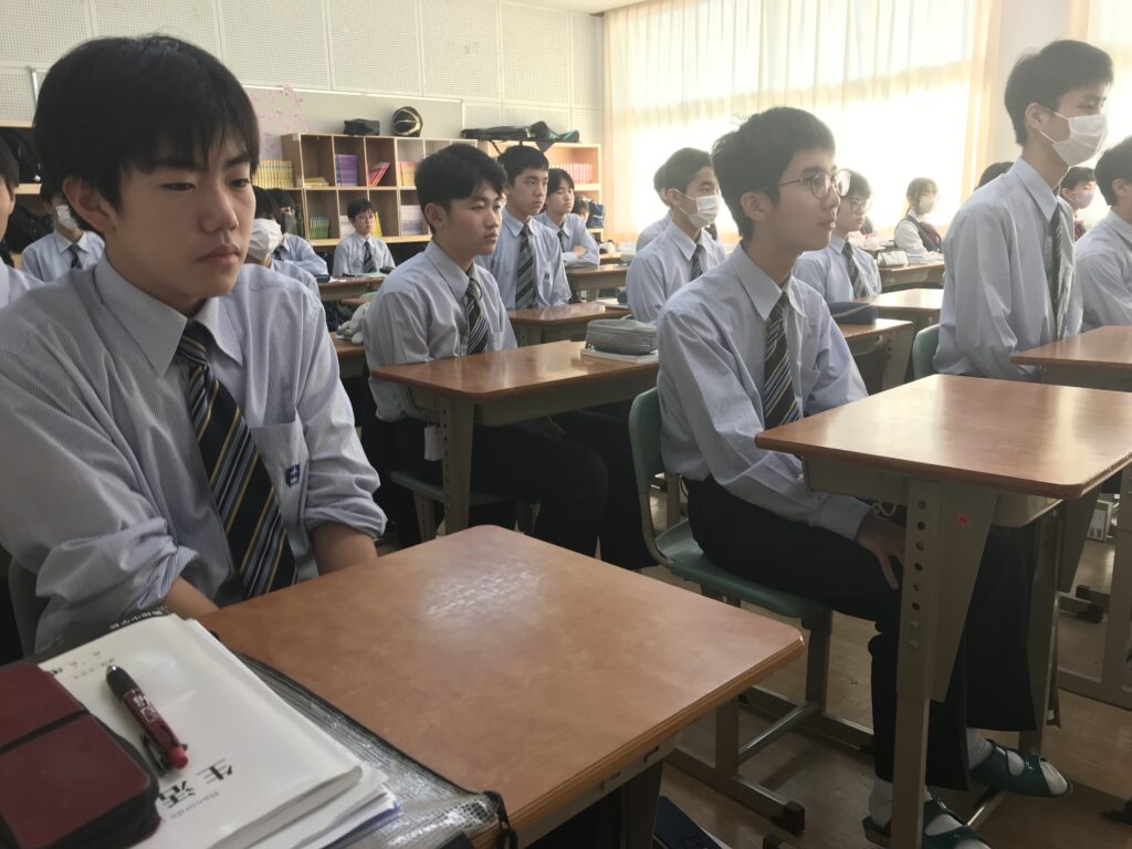 本日は、明日の5月15日創立103年目に向けて、内田遥都先生(鵬翔高校卒業生)より放送による講話を頂きました。