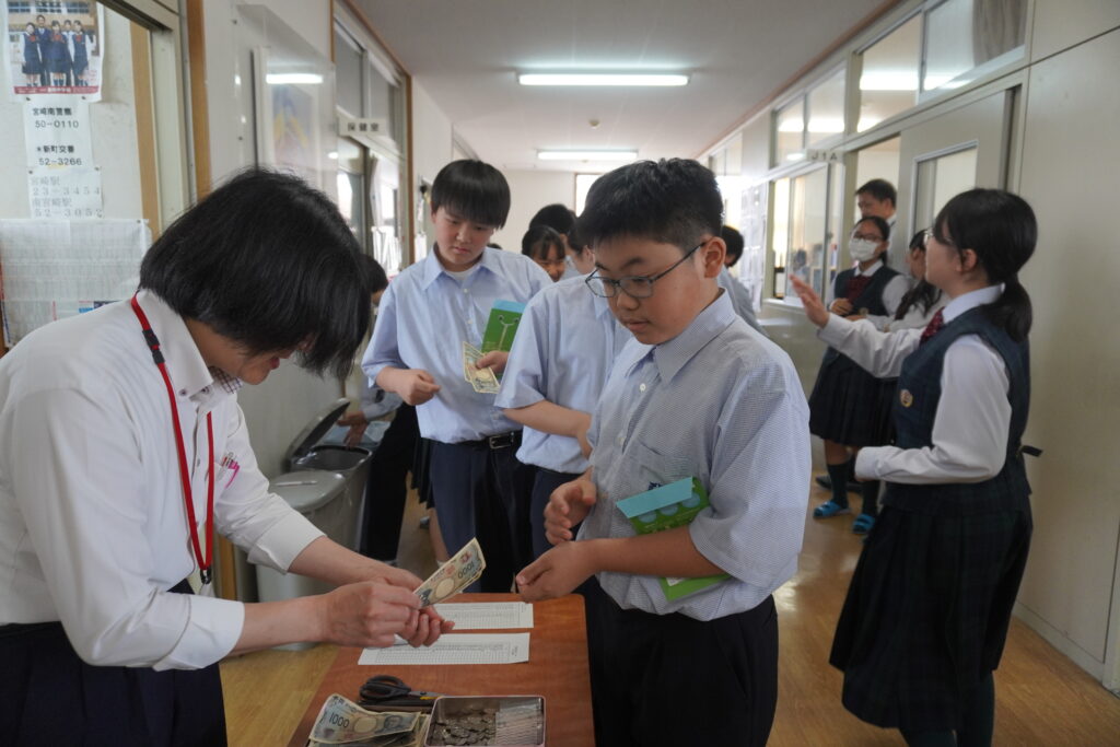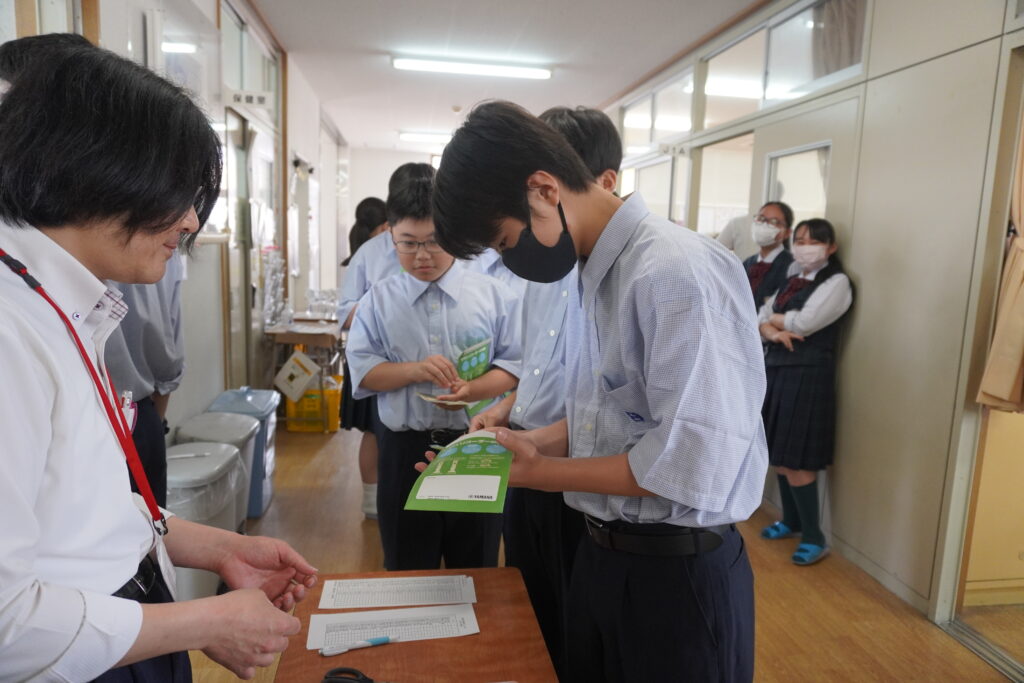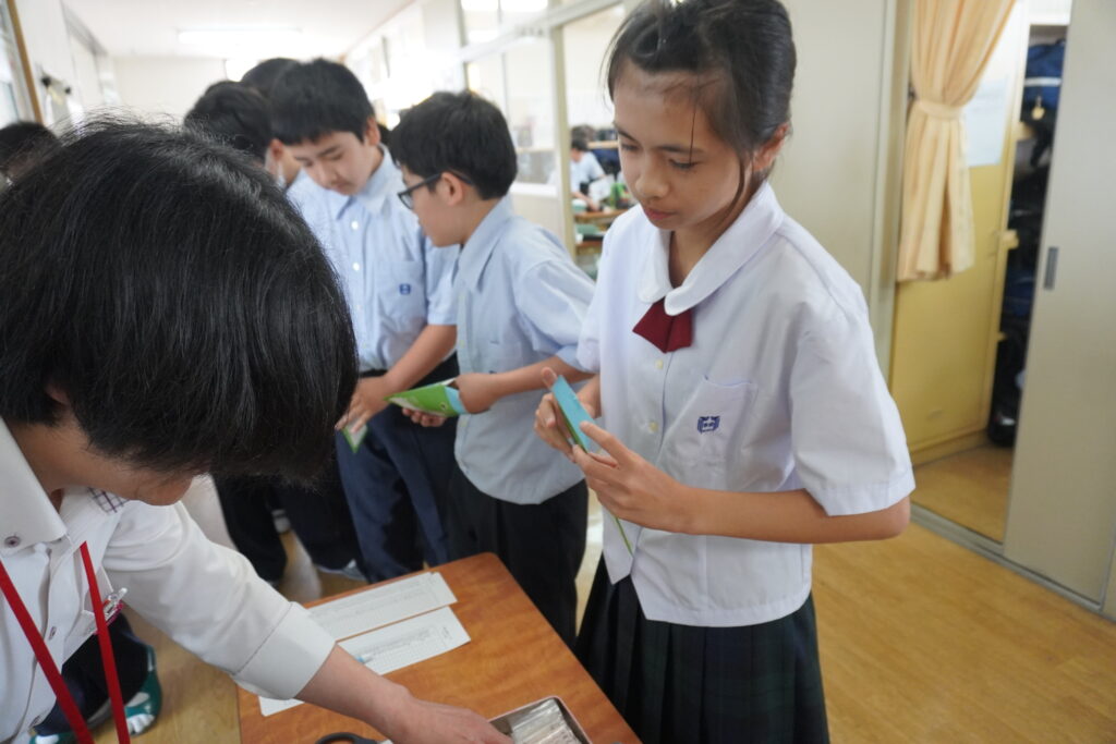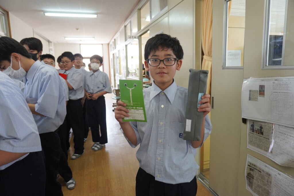 J1生のアルトリコーダーの購入日でした。小学校の時に使っていたソプラノリコーダーとは大きさも、音の高さも、指使いも違います。楽器は形が大きくなると音が低くなる仕組みになっています。アルトリコーダーはどんな音がするのか楽しみですね。2学期から使うので、名前を書いてしっかり保管していてくださいね。