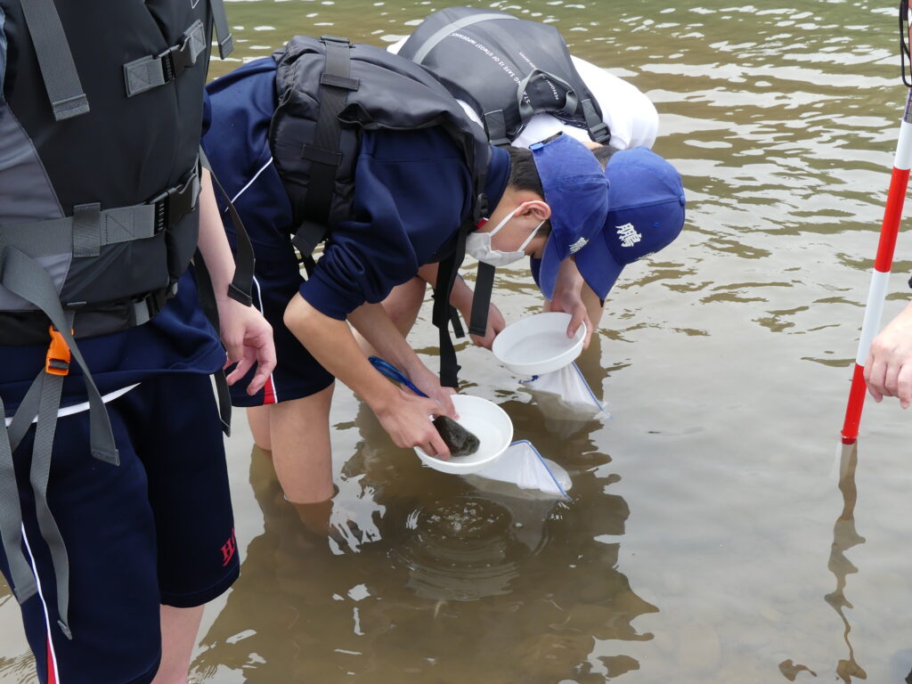 川に網を入れてみると、小さなエビやヒラタカゲロウなど生物がたくさん!自然の豊かさを改めて実感しました。