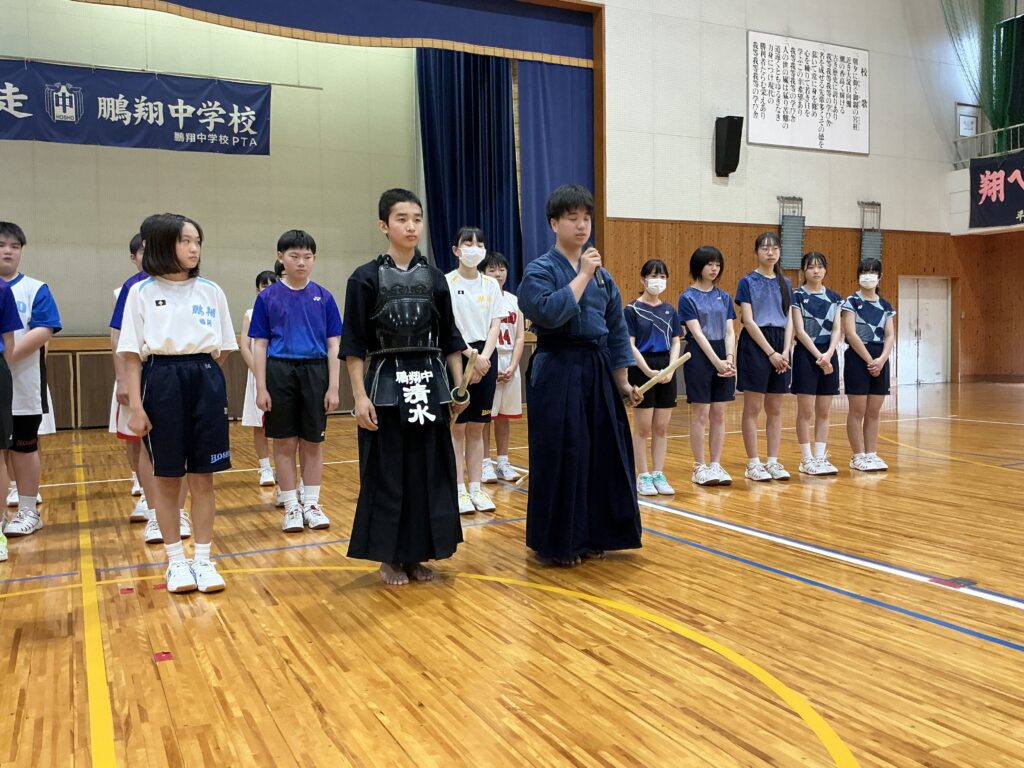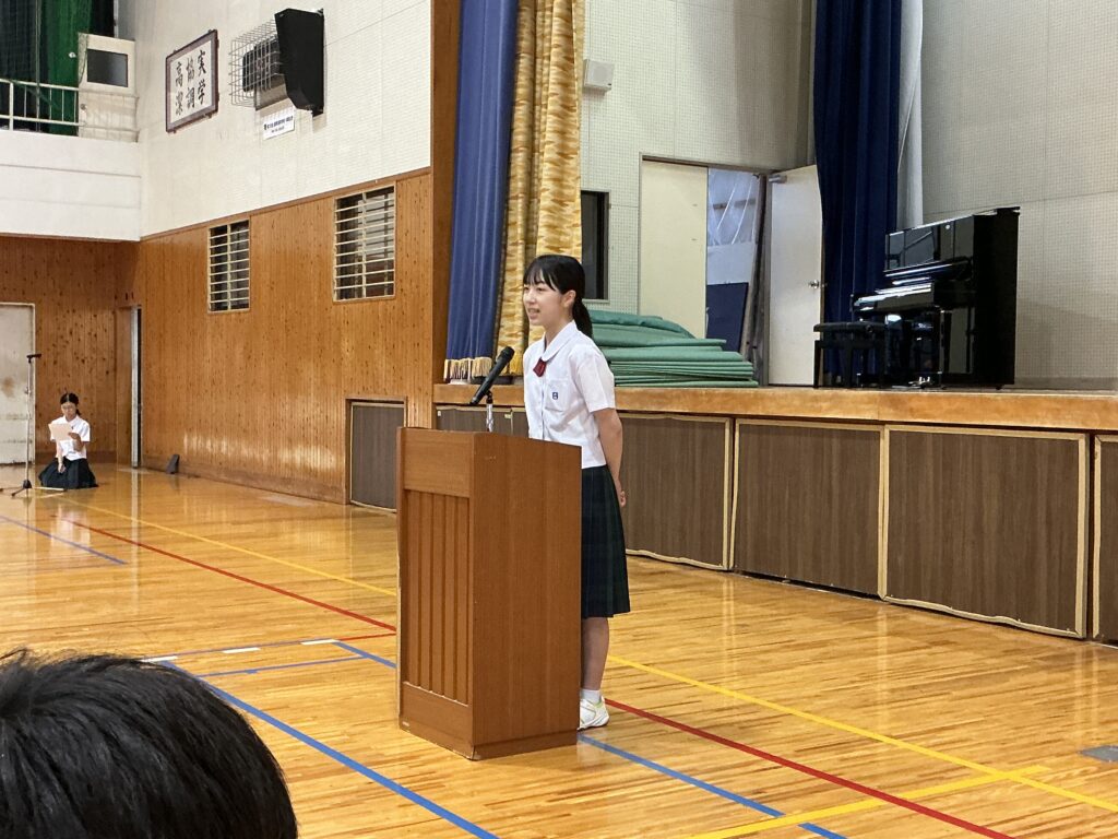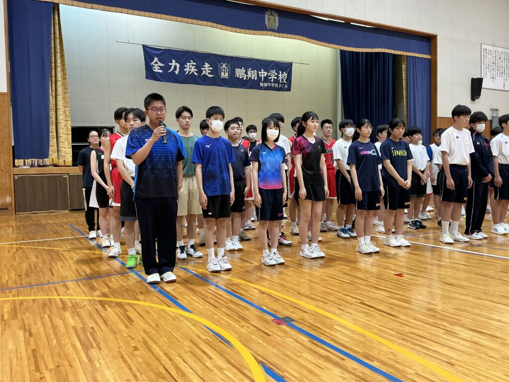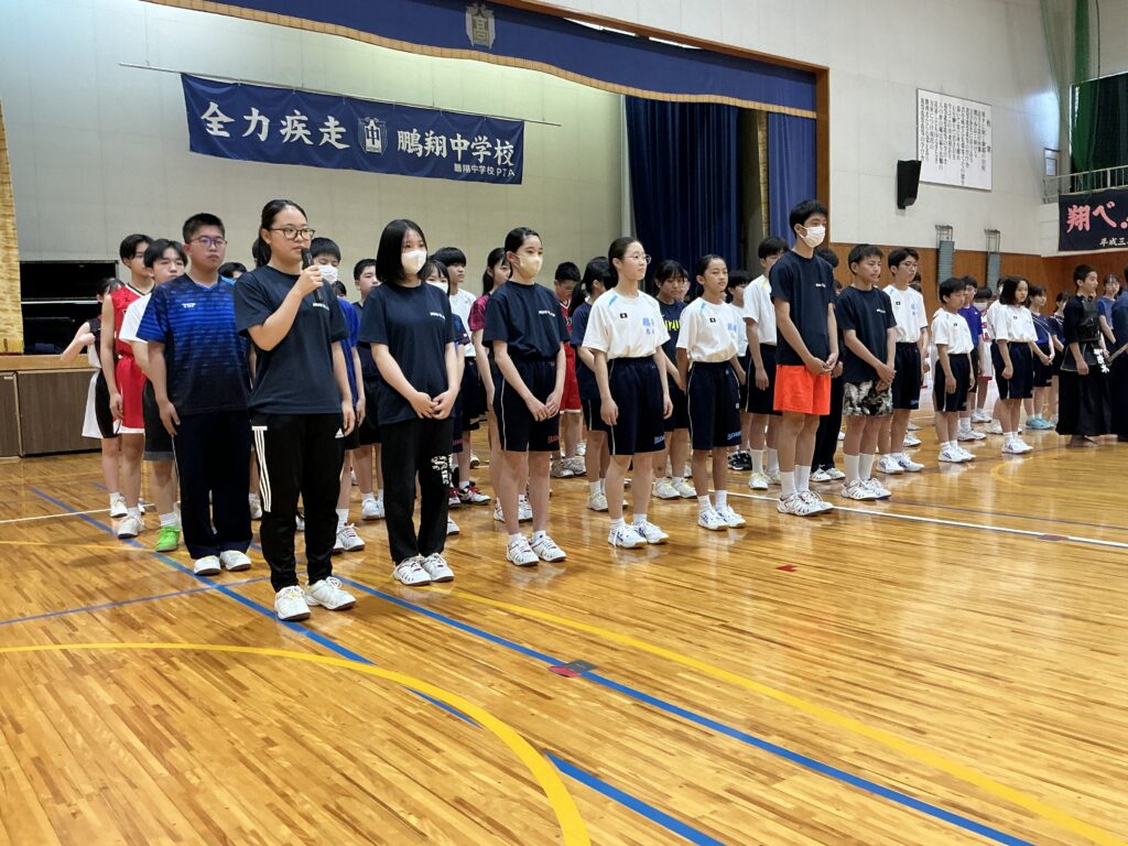 本日は、6月7日から始まる中体連に向けての壮行式が行われ、 校長先生、生徒会長から激励の言葉を頂きました。