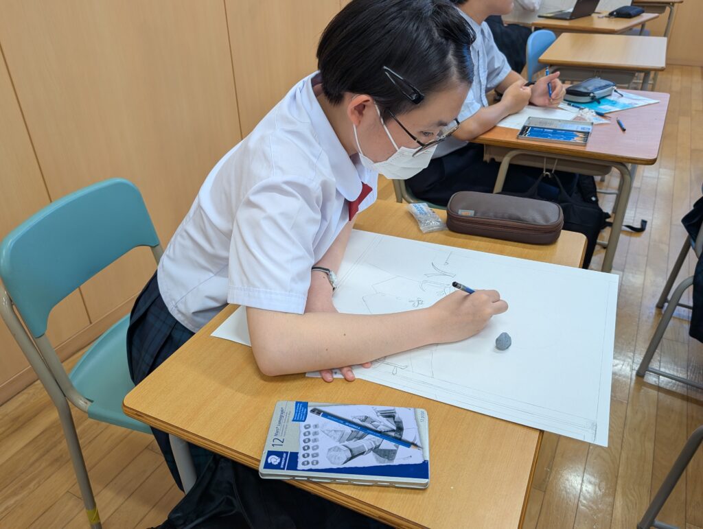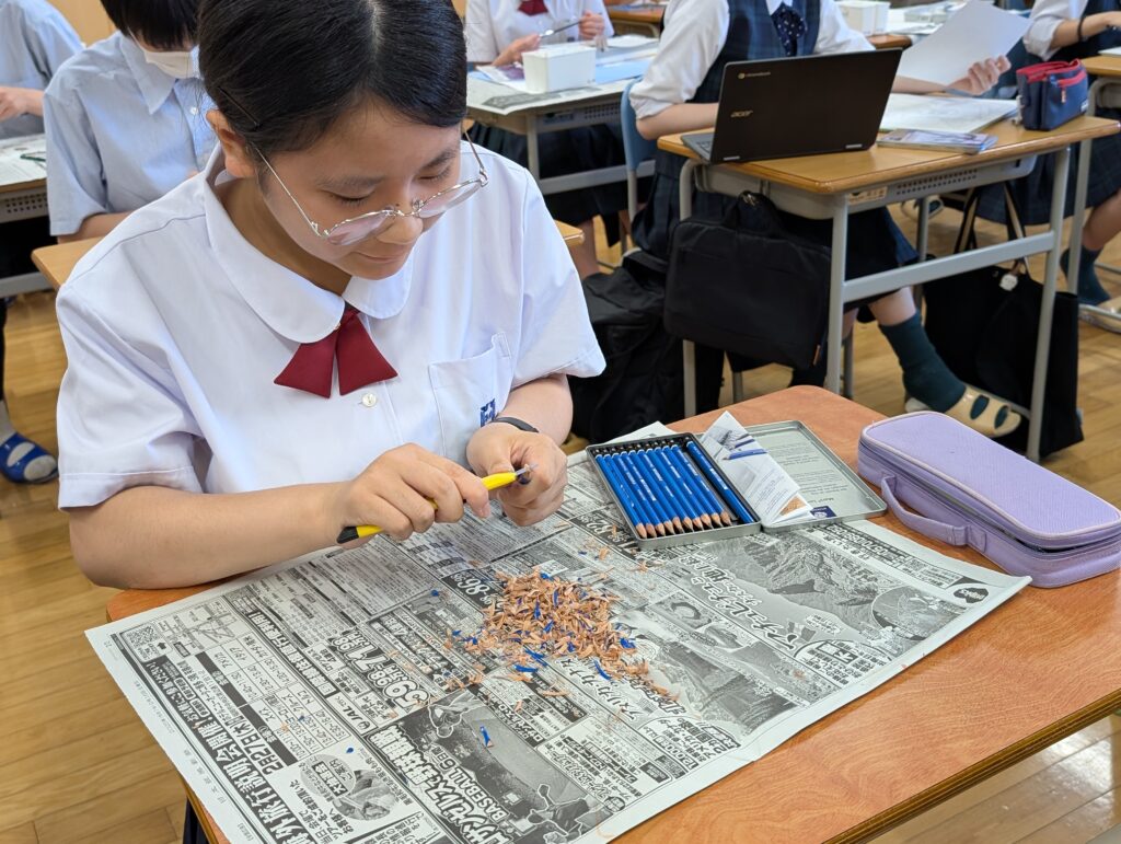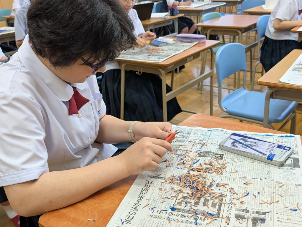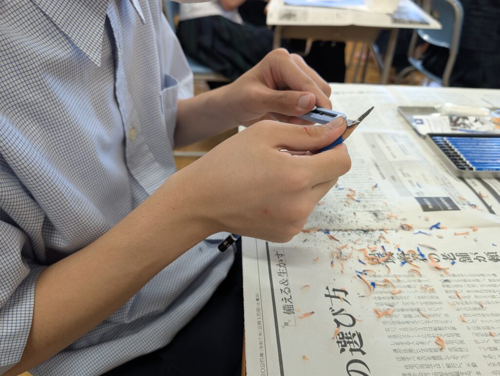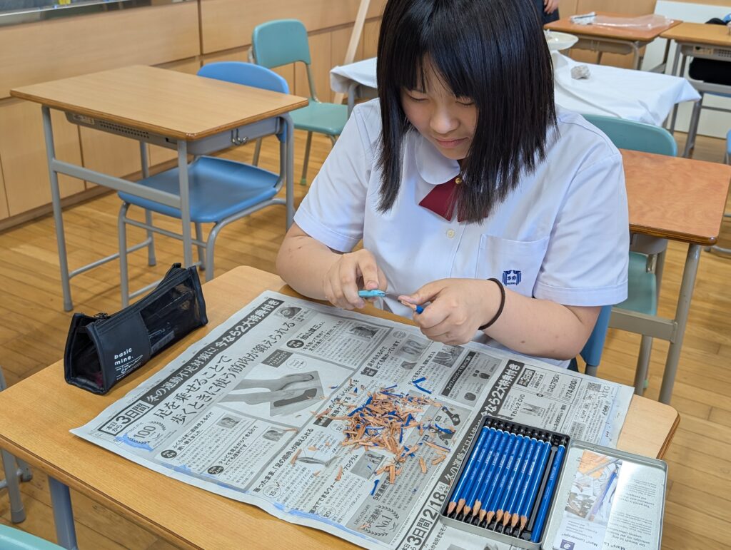 水曜日に活動を行なっている部活動もあります。美術部では、新入部員が初めてカッターを使った鉛筆削りを体験していました。J3生や鉛筆削りの終わった部員はデッサンにも取り組んでいました!