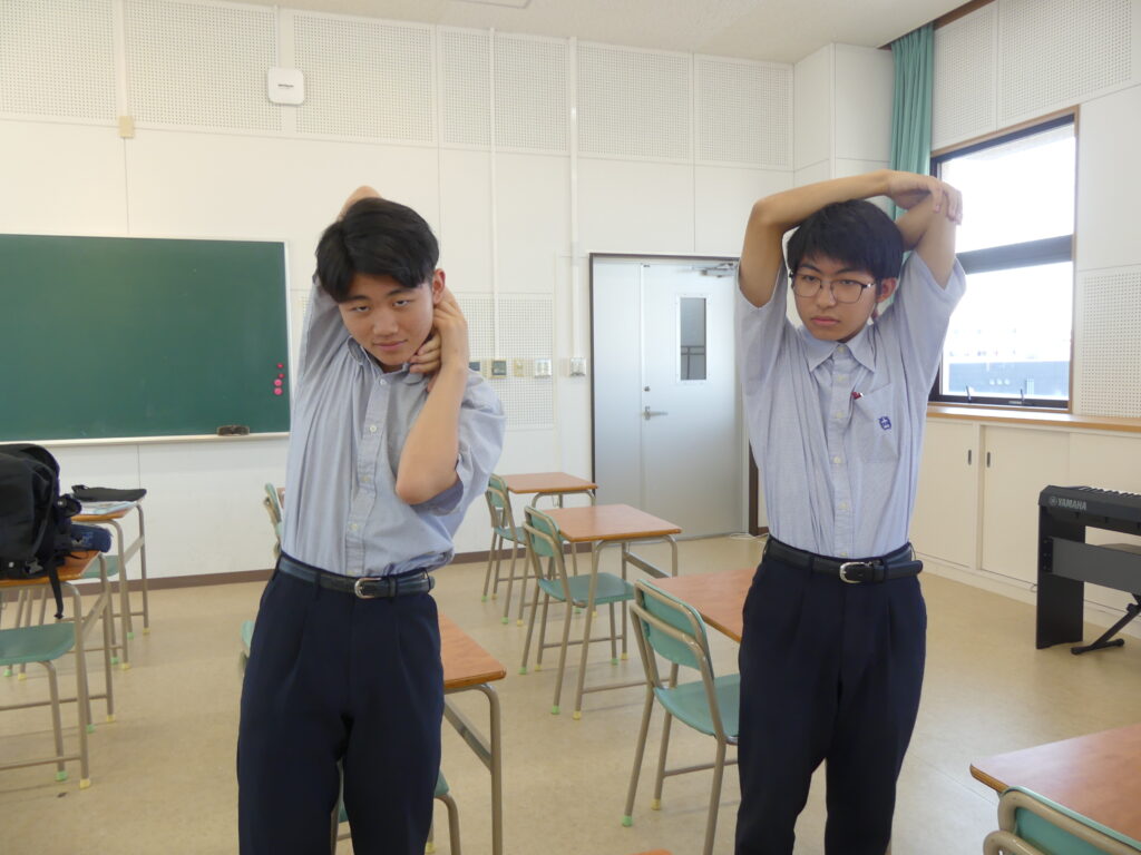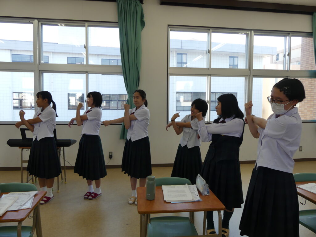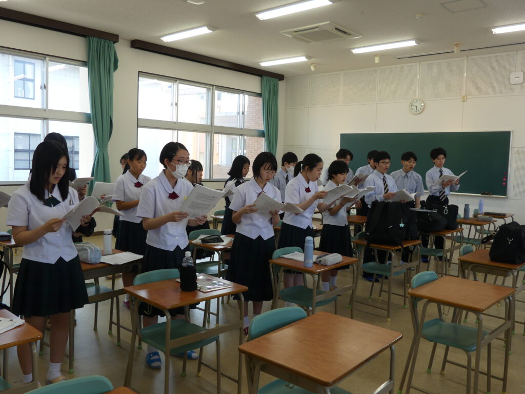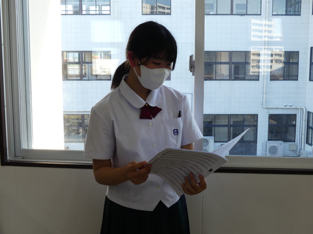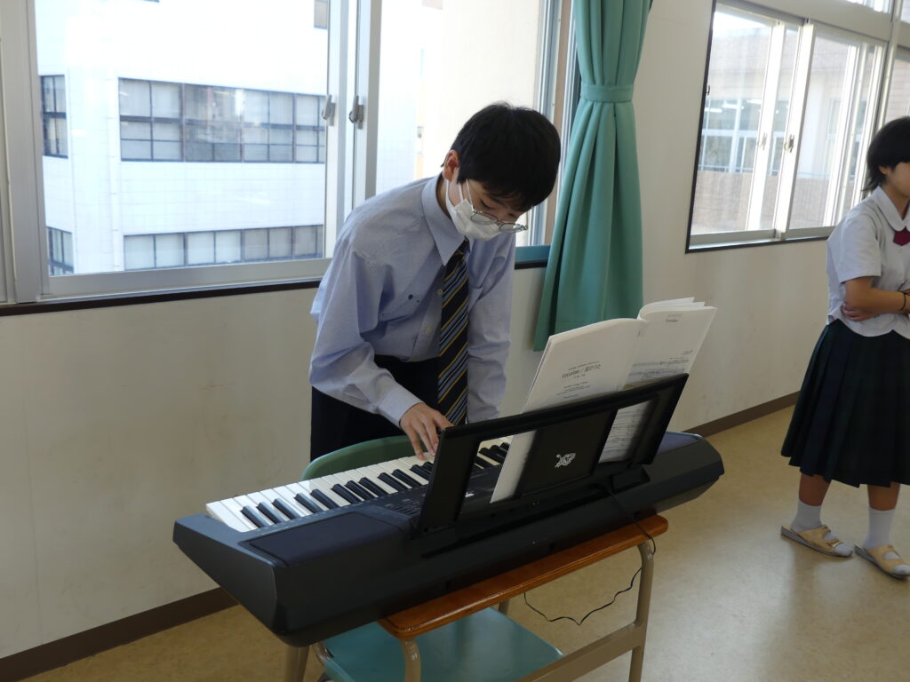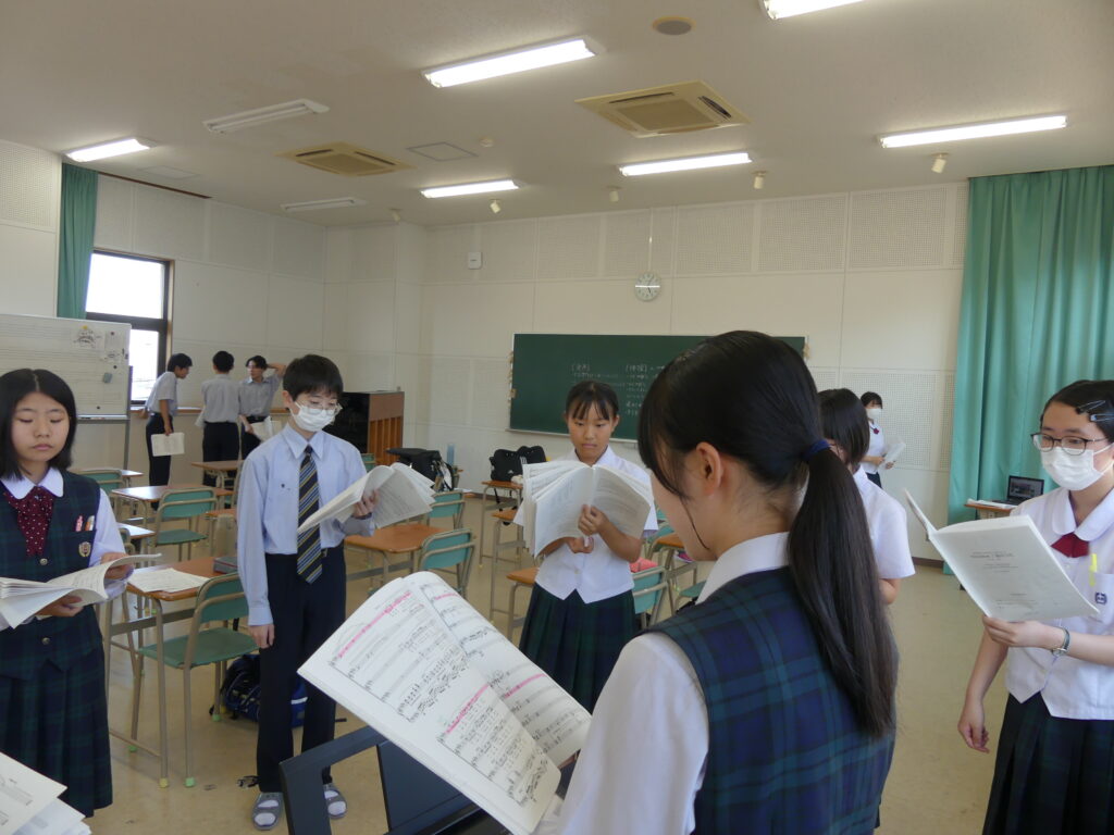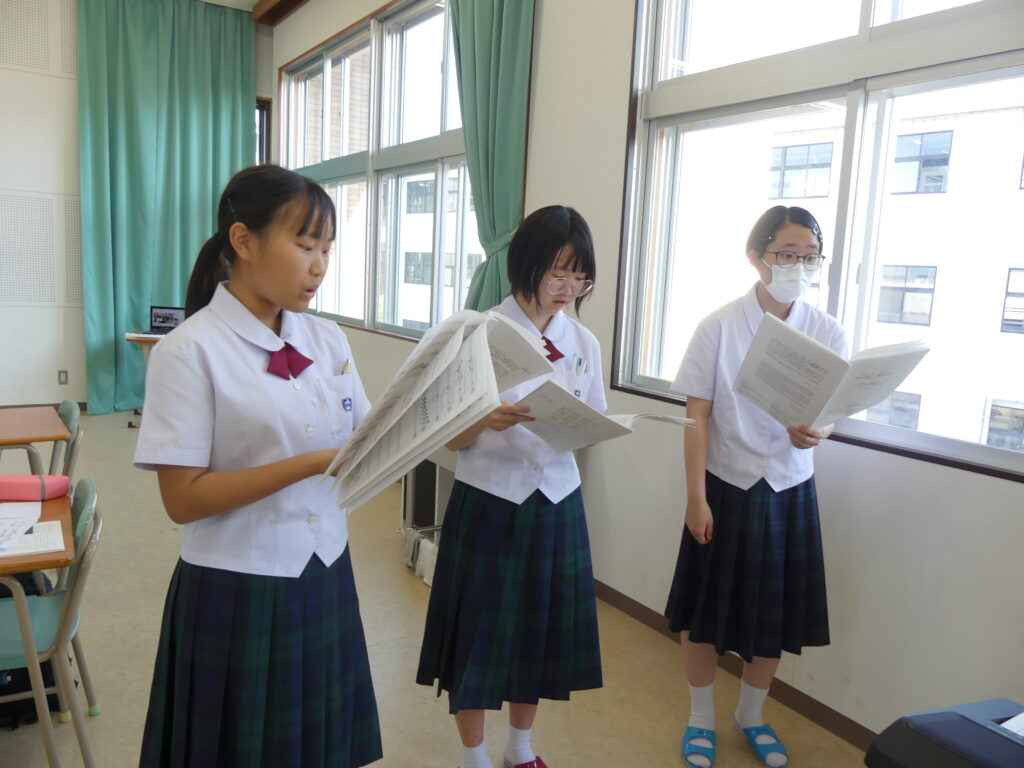 合唱部は8月3日にある全日本合唱コンクールに中学高校合同で出場します。総勢36人で歌います。学年問わず仲が良いのが印象的です。練習は、柔軟体操、発声練習をし、各パートに分かれてパート練習を行います。各パートのリーダーが中心となり練習し、最後に全員で合わせます。合唱部のモットーは「楽しんで歌うこと」です。鵬翔生らしい素直で純粋な歌声を響かせてほしいです。