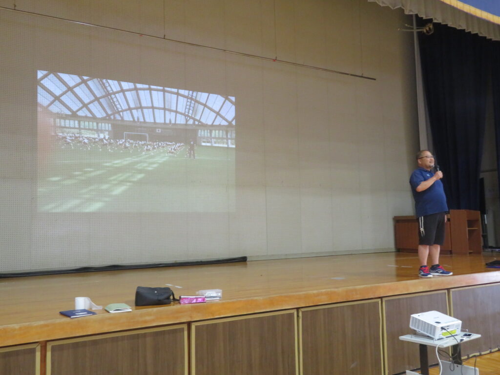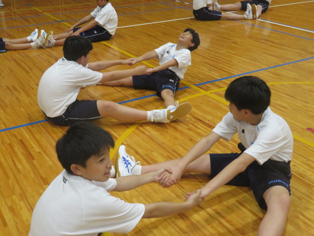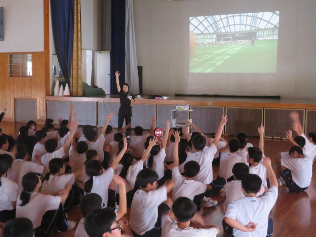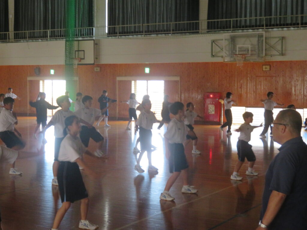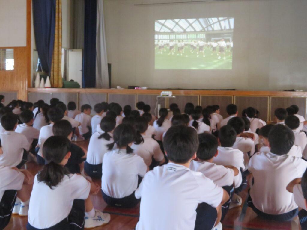 J1生は、今日の6限の体育の授業にて、体育大会で踊る「よさこいソーラン」の練習を行いました。準備運動や柔軟体操で身体をほぐしたあと、体育の土井先生・岡本先生の指導の下、練習に入りました。未経験な生徒、小学校の時と振付けが違う生徒もいるので、まずは鵬翔中学校の振付けを覚えるため、先輩たちが実際踊っている映像を見ながら、踊る上での気をつける点に耳を傾けていました。そのあと、熱中症対策のため、こまめに水分補給をしながら何度か通しで練習しました。まだまだ動きがぎこちない生徒も多いですが、9月の本番ではすばらしい仕上がりになっていると思います。