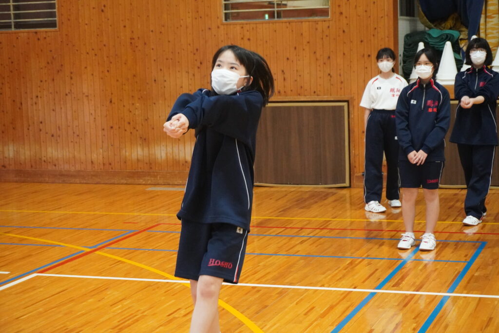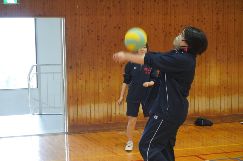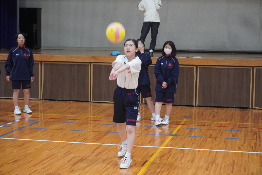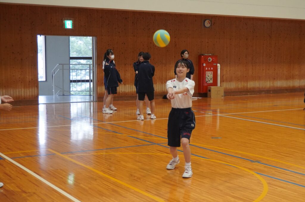 スポーツテストが終わり、J2の体育ではバレーの練習を行っています。