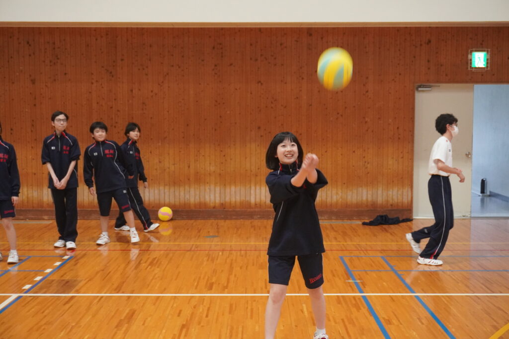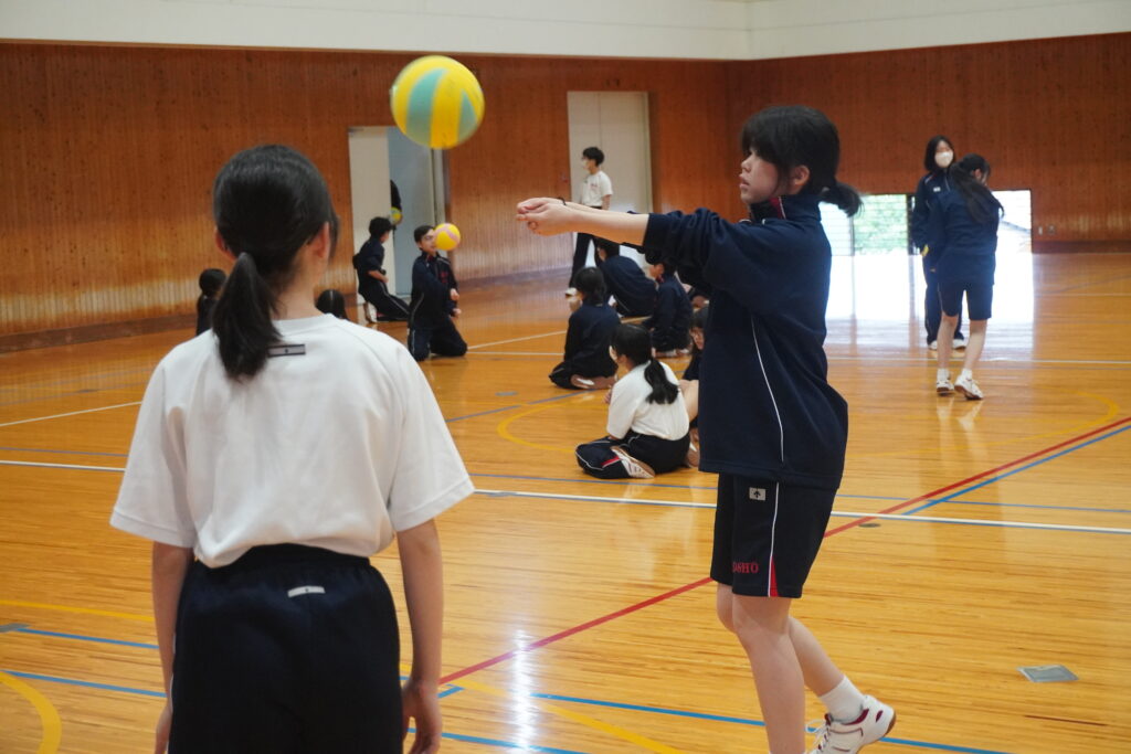 ボールに慣れてもらうために、ボール回しなどパス練習や、アンダーサーブやアンダーハンドパスの基礎基本となる練習などを中心に、生徒の皆さん楽しく・真剣に取り組んでいました。