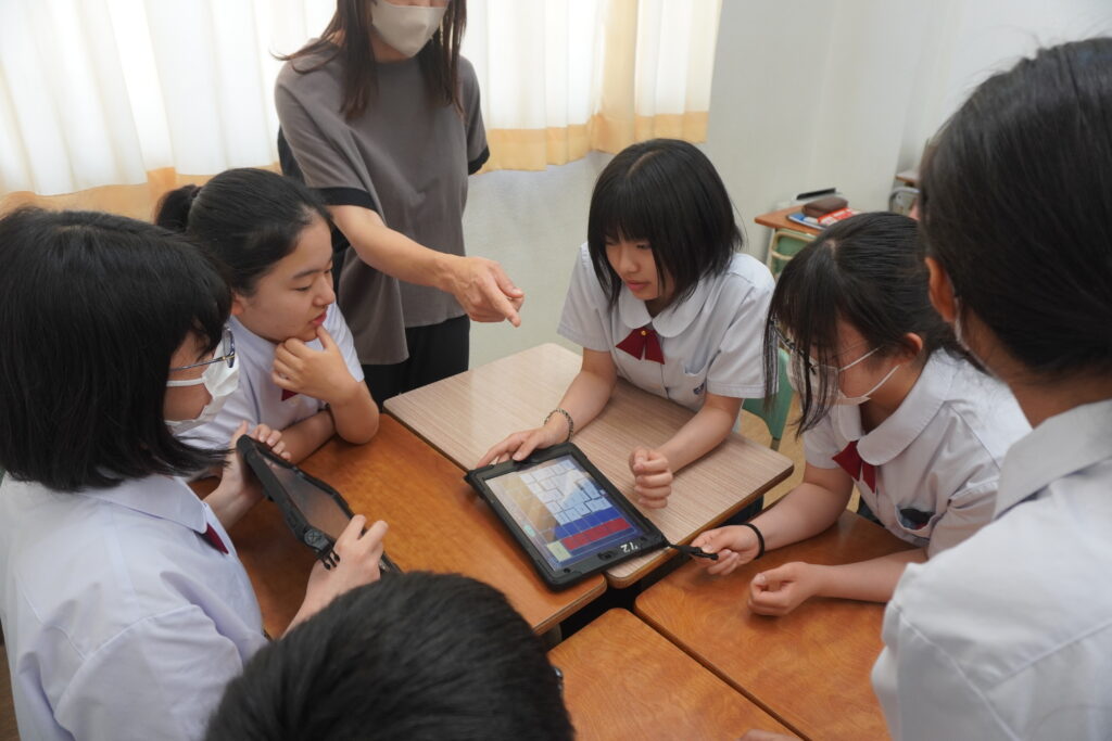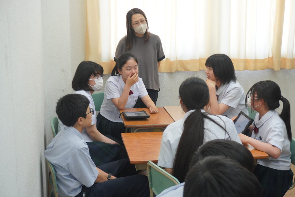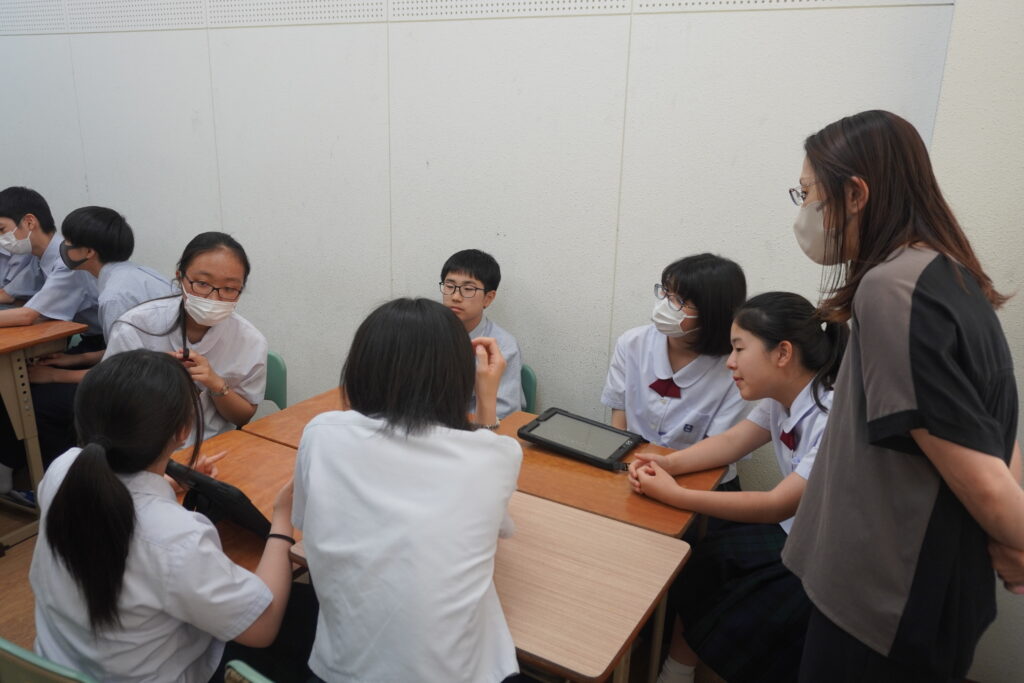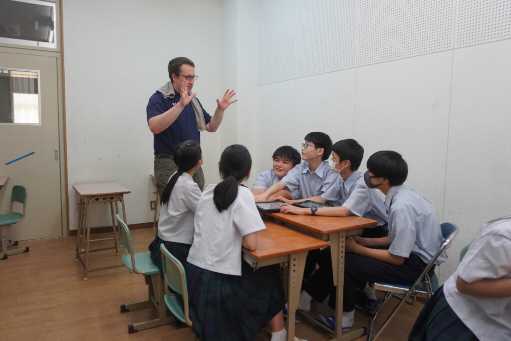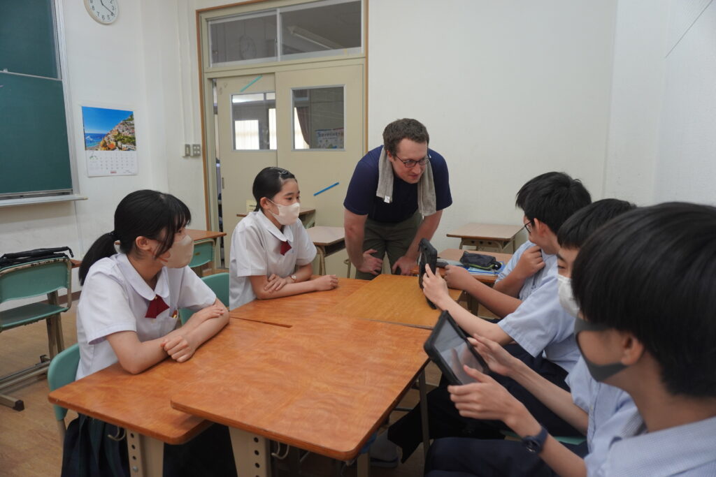 CJ先生のクラスでは、今カナダで流行っているゲームをipadを使って取り入れながら、現在、生徒たちが教科書で学んでいる『比較級』について楽しく学んでいました。